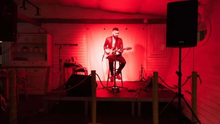 Kuba Kęsy na scenie Restauracji Baba Pruska w Sztynorcie  fot. Mazury24