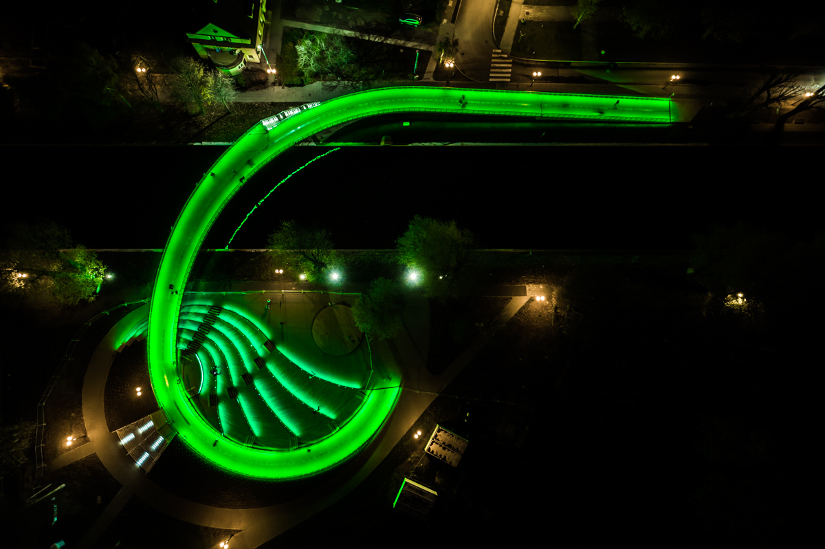 Dodatkowo w ramach inwestycji powstało miejsce służące rekreacji oraz wyremontowana została cześć kanału. Cały obiekt poprzez zastosowanie konstrukcji sprężonej oraz wypełnienie balustrad szkłem sprawia wrażenie lekkiej konstrukcji, która nie zaburza ładu przestrzennego, a w połączeniu ze stonowaną kolorystyką stanowi uzupełnienie zagospodarowania części miasta, która objęta jest ochroną konserwatorską.