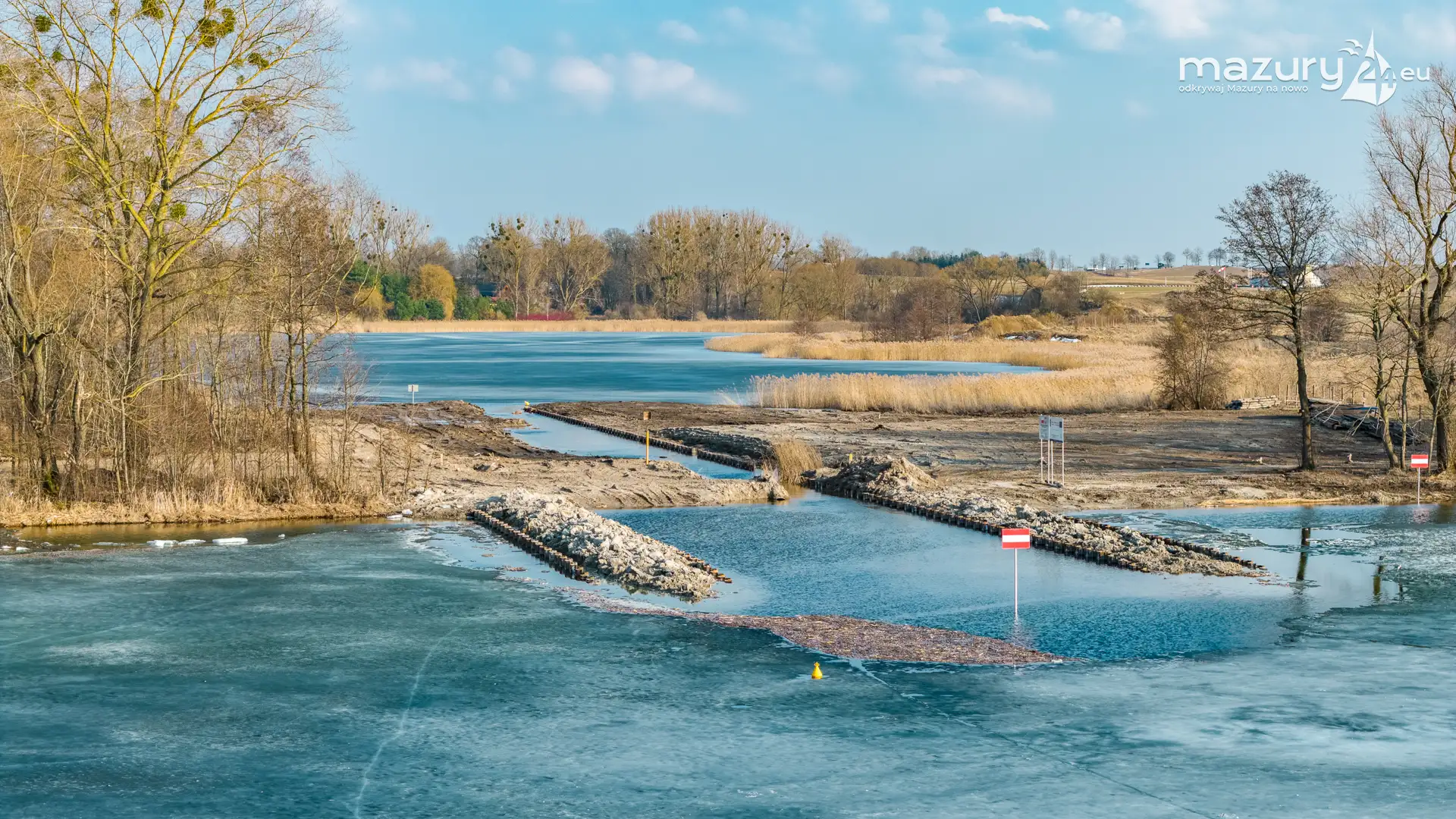 Równolegle z zaawansowanymi pracami inżynieryjnymi prowadzone są działania porządkowe, które nadadzą kanałowi ostateczny szlif. Skarpowanie brzegów, zapewnienie bezpiecznych spadków terenu oraz instalacja nowoczesnego oznakowania sprawią, że odcinek ten stanie się wzorcowym elementem mazurskiej sieci wodnej.