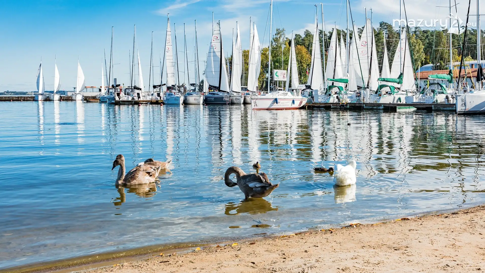 Pomału kończy się tegoroczny sezon żeglarski na mazurskich jeziorach, a co się z tym wiąże nadchodzi czas na przygotowanie naszych jachtów do zimowania. Stąd możemy podziwiać wspaniały widok jachtów w porcie pod pełnymi żaglami – właśnie trwa ich suszenie.