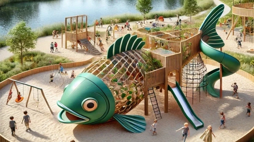 Fundacja Ochrony Wielkich Jezior Mazurskich w Giżycku rozpoczęła właśnie proces budowy nowego placu zabaw. To, co będzie wyróżniało to miejsce to jego kształt. Plac zabaw będzie wyglądał jak ryba. Będzie to jedyne takie miejsce w regionie.
