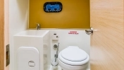 Umywalka, toaleta elektryczna, wieszaki na ręczniki, luk otwierany na pokładzie, oświetlenie LED, lustro.