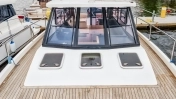 Laminat kolor biały, teak na półpokładach, kokpit pokryty naturalnym teak, trap rufowy naturalny teak, relingi ze stali nierdzewnej, otwierana bakista kotwiczna, otwierana komora techniczna silnika, pomost kąpielowy pokryty naturalnym teak, powierzchnie przeciwślizgowe w żelkocie,dach nad messą z relingami ze stali nierdzewnej z platformą do odpoczynku, trzy luki otwierane na pokładzie, kosz dziobowy ze stali, butla gazowa 11 KG, oświetlenie nawigacyjne, kotwica, szperacz na dachu, dodatkowe oświetlenie LED TRAPU, stolik w kokpicie, kanapa tylna w kokpicie, oświetlenie LED w kokpicie zamontowane na zewnątrz, winda kotwiczna +kotwica, stanowisko sternika z fotelem obrotowym, Lowrance 5Elit ploter, echosonda, sygnał dzwiękowy.