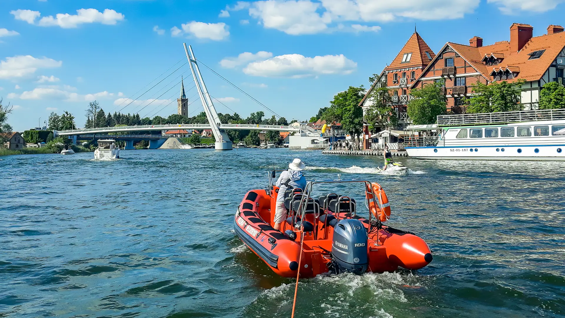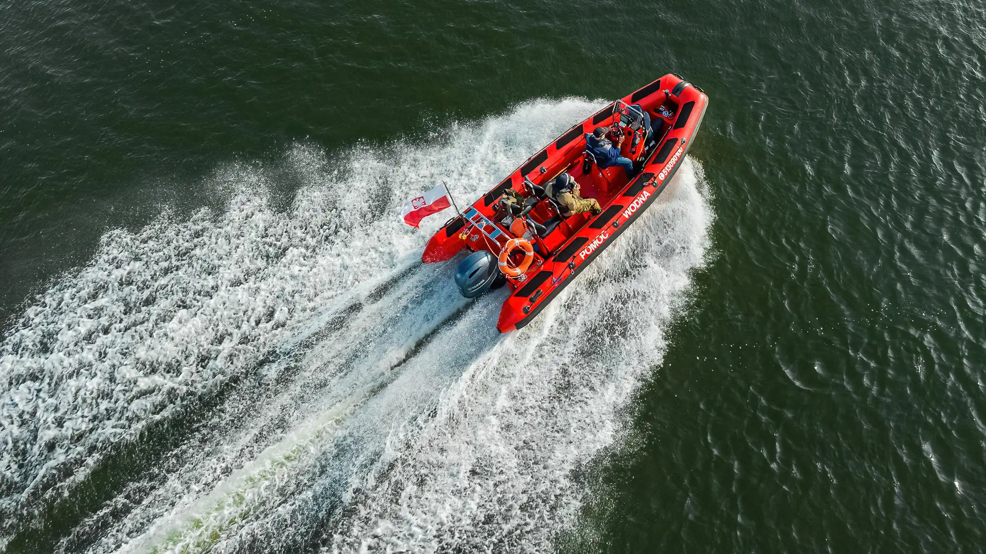 • Pomoc w organizacji działań na wodzie - Pomoc w organizacji działań na wodzie polegająca np. na obstawie regat, szybkim transporcie obsługi, czy sprzętu w wybrane obszary lub miejsca, sądowaniu dna dla celów wędkarskich itp.