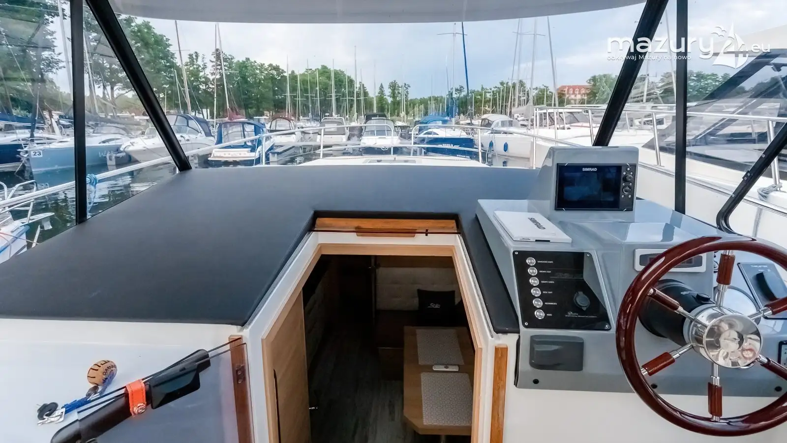 Wypoczynek nad mazurskimi akwenami, żegluga po jeziorach w komfortowych warunkach. Możliwość spania na łodzi w każdym mazurskim porcie. To wszystko zapewni łódź motorowa Stillo 30. By prowadzić taką łódź nie jest wymagany żaden patent. Jedynie umiejętność sterowania łodzią motorową.