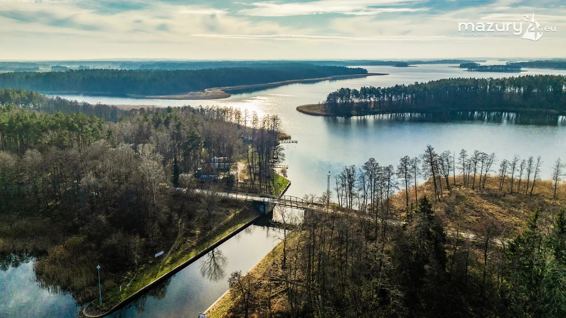Kanał Kula nazywany popularnie mazurskim równikiem, to miejsce wyjątkowe i urokliwe, nawet zimą bez śniegu. Czy wiecie, że po jednej stronie kanału mamy ujście do rzeki Węgorapa, a po drugiej... do rzeki Pisa. Kanał łącz dwa jeziora: Boczne i Jagodne. Na zdjęciach z drona widoczne również jezioro Mulik, które leży przy wsi Kozin.