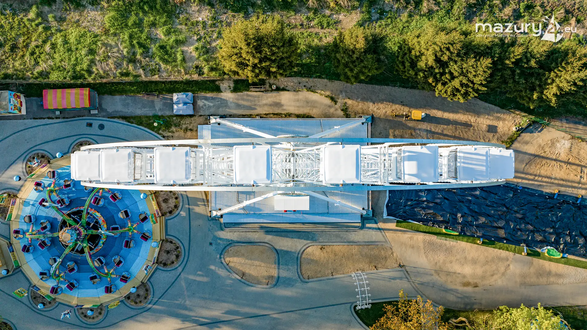 Nowa atrakcja Giżycka, wielkie "oko" w parku rozrywki nad Niegocinem, robi wrażenie nie tylko z dołu, ale także... z drona. Pokazujemy Wam co widać z tej nowej atrakcji, będą na samej górze. Może łatwiej Wam będzie podjąć decyzję czy warto...