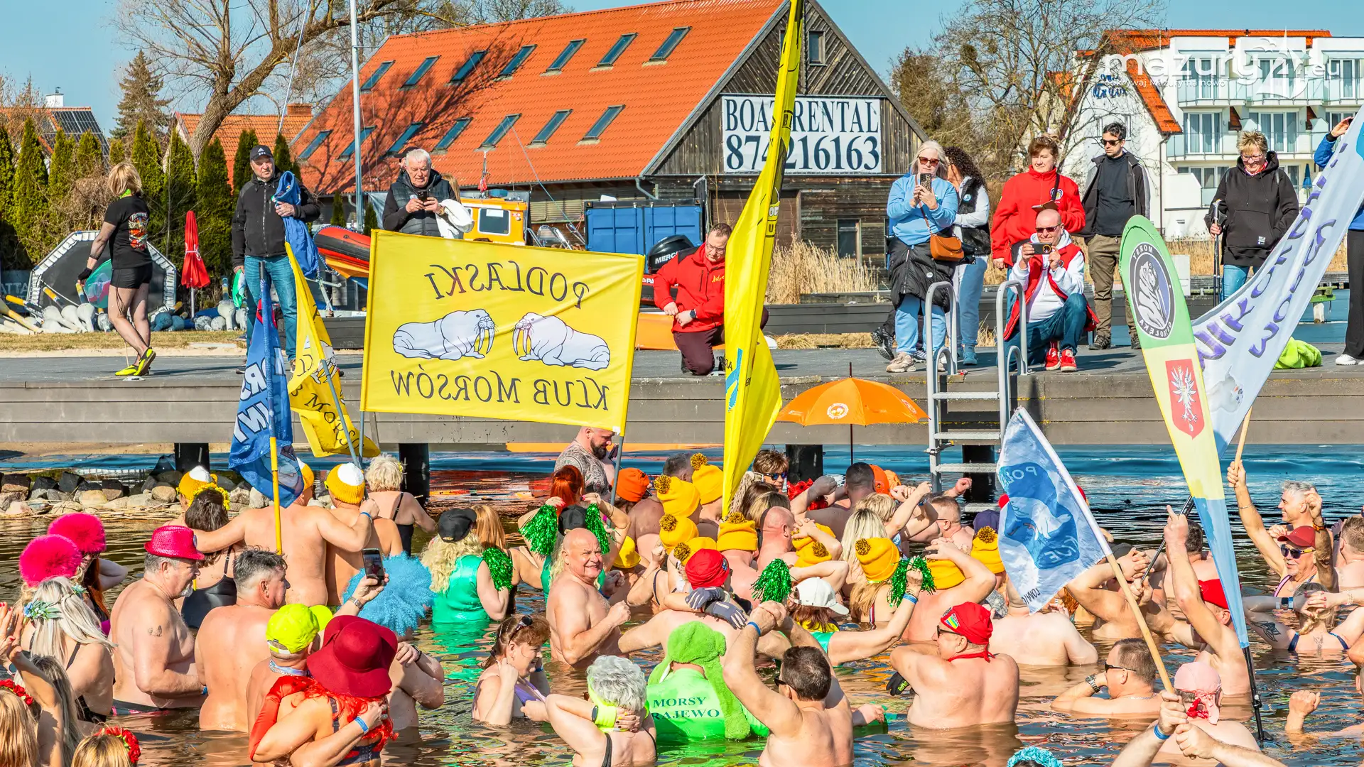 Galeria zdjęć z VI Zlotu Morsów w Mikołajkach pokazuje wyjątkową atmosferę tego zimowego wydarzenia. Na fotografiach widać setki morsów z całej Polski, którzy z uśmiechem i w kolorowych strojach wzięli udział we wspólnym morsowaniu w Jeziorze Mikołajskim. Nie zabrakło także barwnego korowodu ulicami miasta, klubowych flag oraz dobrej zabawy przed i po kąpieli. Zdjęcia oddają energię uczestników, hart ducha oraz radość ze wspólnego zakończenia sezonu morsowego na Mazurach.