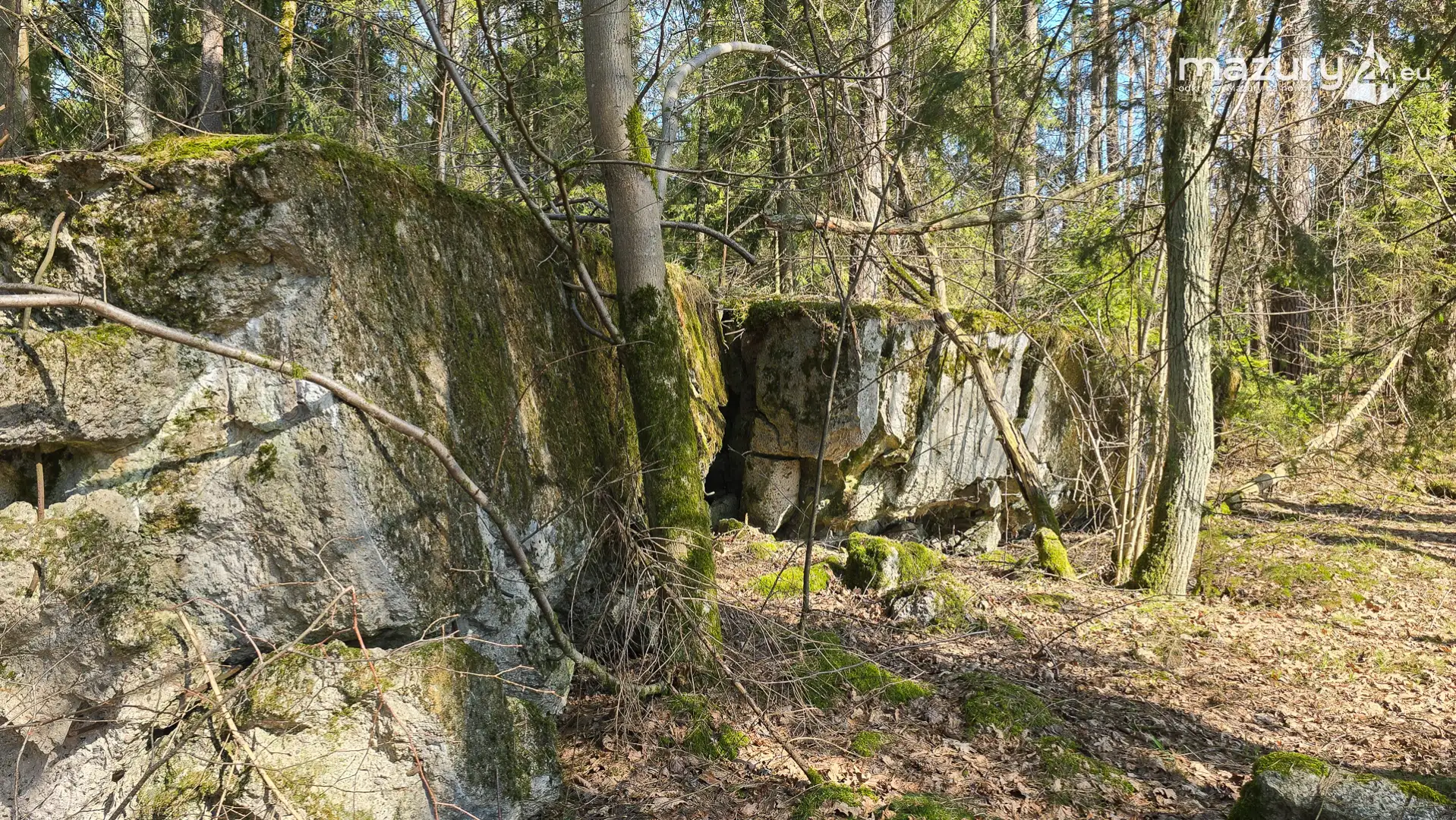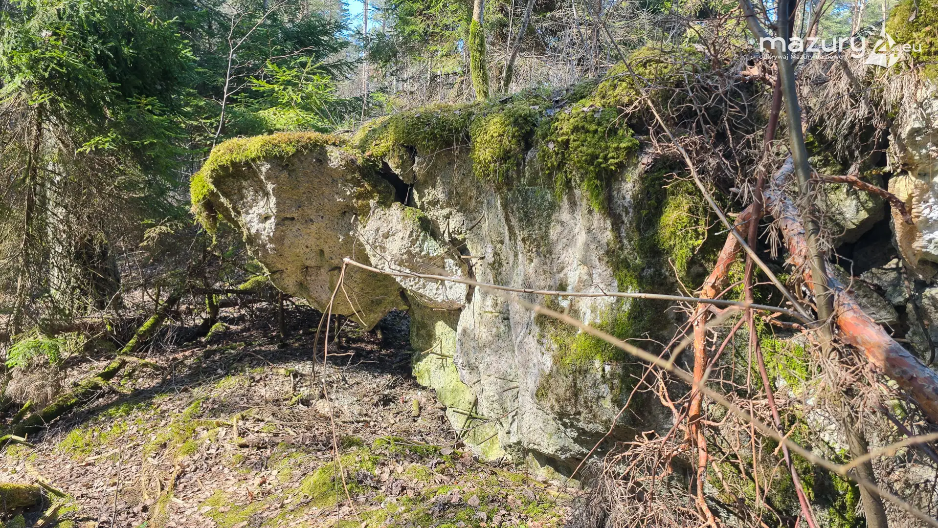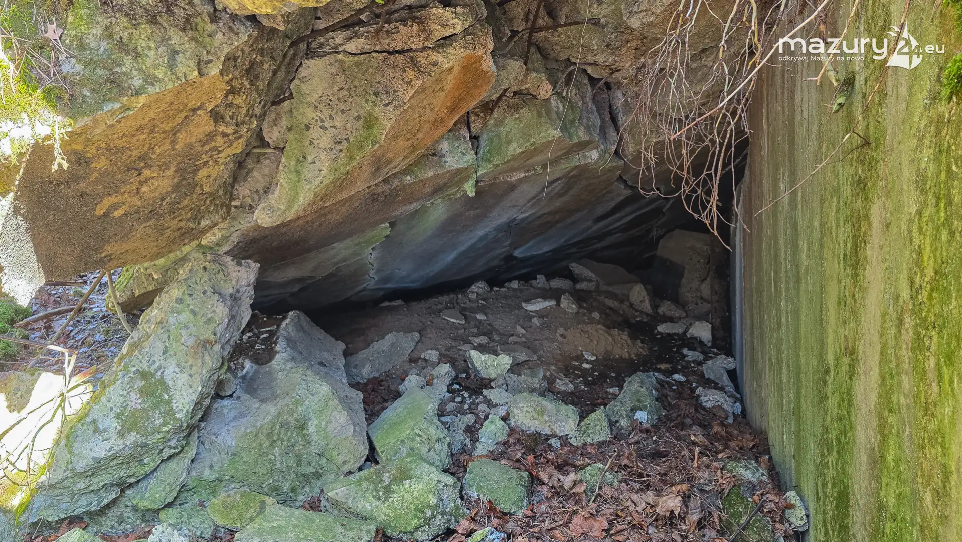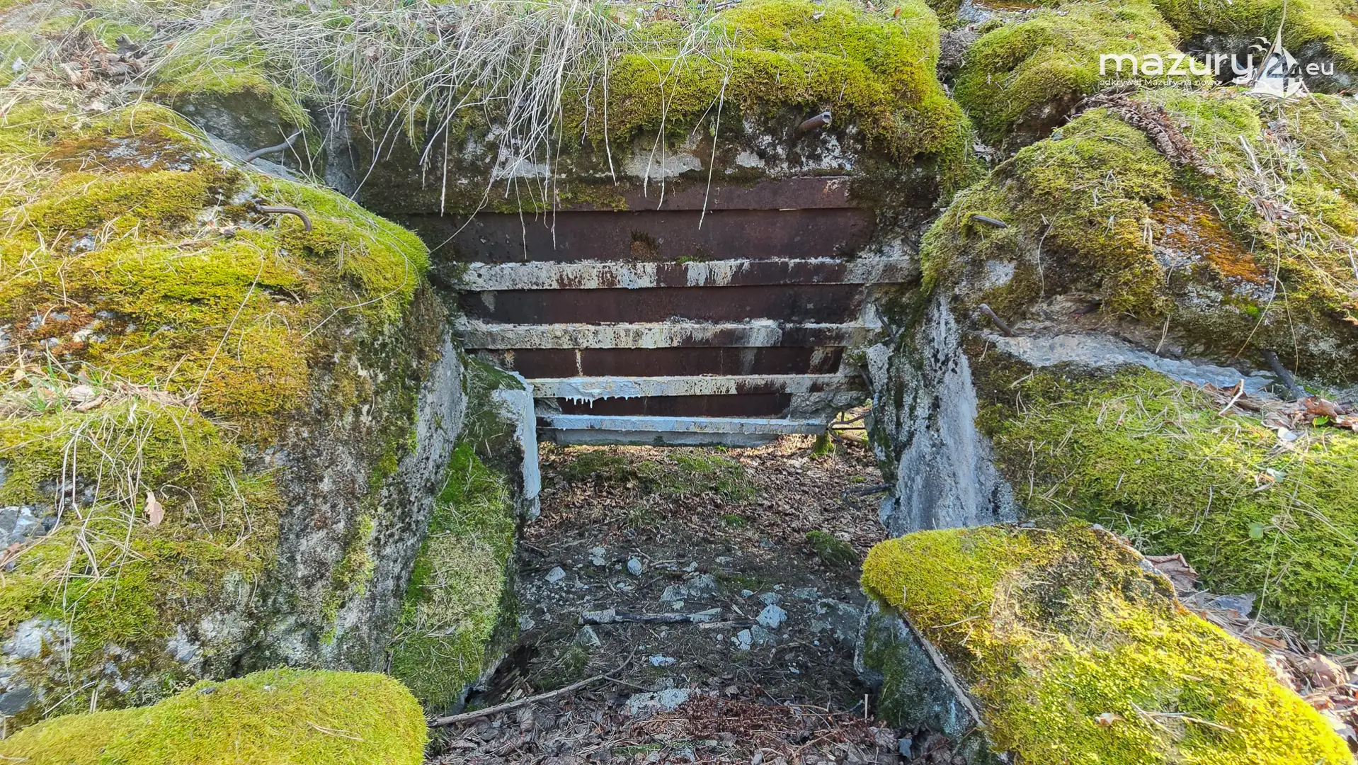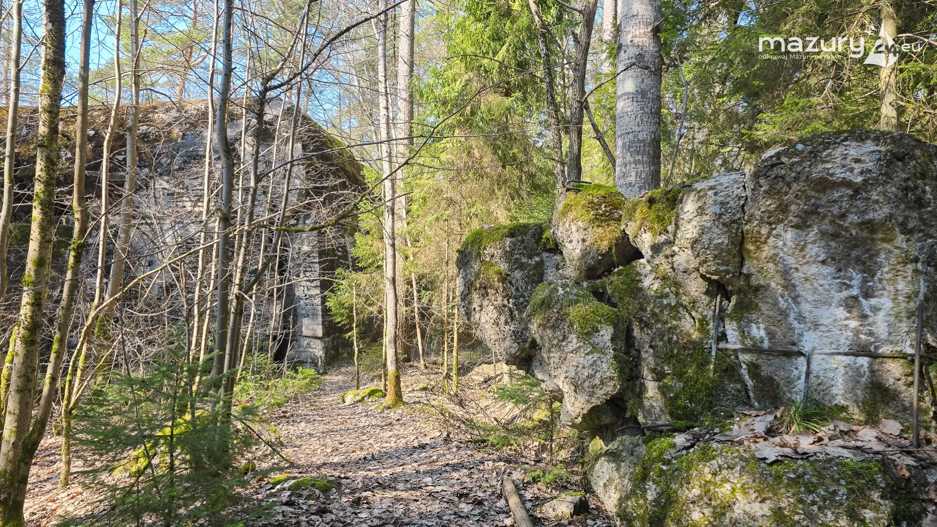 Wczesnowiosenna sceneria odsłania Hochwald w zupełnie innym świetle – brak liści i roślinności pozwala dostrzec więcej detali ukrytych na co dzień w lesie. Ruiny kwatery Heinricha Himmlera w Pozezdrzu, wysadzone w 1945 roku, ukazują dziś potęgę żelbetowych konstrukcji i skalę całego kompleksu. To moment, gdy historia staje się bardziej czytelna – odsłonięte bryły bunkrów wyraźnie rysują dawny układ tej tajnej instalacji.