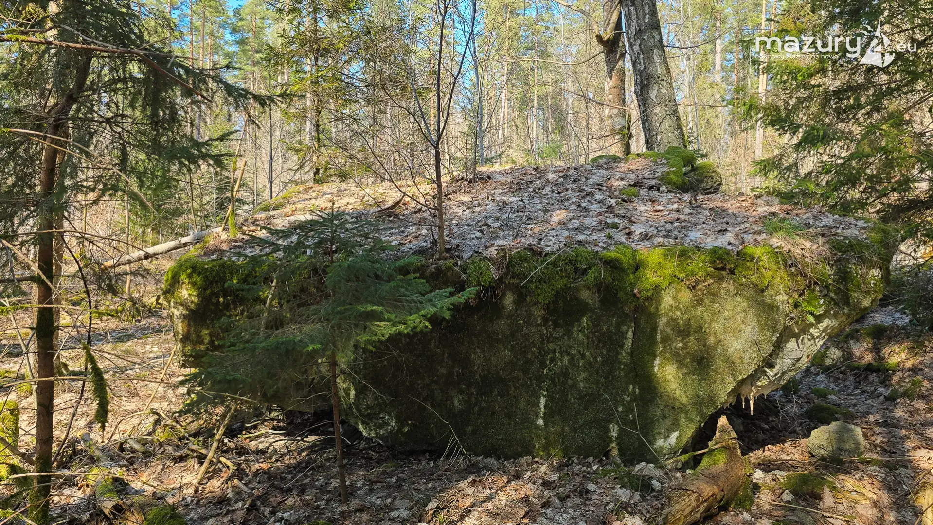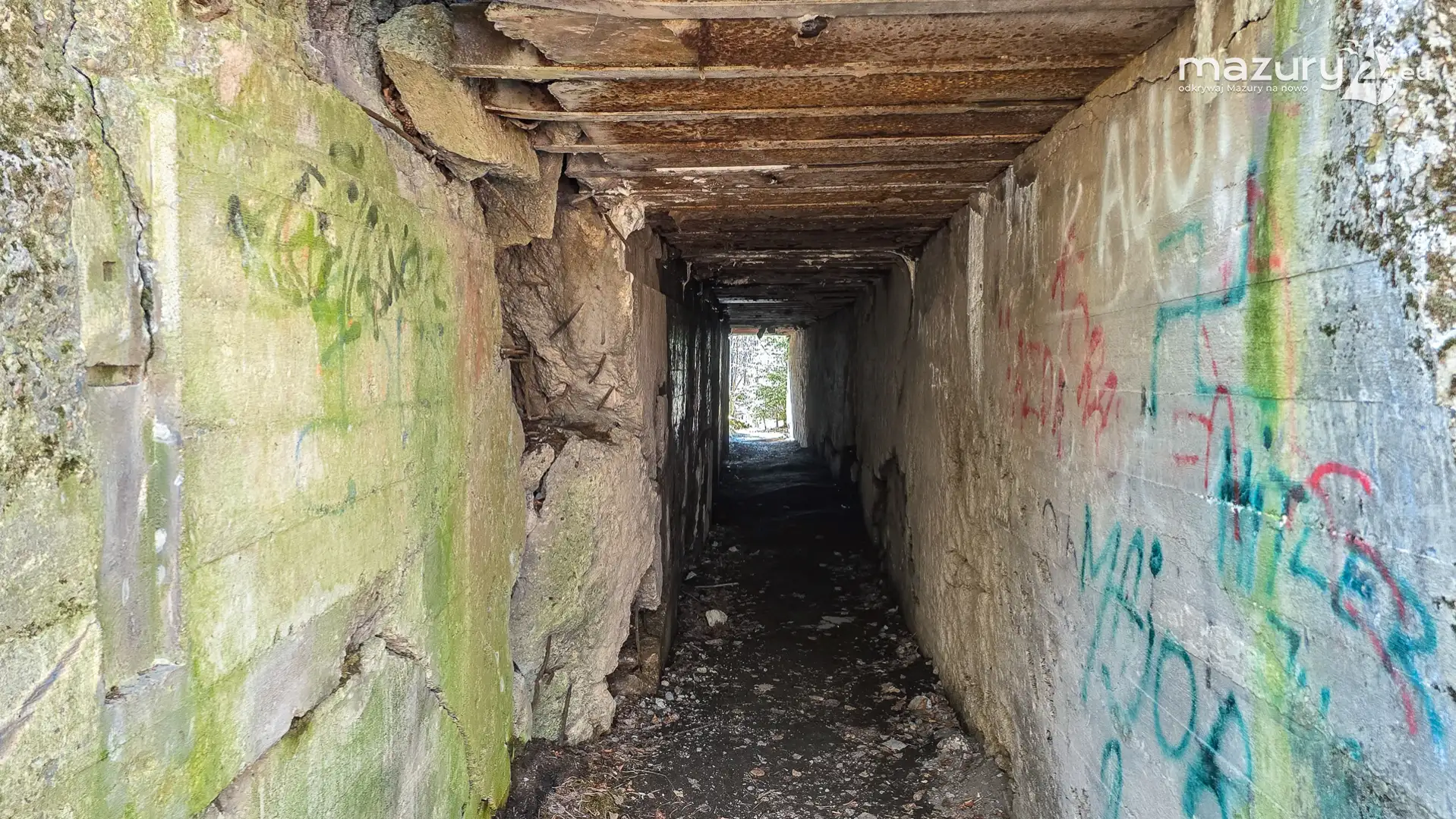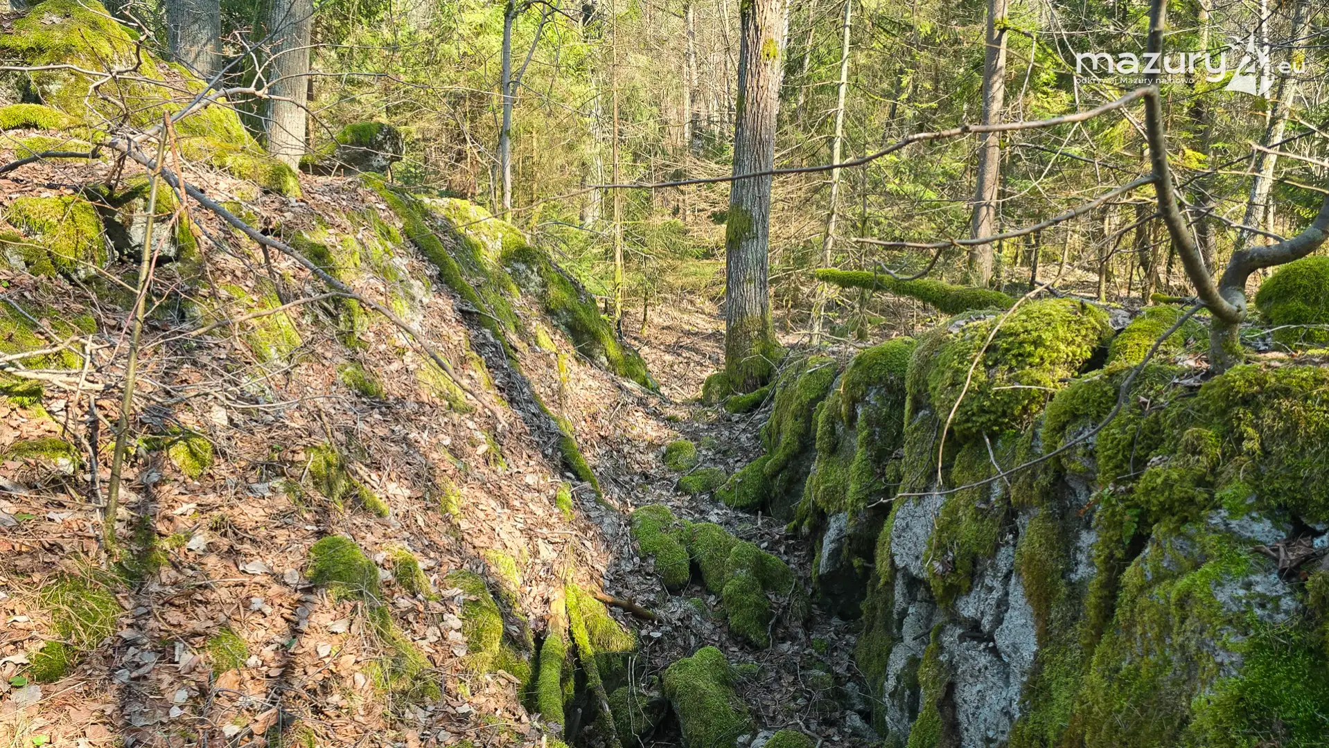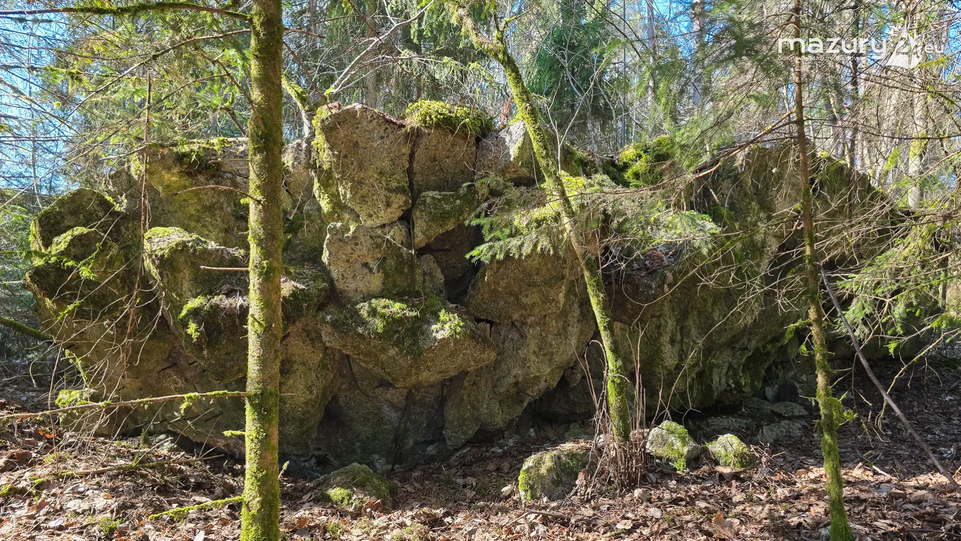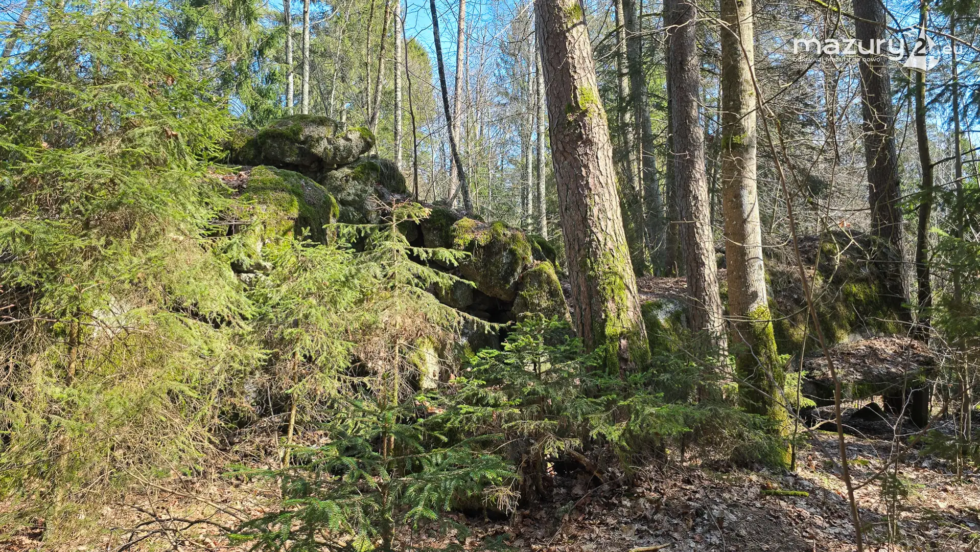 Wczesnowiosenna sceneria odsłania Hochwald w zupełnie innym świetle – brak liści i roślinności pozwala dostrzec więcej detali ukrytych na co dzień w lesie. Ruiny kwatery Heinricha Himmlera w Pozezdrzu, wysadzone w 1945 roku, ukazują dziś potęgę żelbetowych konstrukcji i skalę całego kompleksu. To moment, gdy historia staje się bardziej czytelna – odsłonięte bryły bunkrów wyraźnie rysują dawny układ tej tajnej instalacji.