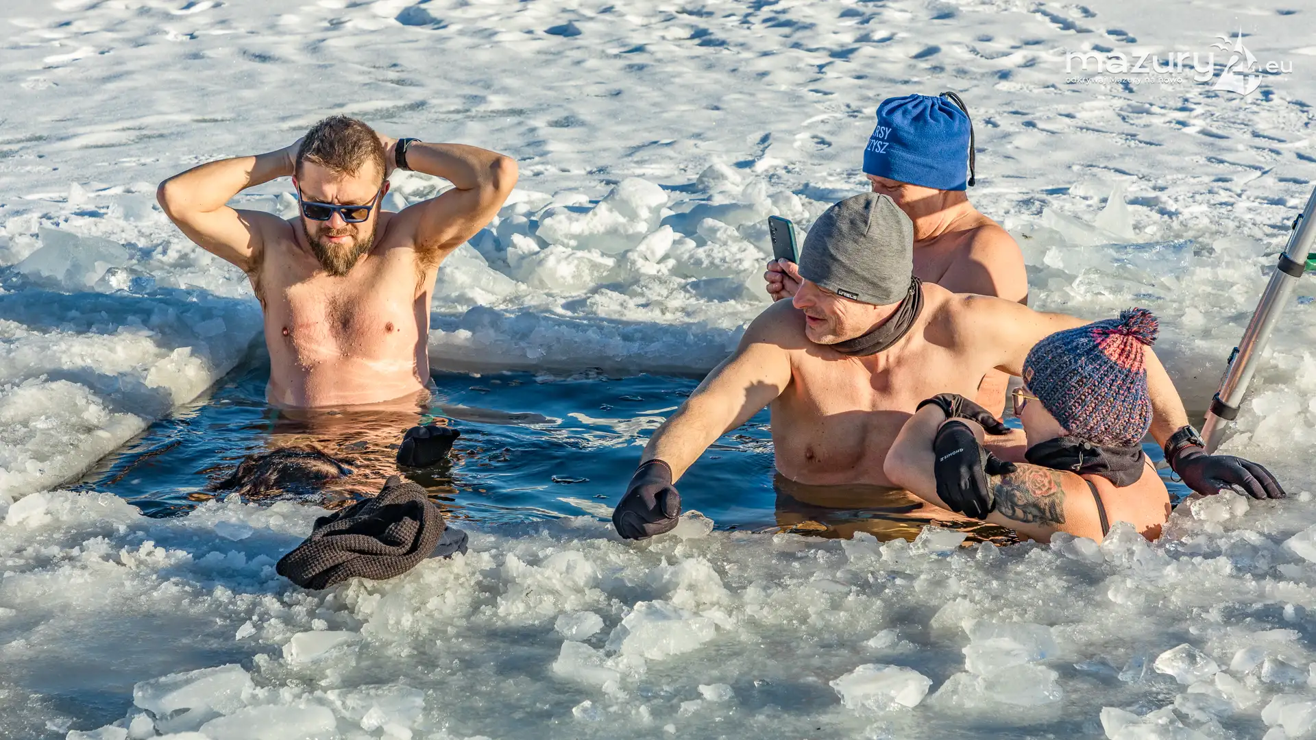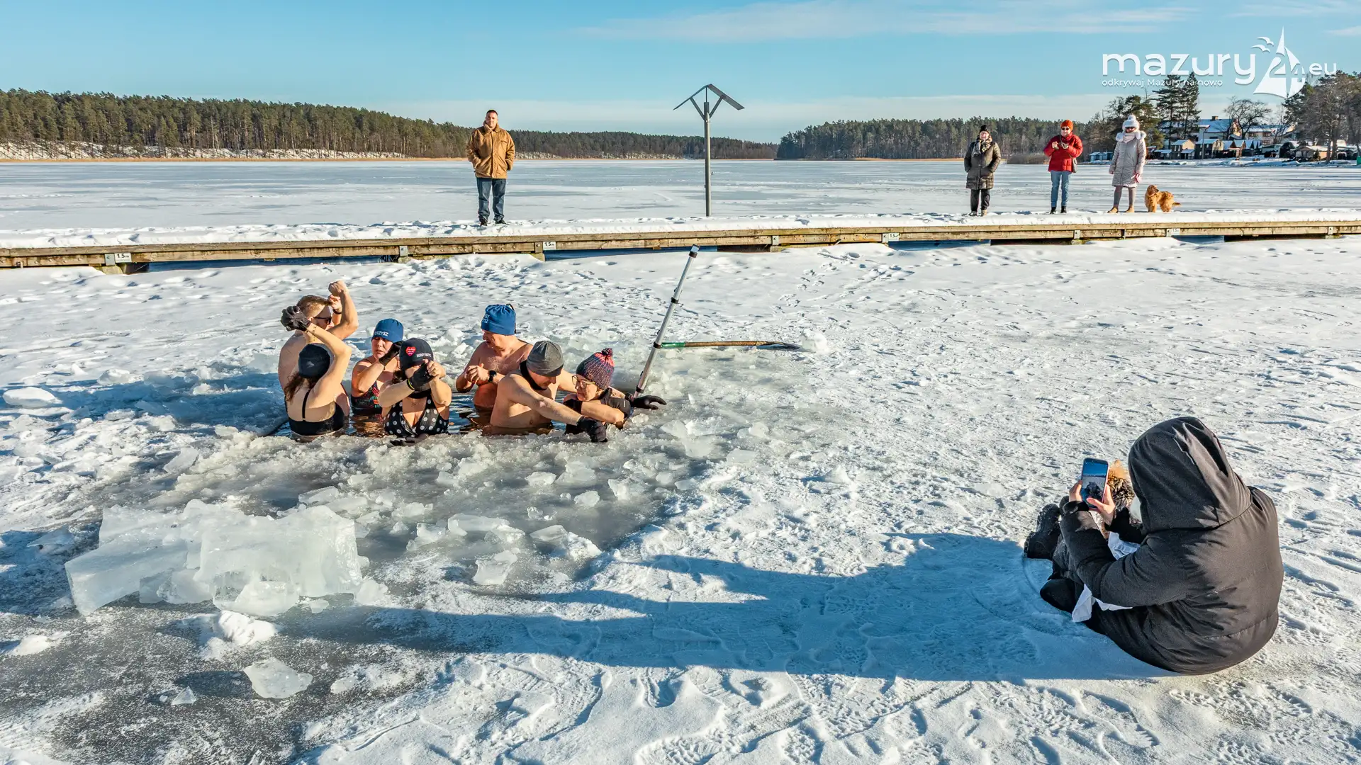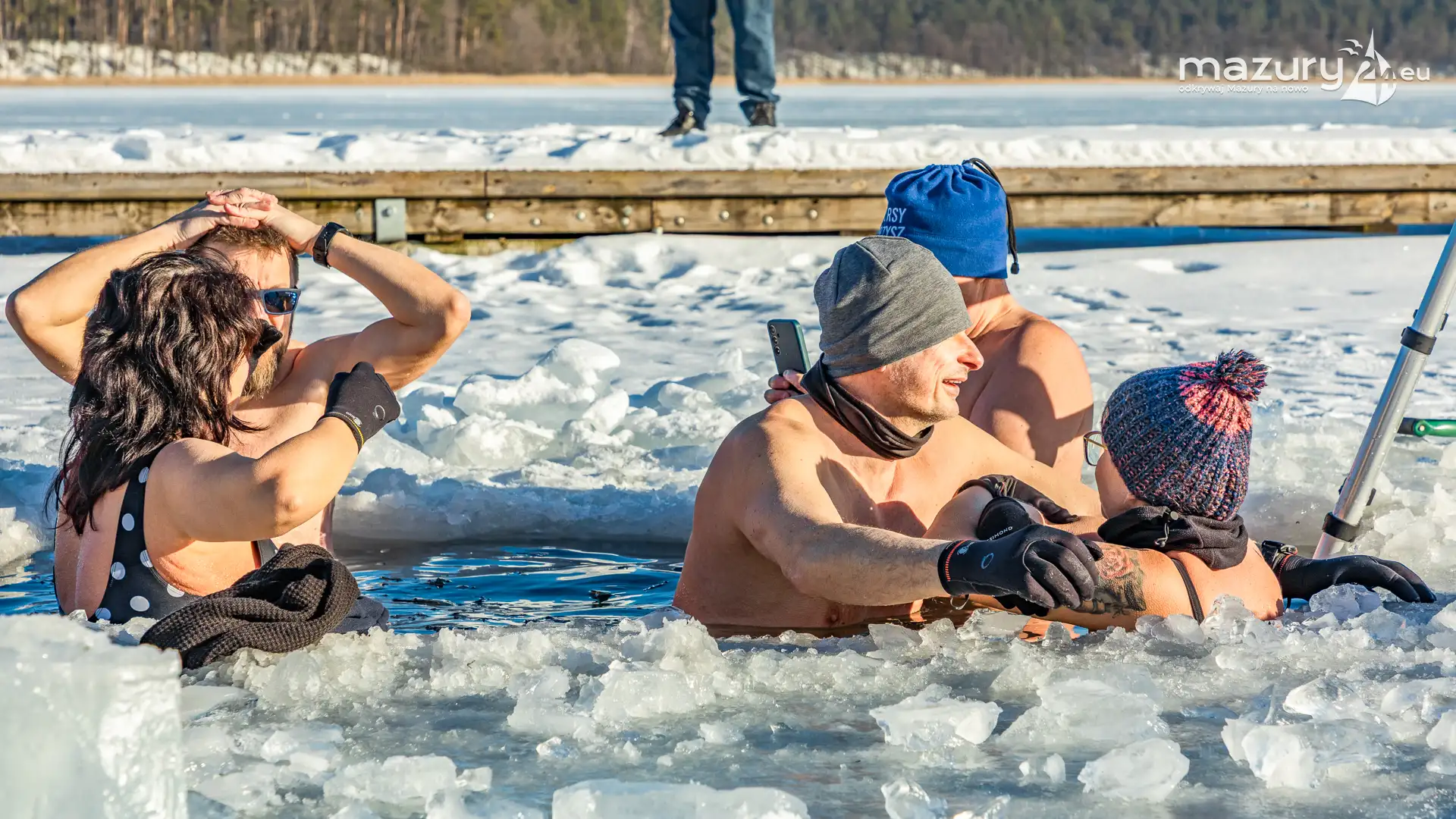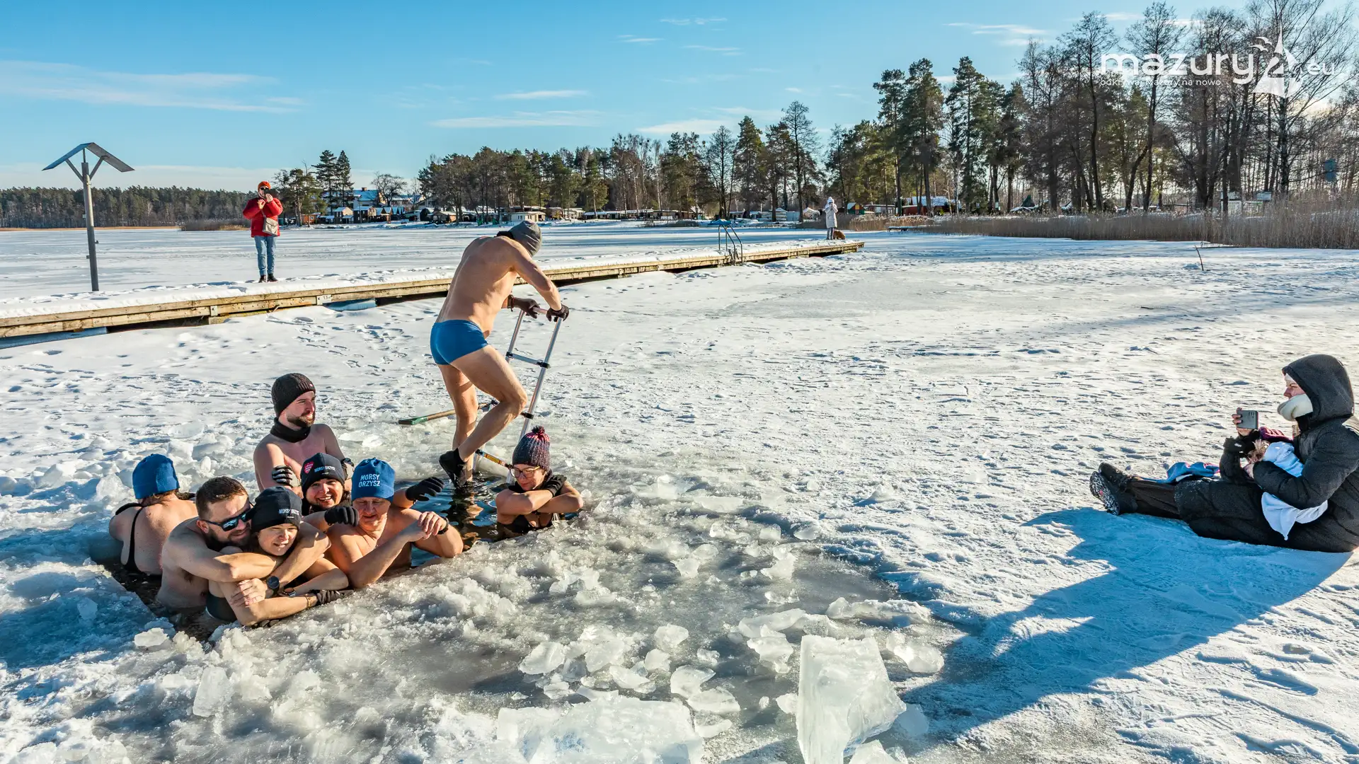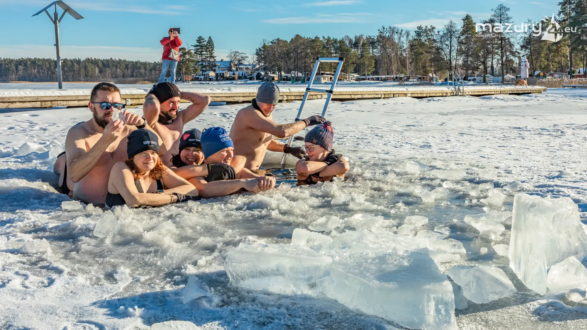 Dodatnia temperatura spowodowała, że Mazury jak okiem sięgnąć zaczynają "płynąć". Zmniejsza się zatem komfort termiczny miłośnikom morsowania, dla których idealnym kontrastem jest woda cieplejsza od powietrza. Tydzień temu udało nam się złapać miłośników morsowania w Orzyszu nad jeziorem Orzysz. Jak to się mówi... aby do zimy :)