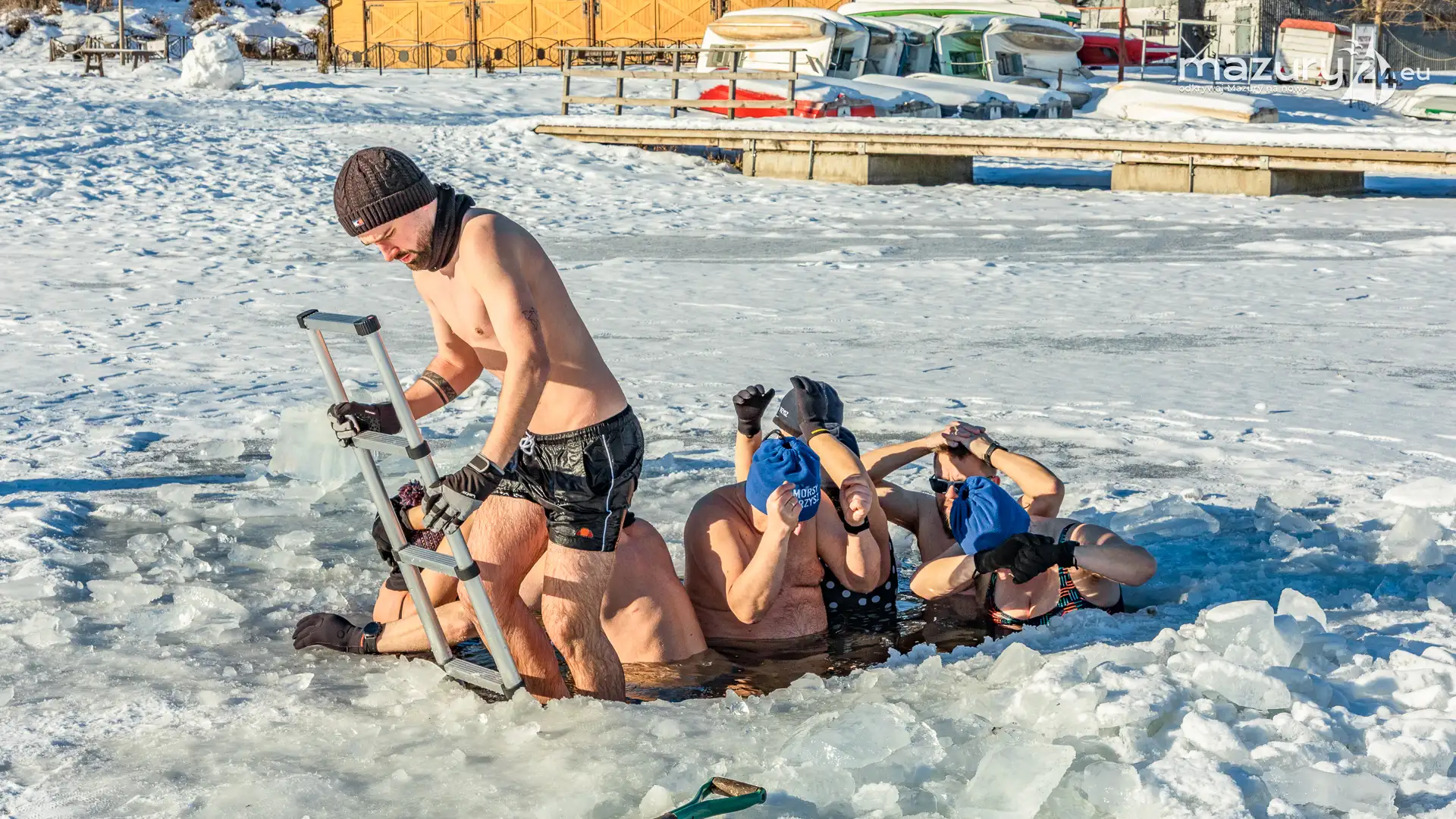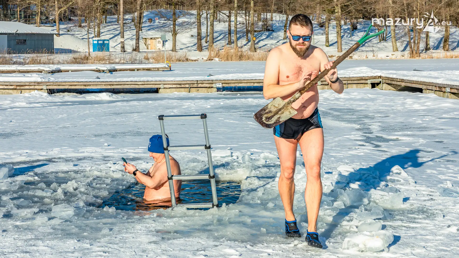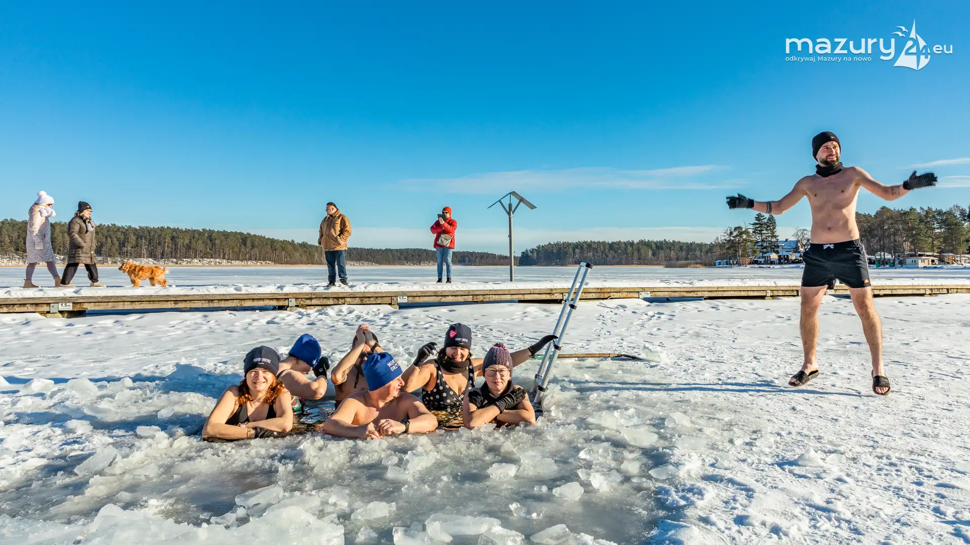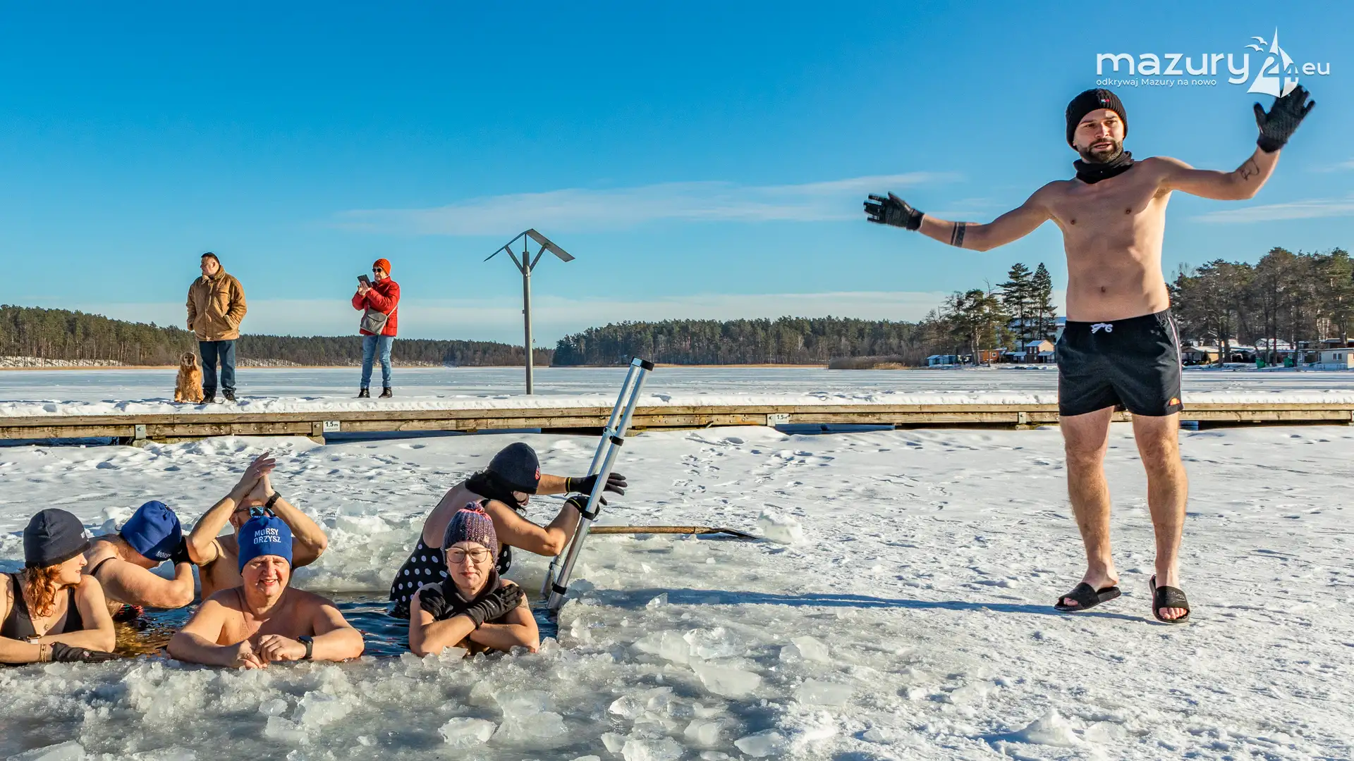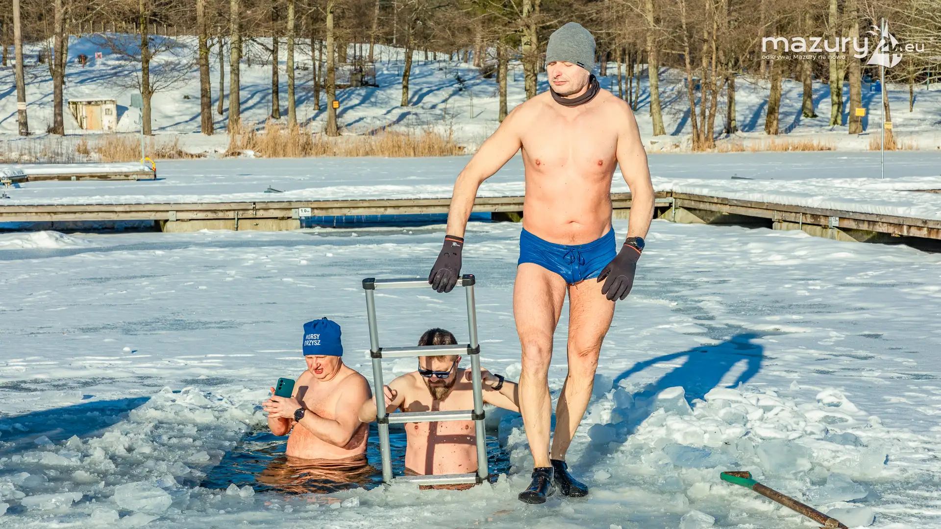 Dodatnia temperatura spowodowała, że Mazury jak okiem sięgnąć zaczynają "płynąć". Zmniejsza się zatem komfort termiczny miłośnikom morsowania, dla których idealnym kontrastem jest woda cieplejsza od powietrza. Tydzień temu udało nam się złapać miłośników morsowania w Orzyszu nad jeziorem Orzysz. Jak to się mówi... aby do zimy :)