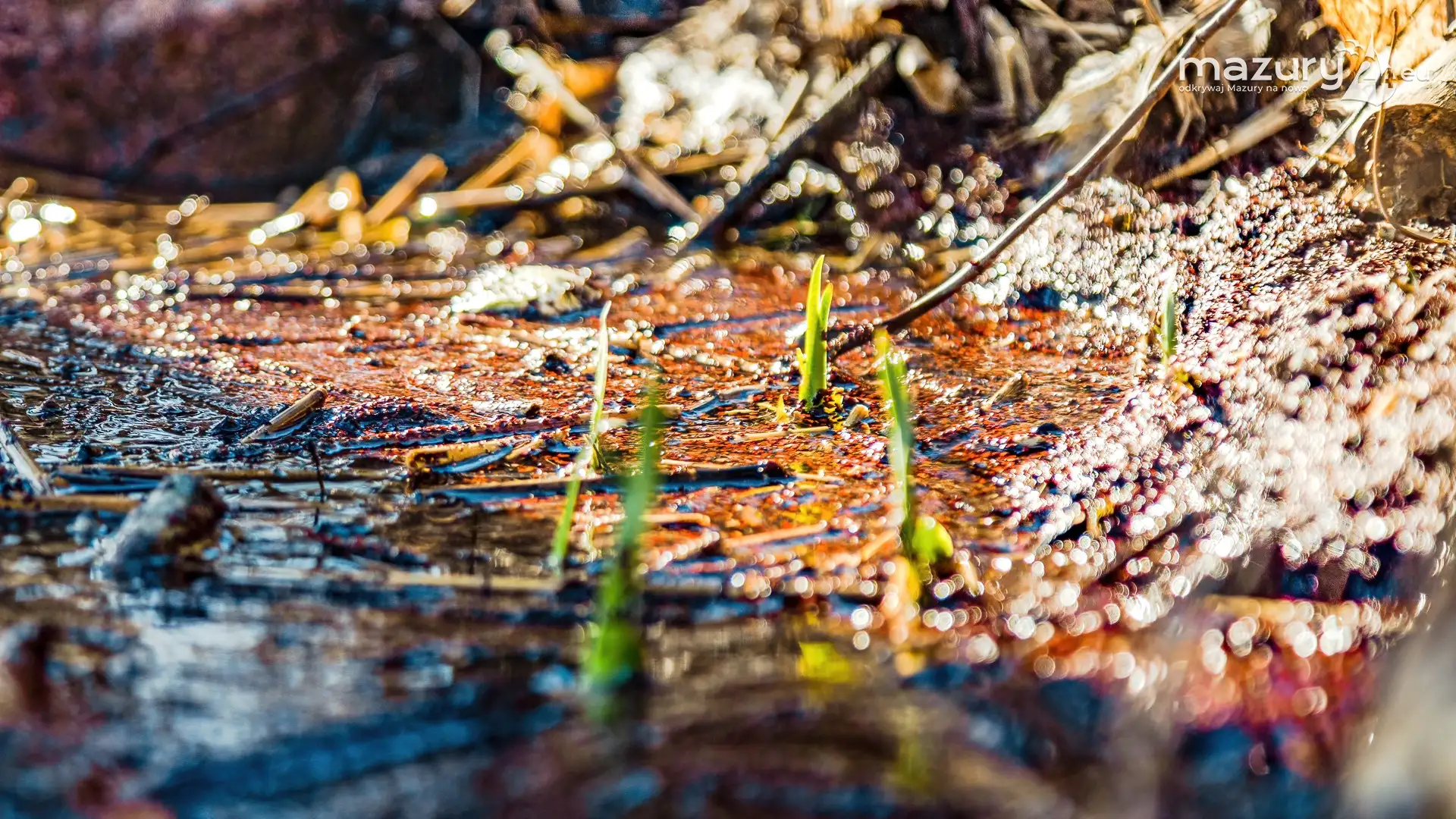 Jezioro Ołów położone przy Rynie jest oddalone od jezioro Ryńskiego tylko kilkaset metrów. Mimo to, nie należy do szlaków WJM, a dla mieszkańców i turystów Rynu pełni rolę tylko atrakcyjnego kąpieliska. My jednak postaraliśmy się je pokazać od tej dzikiej strony, do której zwykle nikt nie dociera... Wiosna powoli się rozpędza...