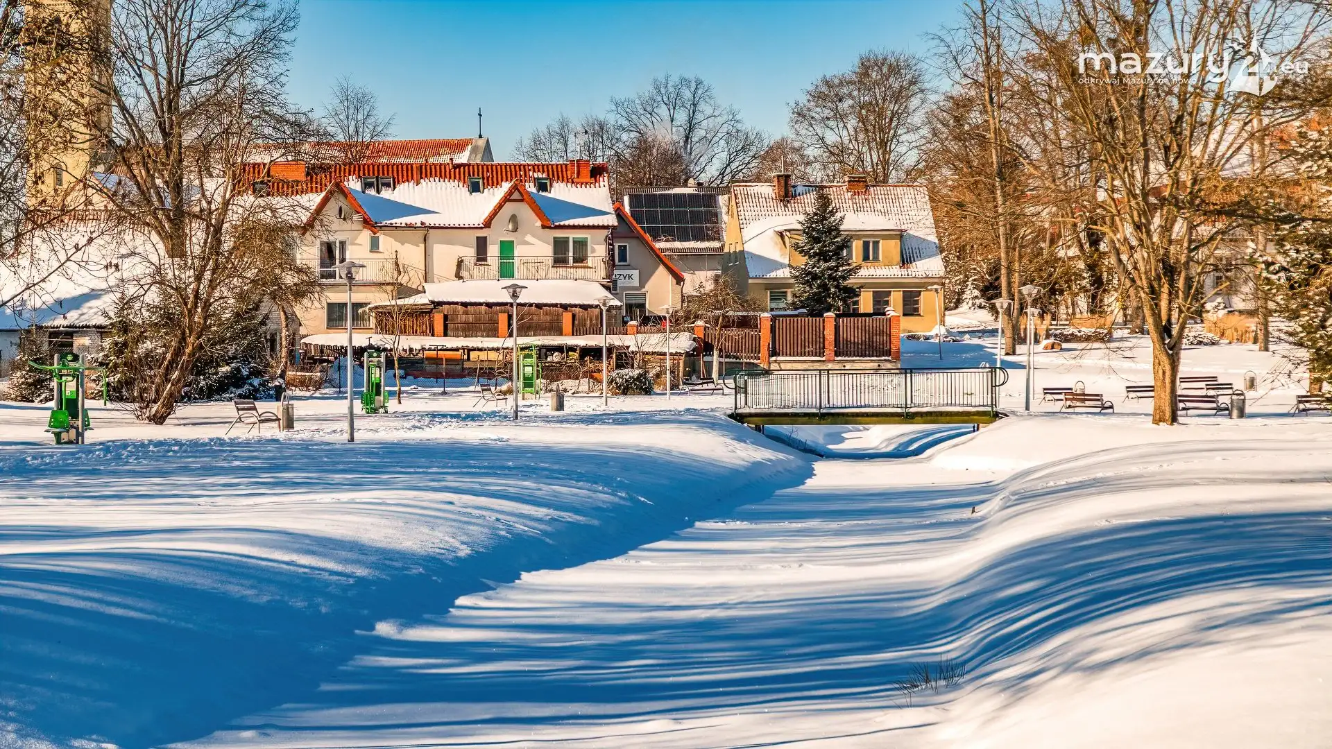 Piękną mamy zimę tego roku i po cichu liczymy, że jest to również zwiastun równie pięknego i ciepłego lata. Po publikacji zdjęć z zachodu słońca w Mikołajkach przyszedł czas na skupienie się na samej miejscowości w zimowej scenerii.