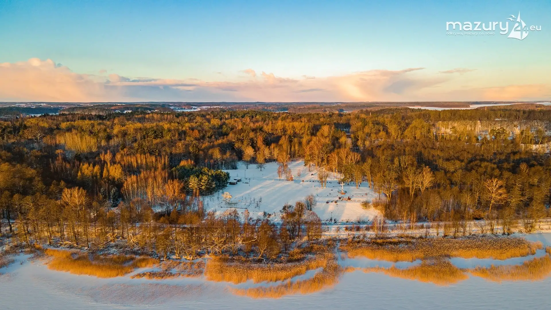 Kolejny piękny, magiczny, zjawiskowy i zimowy wschód słońca na Mazurach za nami. To piękne zjawisko udało nam się sfotografować w okolicach krzyża św. Brunona, patrząc oczywiście w kierunku wschodniego brzegu jeziora Niagocin. Na jednym ze zdjęć z drona, pięknie widać również obrys gwiazdy twierdzy Boyen oraz zabudowania Giżycka. Na fotkach z dołu dominuje zamarźnięte jezioro Niegocin i grudniowe słońce. Od kilku dni, dzień się wydłuża - wkrótce ciężko będzie wstawać na wschody słońca. Miłego oglądania...