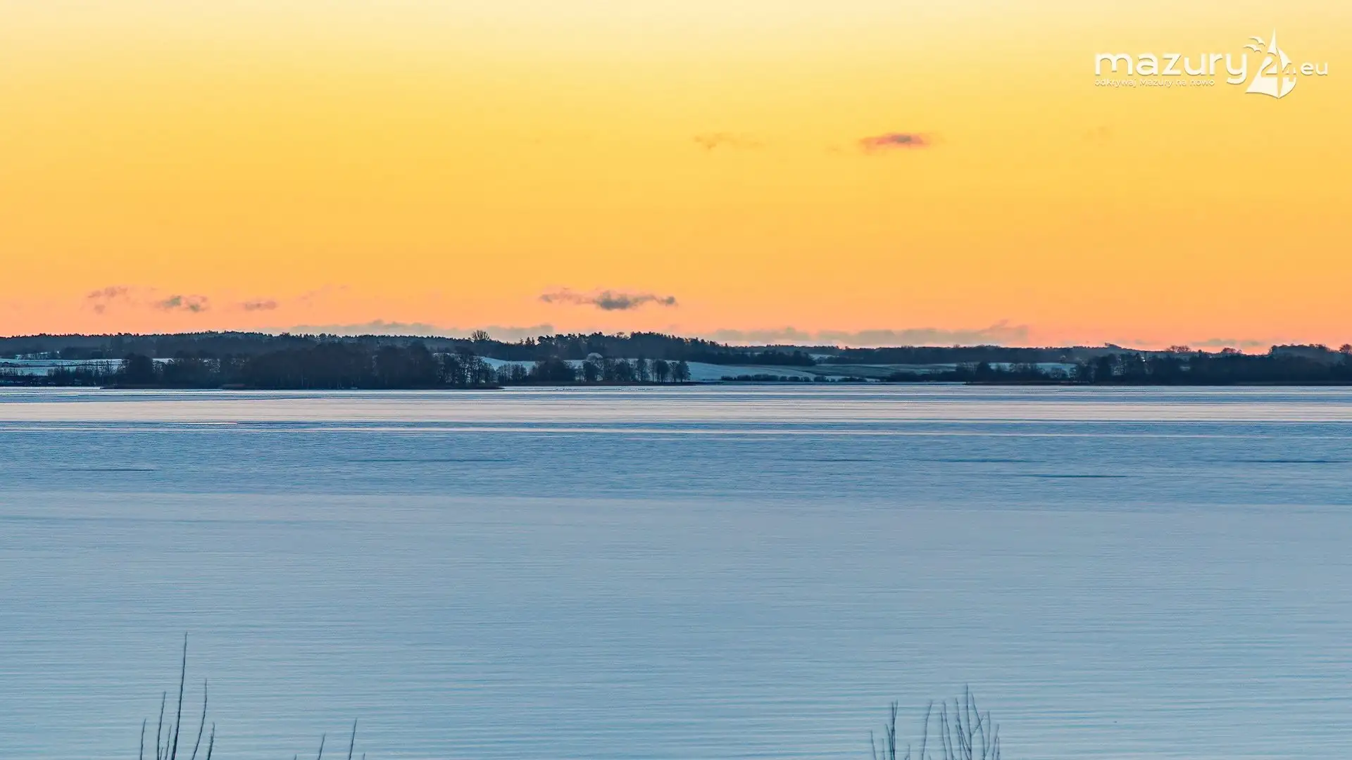 Grudniowy zachód słońca nad jeziorem Kisajno 2021