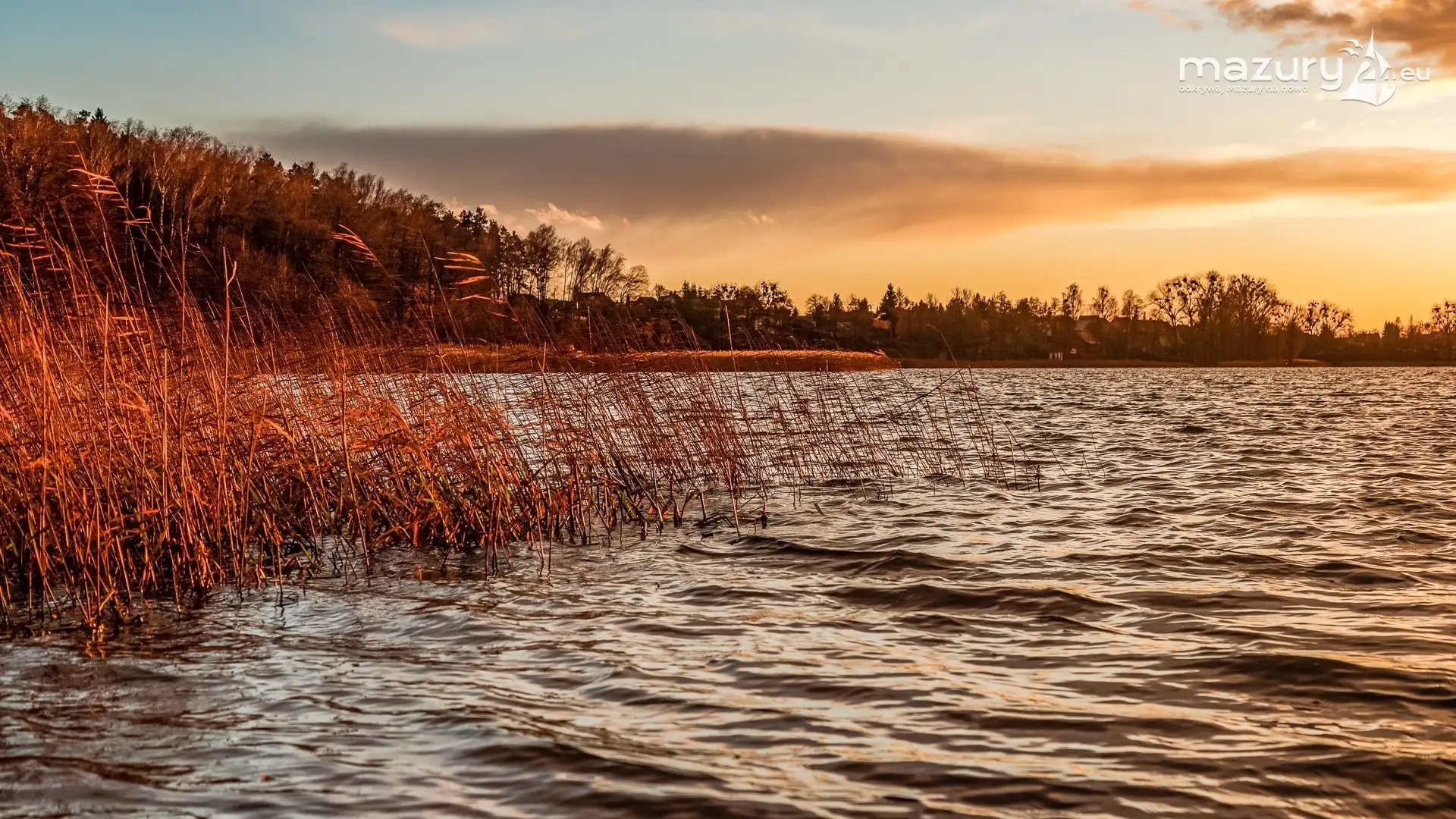 Kolejny zachód słońca złapany na Mazurach, tym razem nad jeziorem Ołów w Rynie. Mamy słońce, chmury, jezioro i resztki jesieni. Samo jezioro mimo, że położone niedaleko jeziora Ryńskiego nie jest z nim połączone i nie należy do szlaków WJM. Plaża miejska w Rynie, jest właśnie położona nad tym jeziorem Ołów.