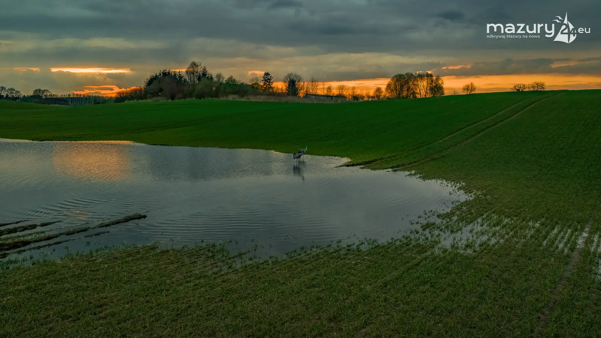 Zachód słońca w Pierkunowie, jezioro Kisajno, kwiecień 2023 r.