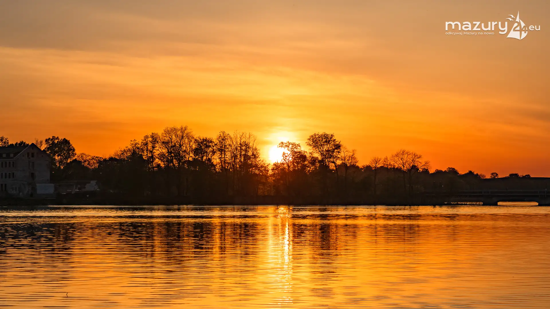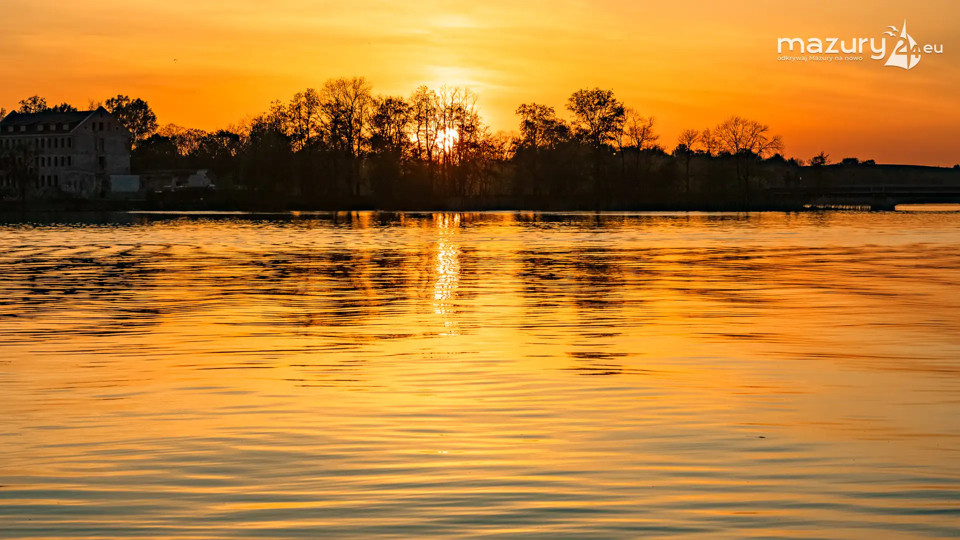 Zachód słońca nad jeziorem Dargin z komarami w planie