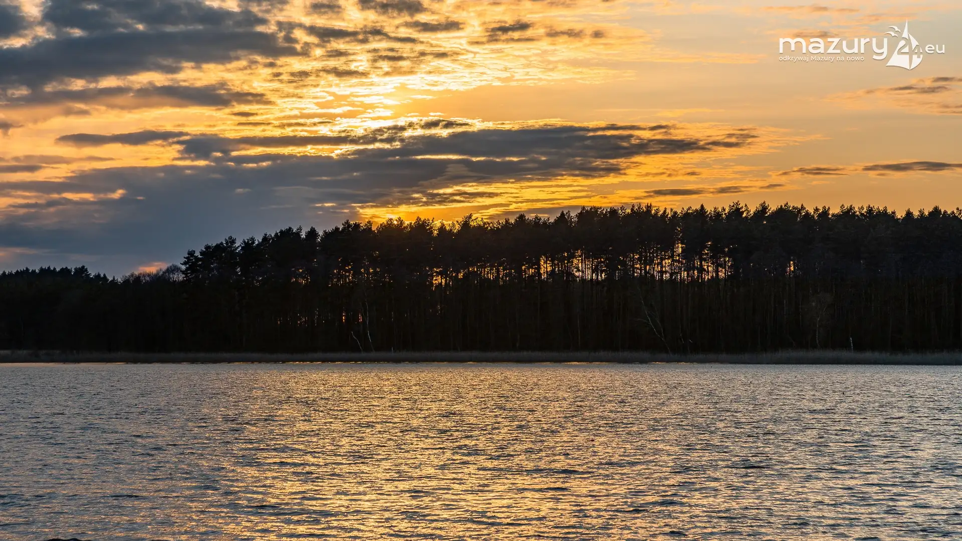 Zachód słońca nad jeziorem Boczne, widoczny z Rydzewa