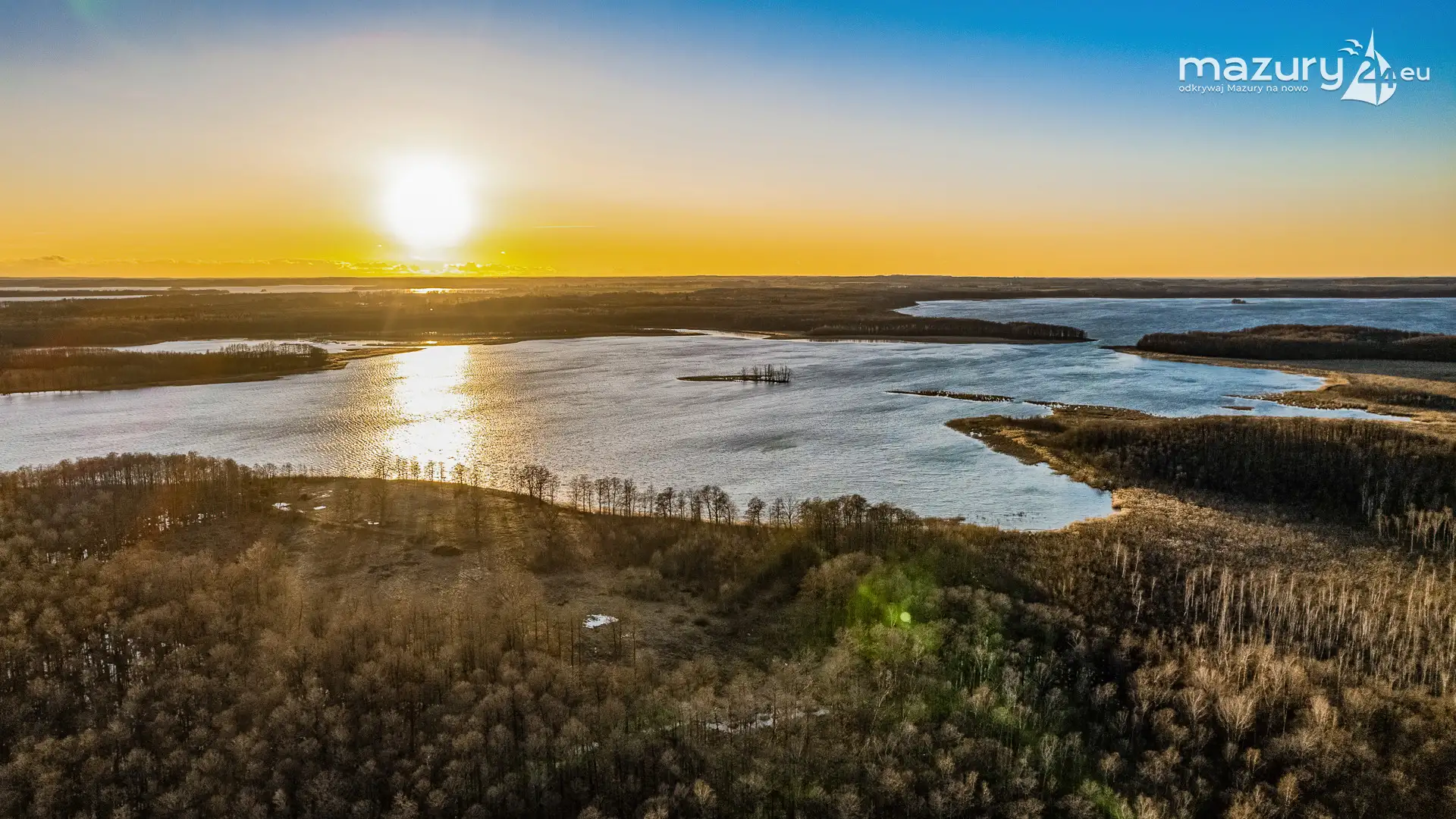 Zachód słońca nad jeziorem Duże Wilkasy, luty 2023