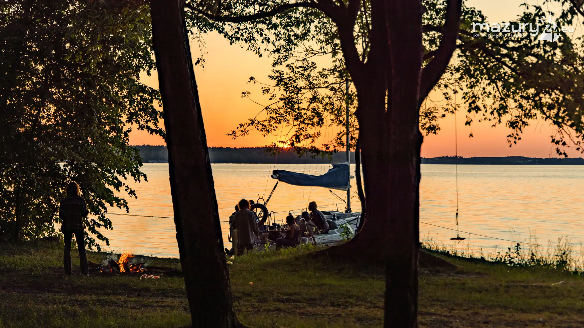 Zachód słońca nad jeziorem Kisajno widziany z dawnego Almaturu