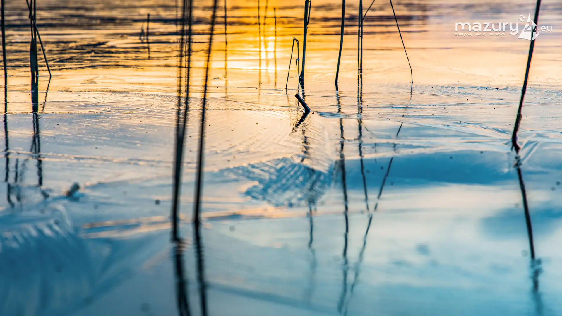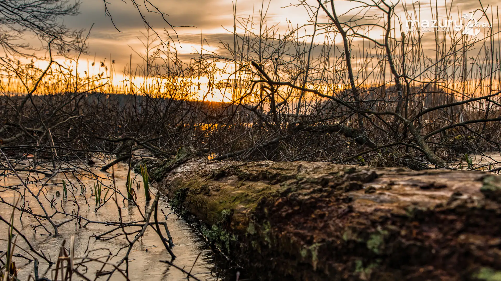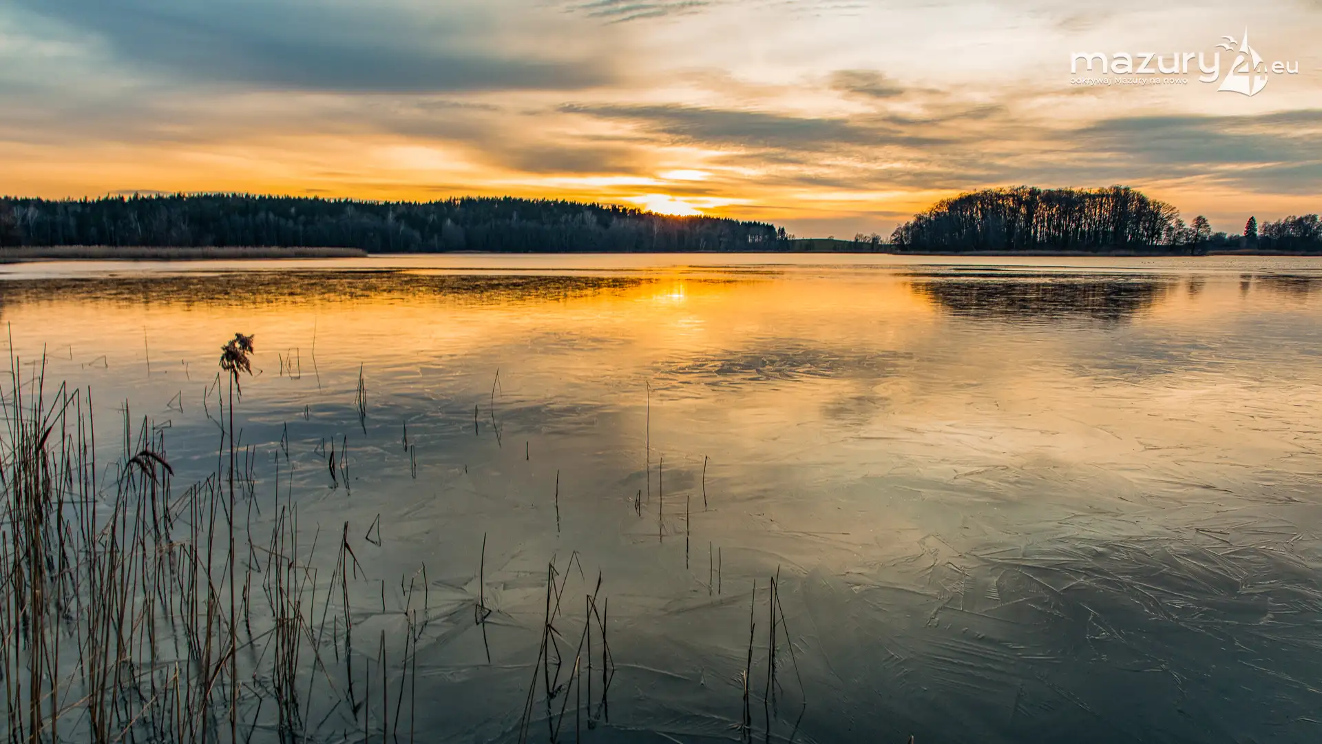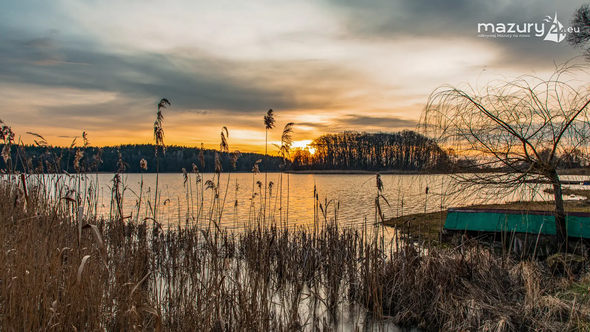 Zachód słońca nad jeziorem Duże Wilkasy, luty 2023