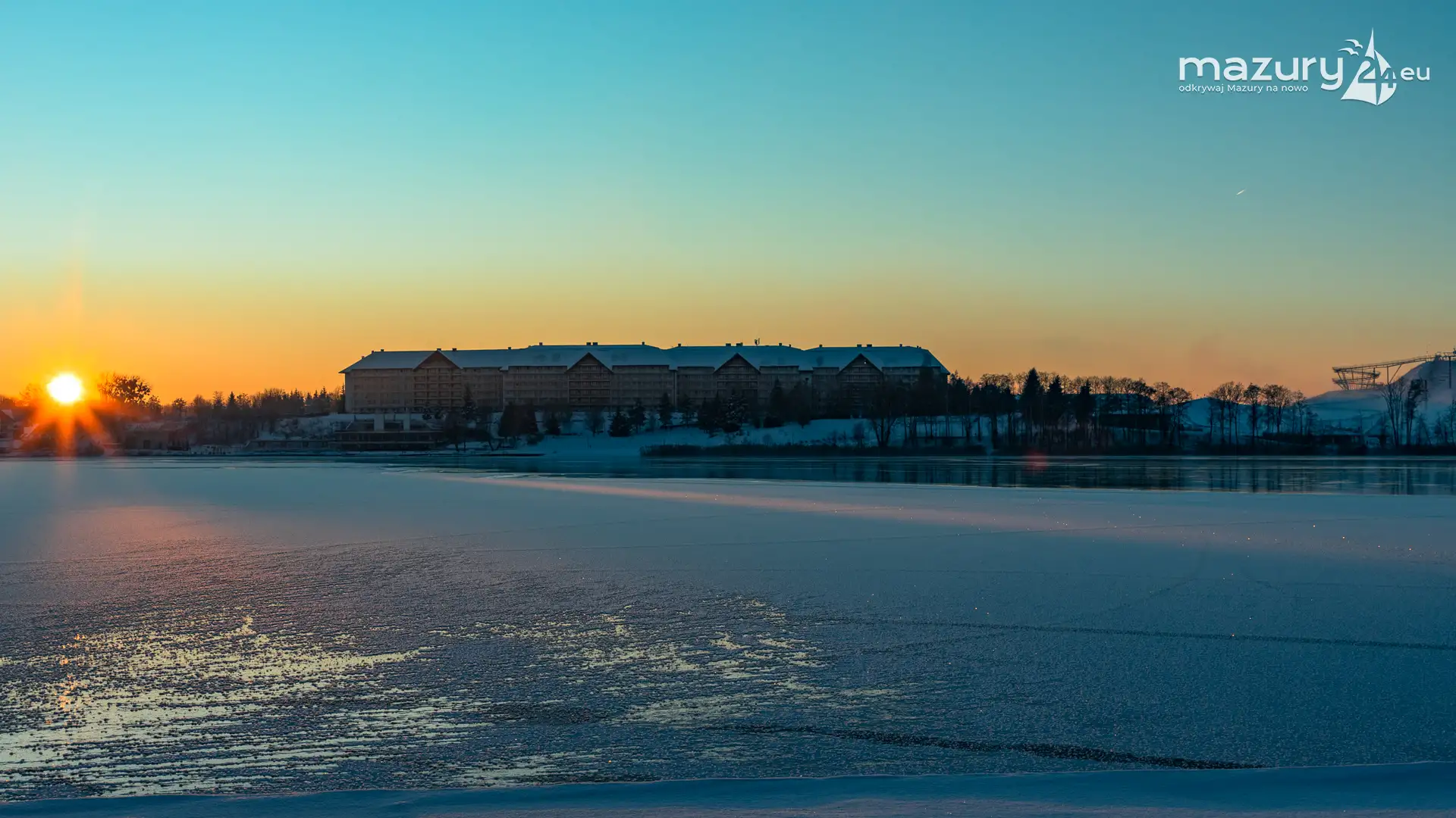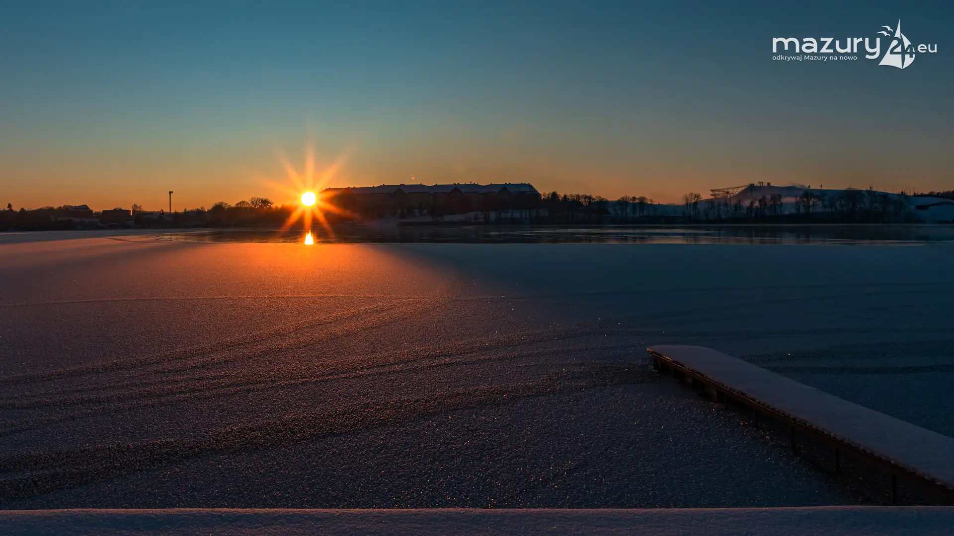 Aby można było podziwiać mazurskie zachody słońca... potrzebne jest słońce w odpowiedni momencie. Zima nie rozpieszczała nas do tej pory jeśli chodzi o promienie słońca. Nam się jednak udało tydzień temu złapać w kadr kończący się dzień w Mikołajkach, ale już tylko nad jeziorem Tałty. Tak to jest zimą, w centrum i na promenadzie w Mikołajek już po zachodzie, a gdzieś niedaleko jeszcze można go obserwować... W tle oczywiście Hotel Mikołajki i czasami góra należąca to tego obiektu...