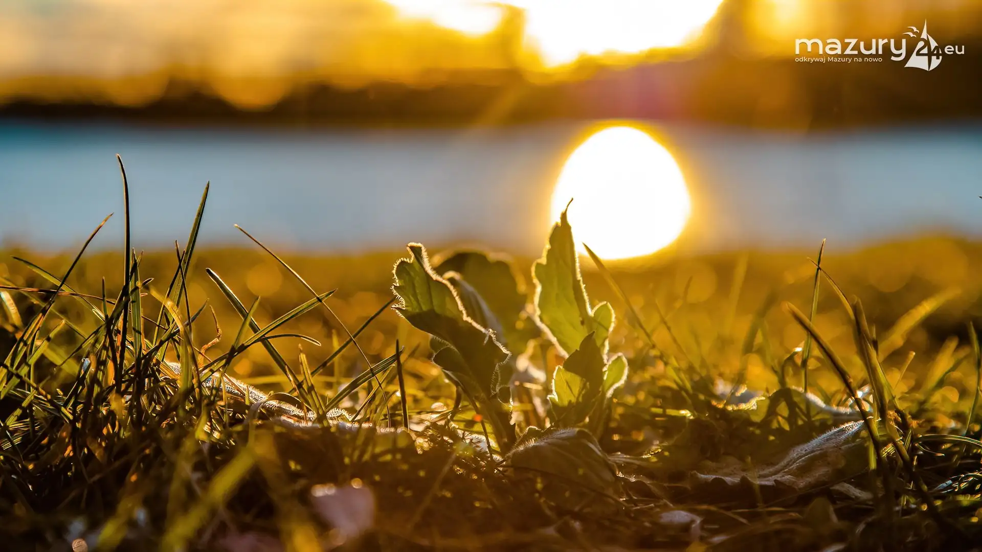 Przedwiosenny zachód słońca nad jeziorem Gołdopiwo i Żabiniec