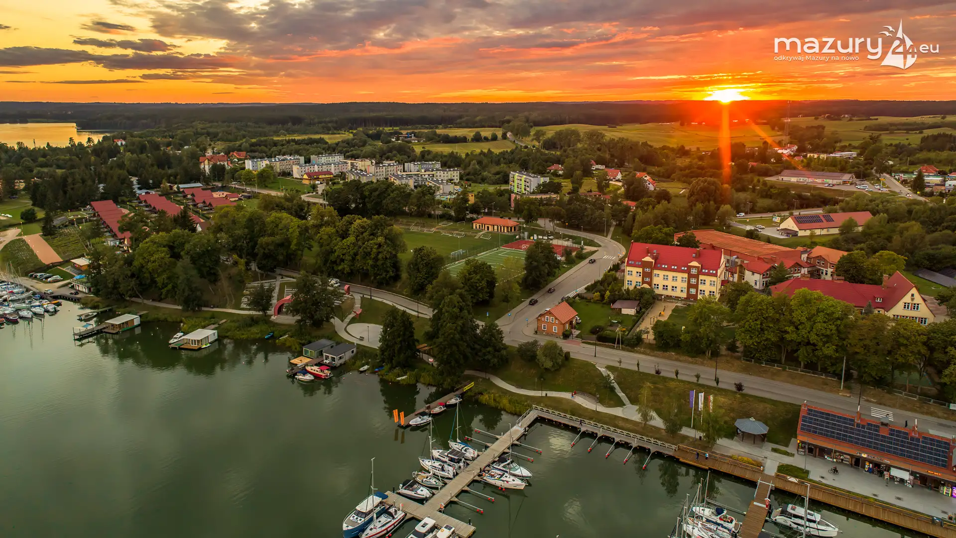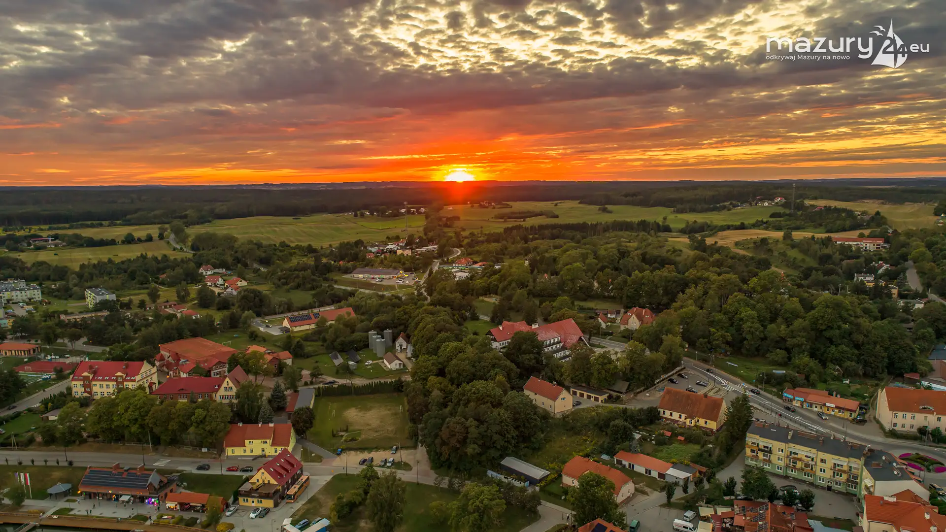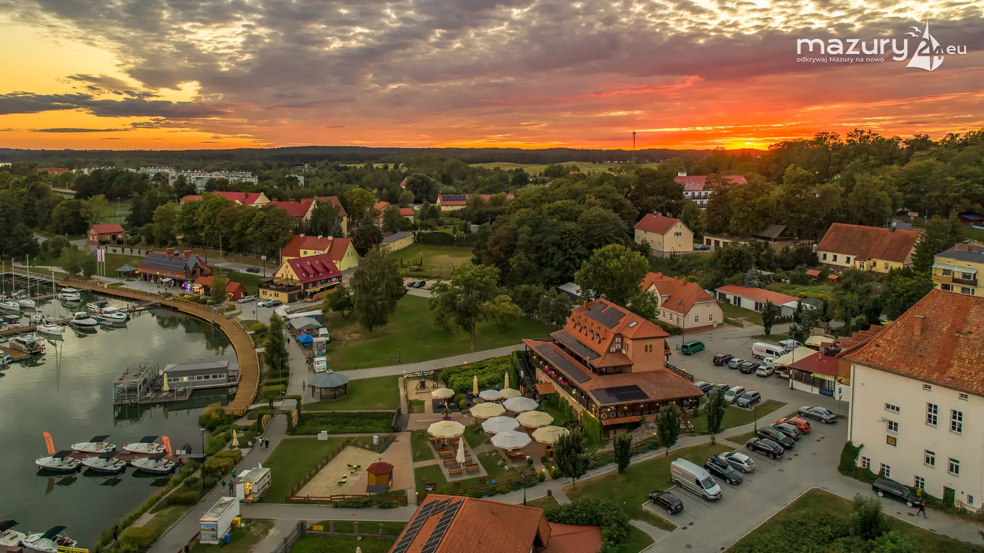 Są takie momenty na Mazurach, kiedy warto być w górze :) W Rynie zachód widziany z doły trwa tylko kilka chwil, a słońce szybko chowa się za wzniesieniem i drzewami... Inaczej to wygląda z lotu ptaka... Kolory, oświetlone chmury - coś pięknego. Przekonajcie się sami i... zakochajcie się w Rynie. Część naszej ekipy przygodę z Mazurami zaczynała właśnie w Rynie, pod żaglami, ponad 28 lat temu...