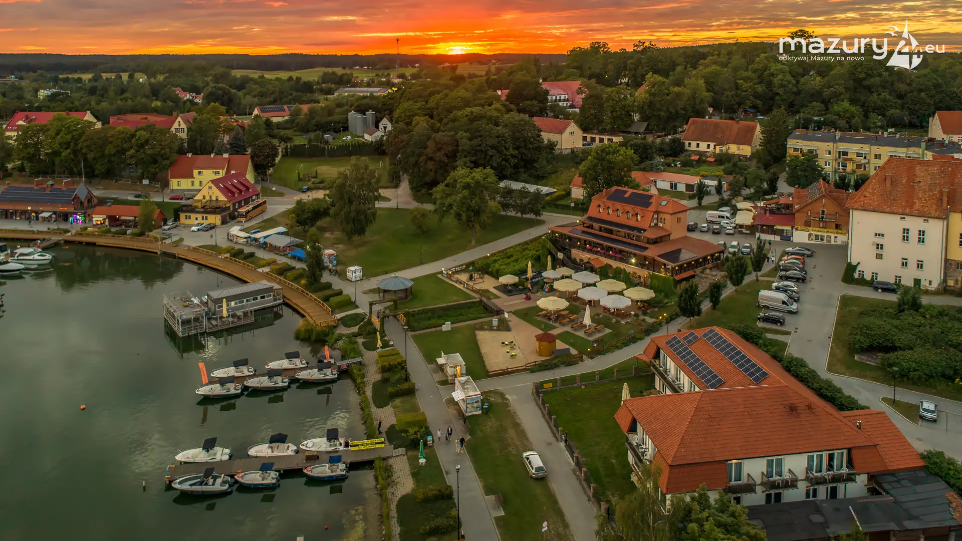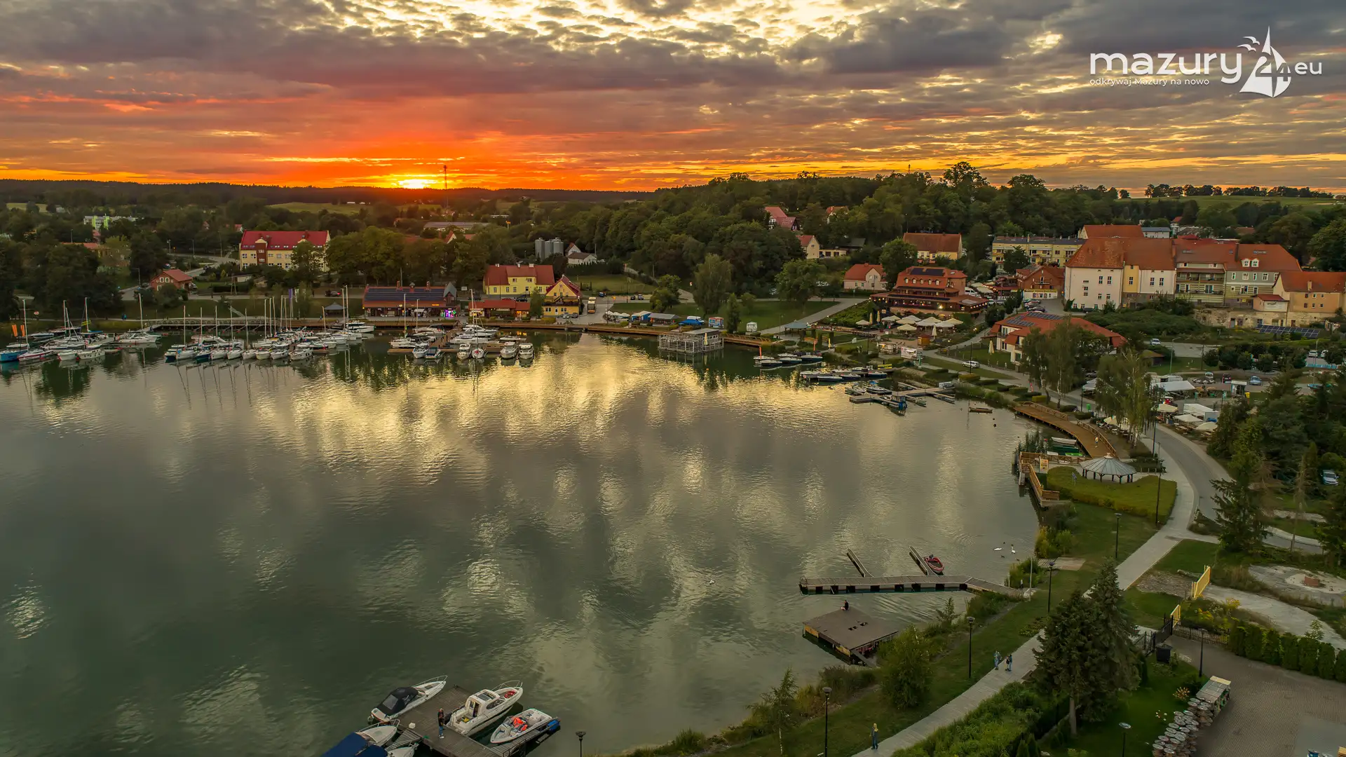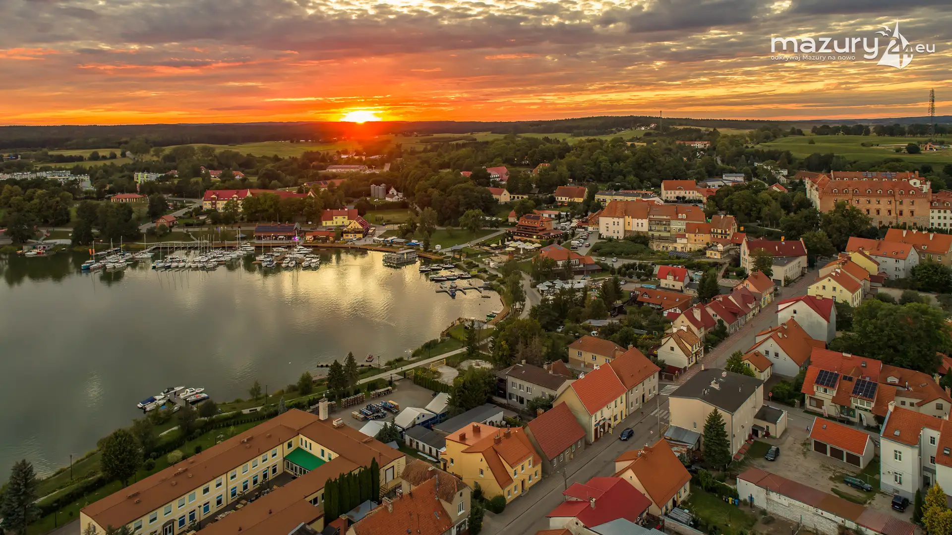 Są takie momenty na Mazurach, kiedy warto być w górze :) W Rynie zachód widziany z doły trwa tylko kilka chwil, a słońce szybko chowa się za wzniesieniem i drzewami... Inaczej to wygląda z lotu ptaka... Kolory, oświetlone chmury - coś pięknego. Przekonajcie się sami i... zakochajcie się w Rynie. Część naszej ekipy przygodę z Mazurami zaczynała właśnie w Rynie, pod żaglami, ponad 28 lat temu...