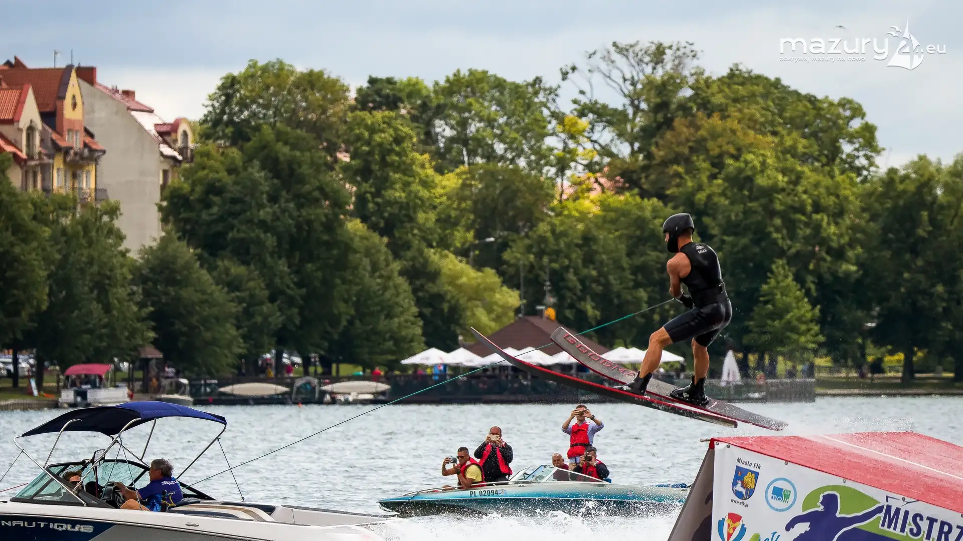 Skocznia ustawiona na jeziorze Ełckim w okolicy parku linowego stała się areną dla skoków i jazdy figurowej na wodzie. Najlepsi zawodnicy klubów sportowych z całego kraju byli ciągnięci za motorówką po wyznaczonym torze. Wjeżdżając na skocznię i oddawali swoje skoki lub jak w drugiej konkurencji, była to jazda figurowa. Wygrywał ten, który z zawodników skoczył najdalej - w przypadku figur liczyła się technika oraz styl. Wszystkie zmagania oceniali sędziowie.