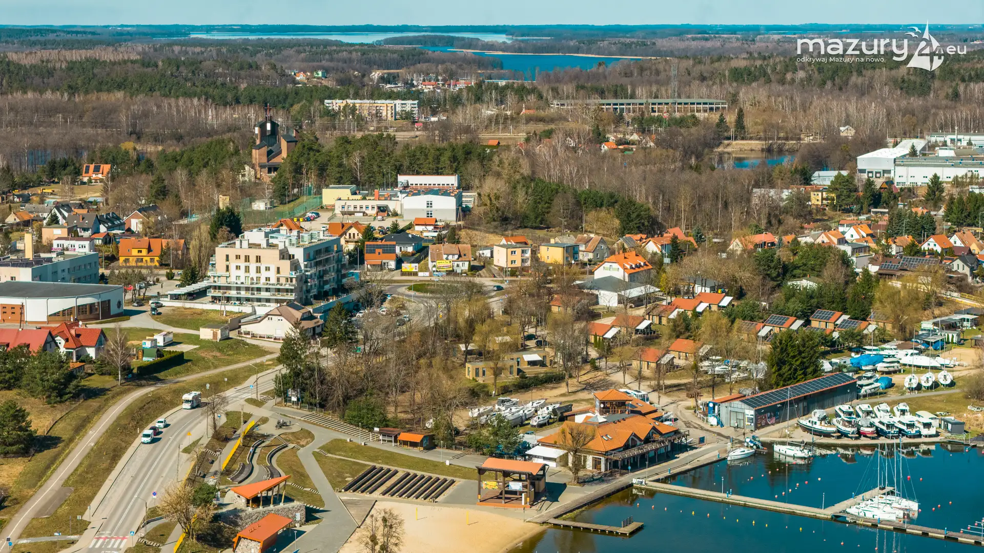 Wiosenne Śniardwy i Niedźwiedzi Róg z lotu ptaka, kwiecień 2026 r.