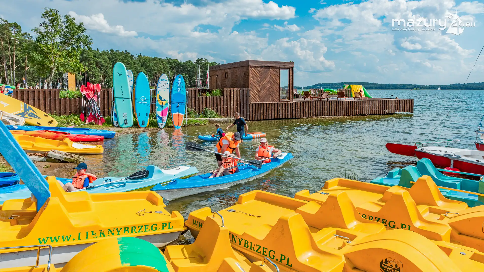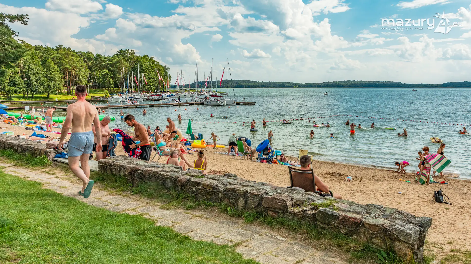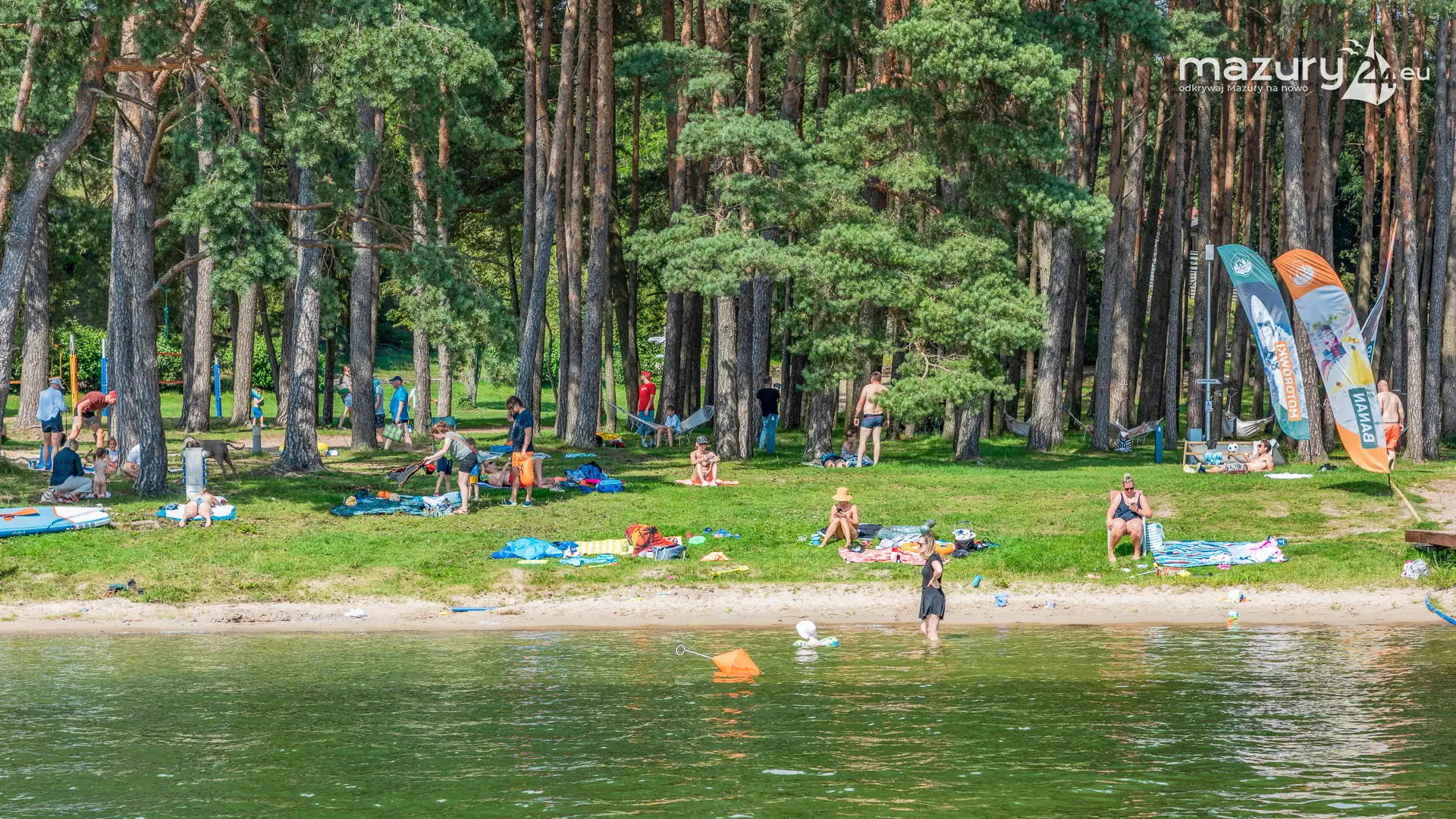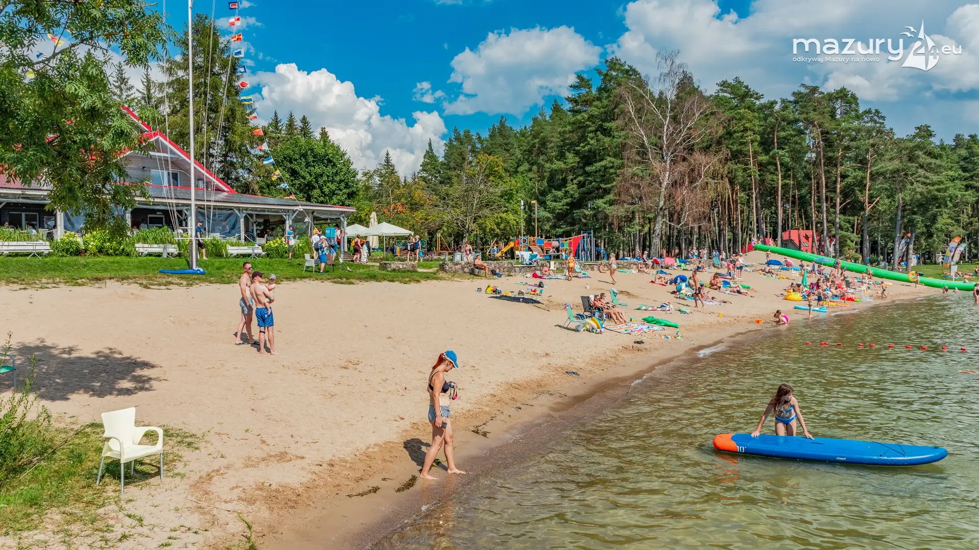 Piękny Brzeg to najlepsze miejsce dla żeglarzy z dziećmi na północnej części szlaków Wielkich Jezior Mazurskich. Leży nad jeziorem Święcajty, po wejściu na jezioro przez bramę Kalską, 90 stopni skręcamy w lewo i jesteśmy na ostatniej prostej. Część ekipy Mazury24 jeszcze kwalifikuje się do miana dziecka - jesteśmy tam kilka razy w sezonie - polecamy.