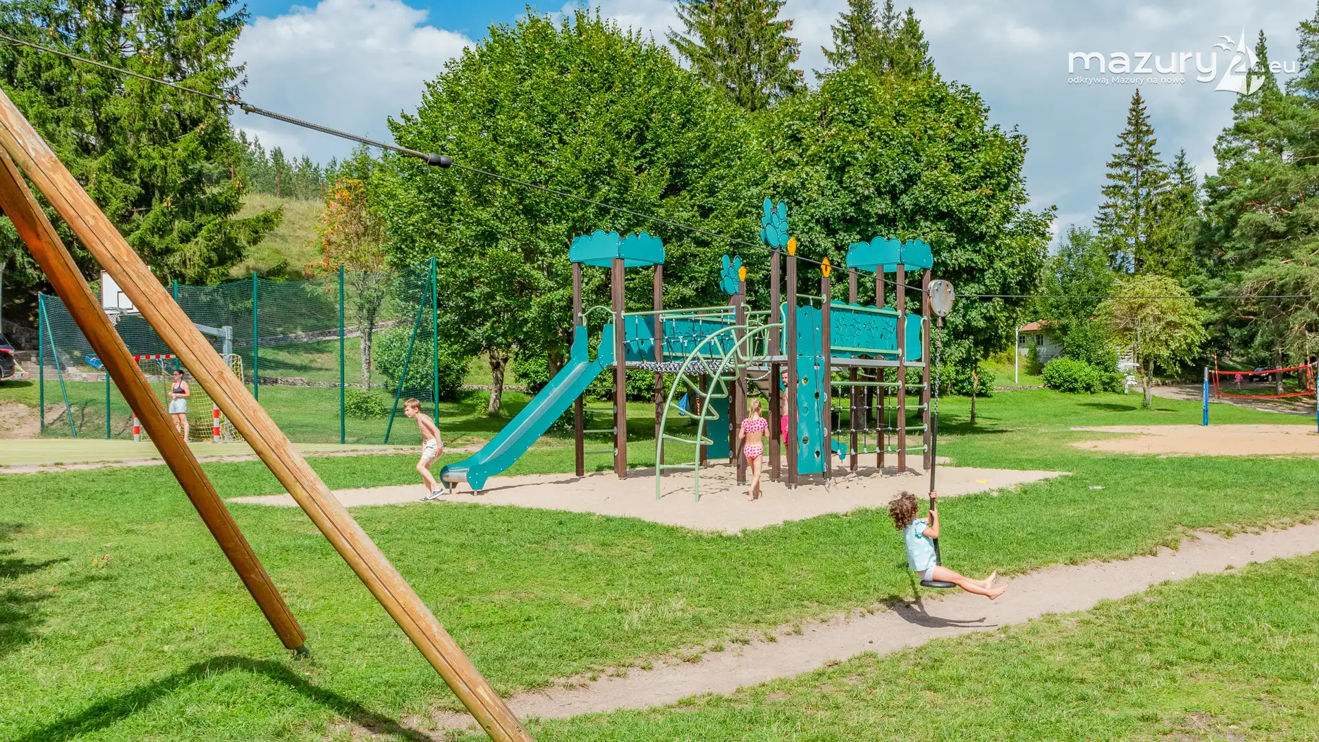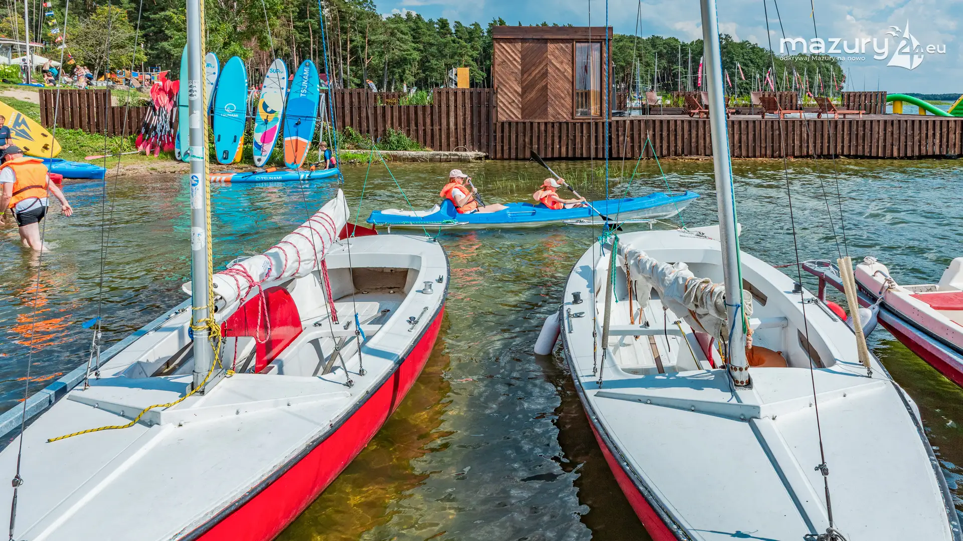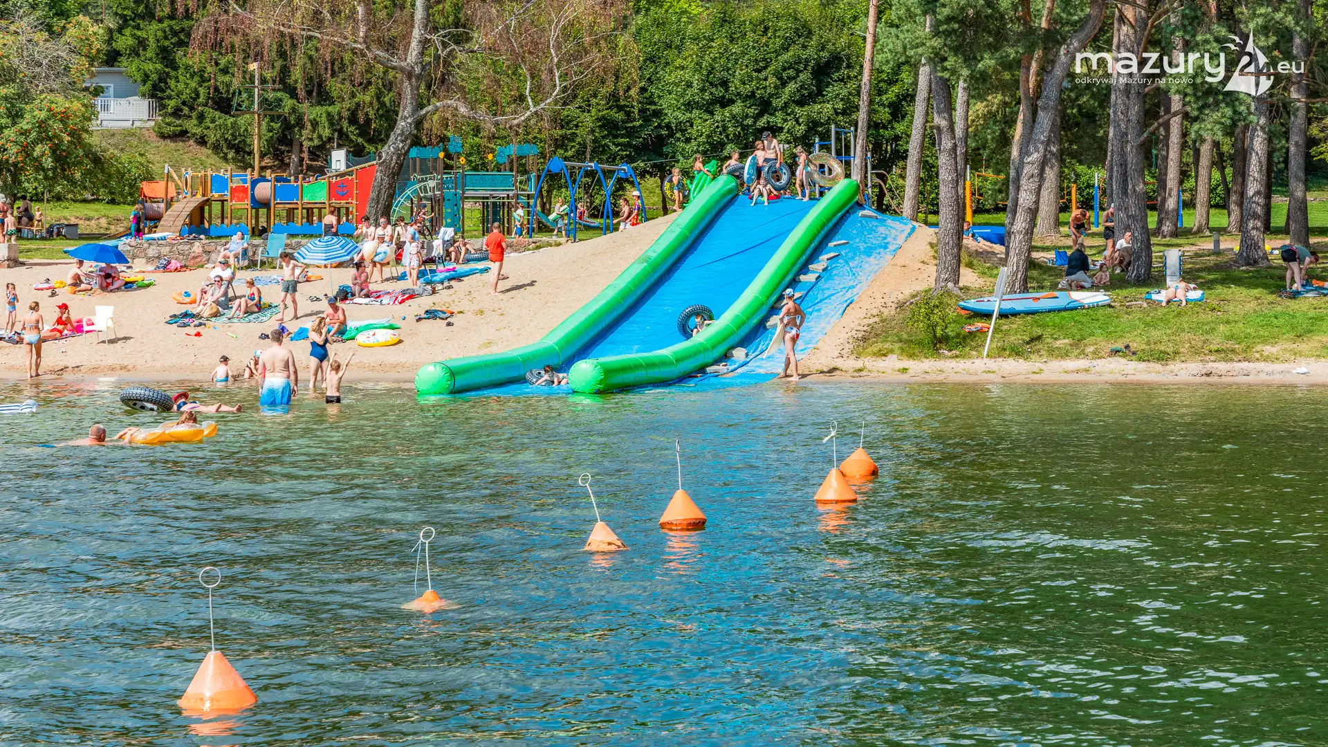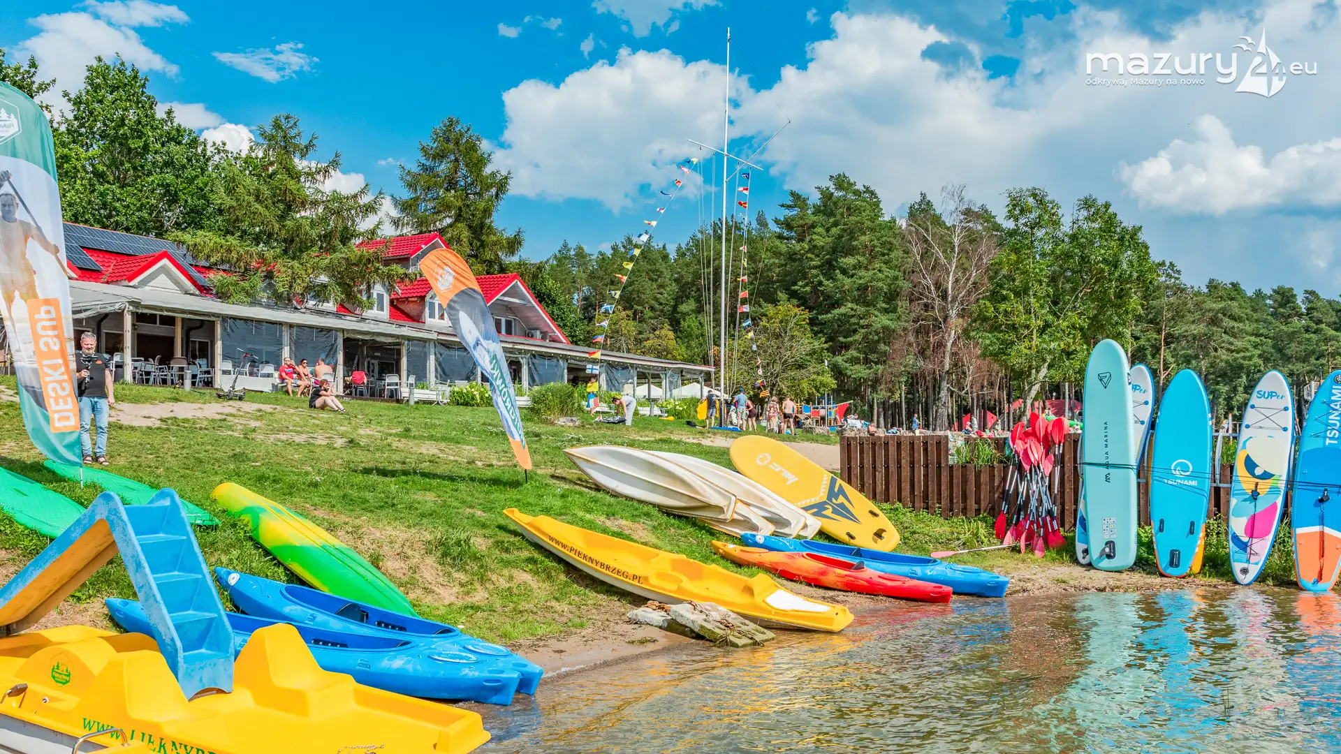 Piękny Brzeg to najlepsze miejsce dla żeglarzy z dziećmi na północnej części szlaków Wielkich Jezior Mazurskich. Leży nad jeziorem Święcajty, po wejściu na jezioro przez bramę Kalską, 90 stopni skręcamy w lewo i jesteśmy na ostatniej prostej. Część ekipy Mazury24 jeszcze kwalifikuje się do miana dziecka - jesteśmy tam kilka razy w sezonie - polecamy.
