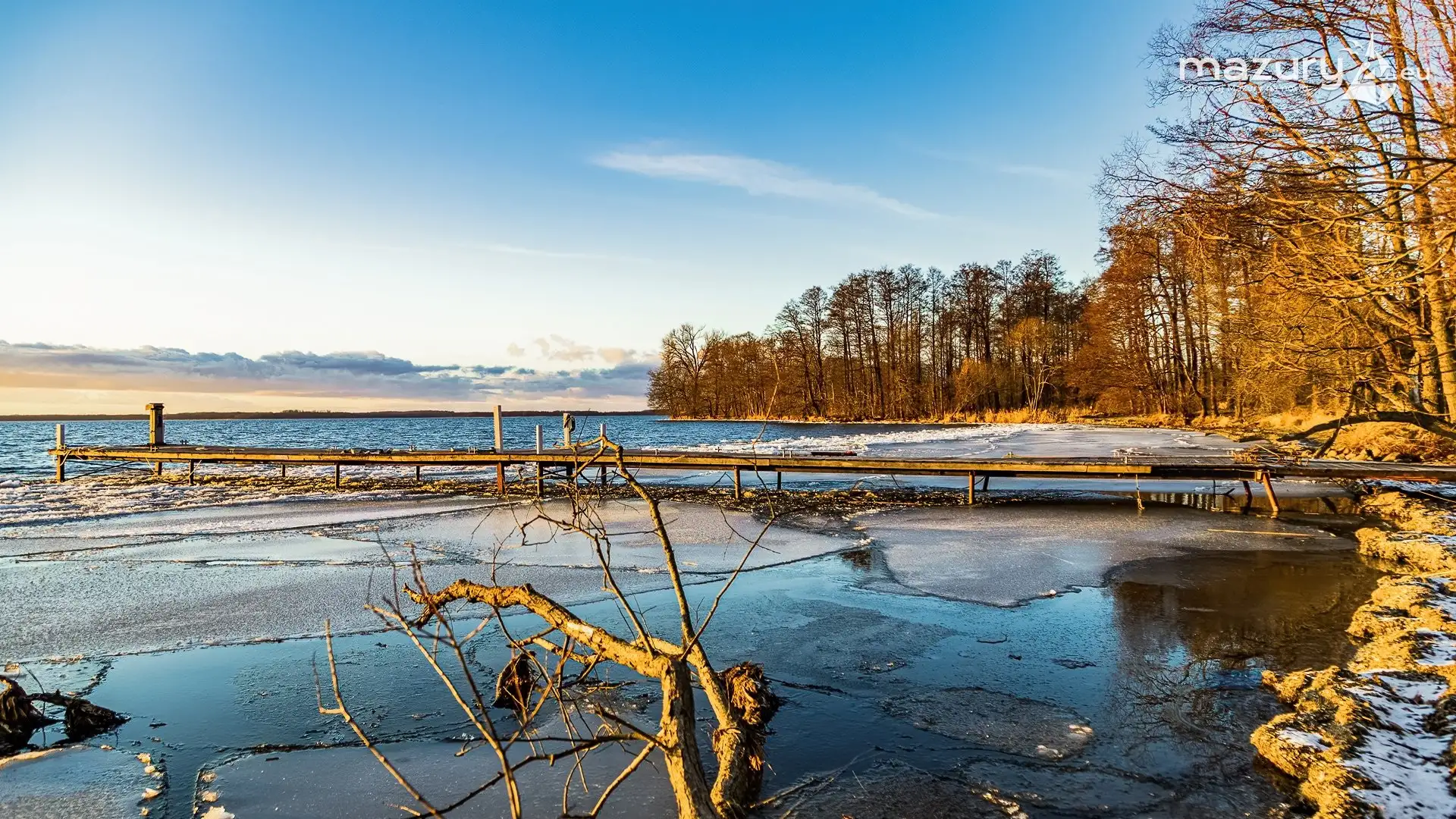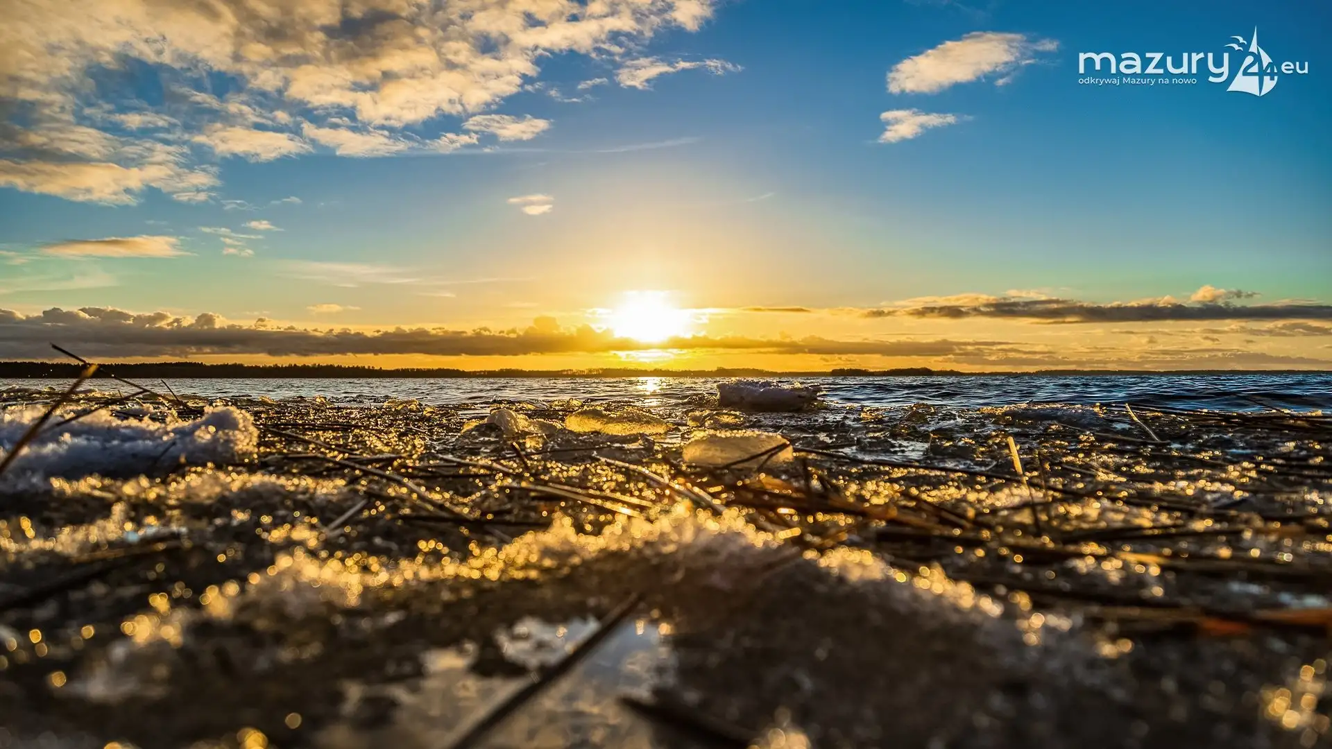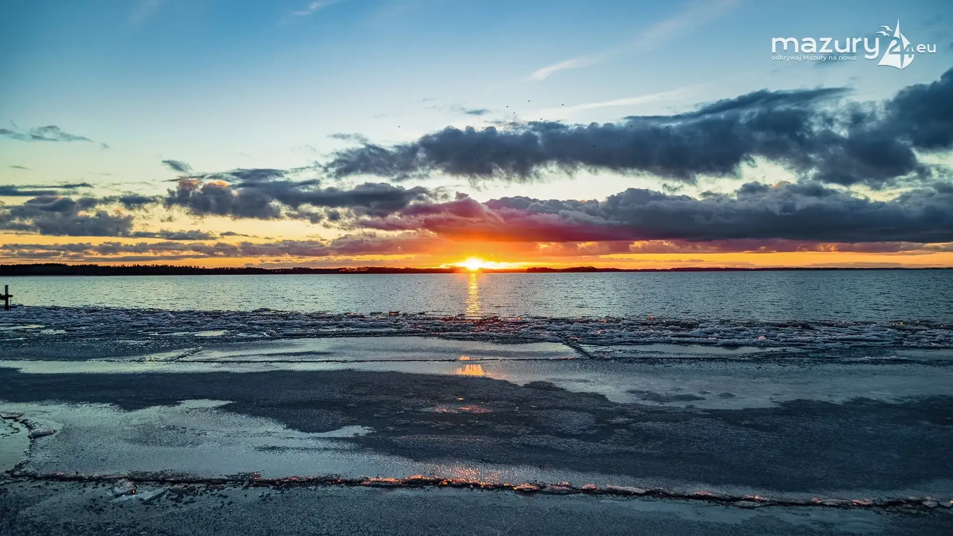 Wschód słońca nad jeziorami Boczne i Niegocin, styczeń 2022 r.