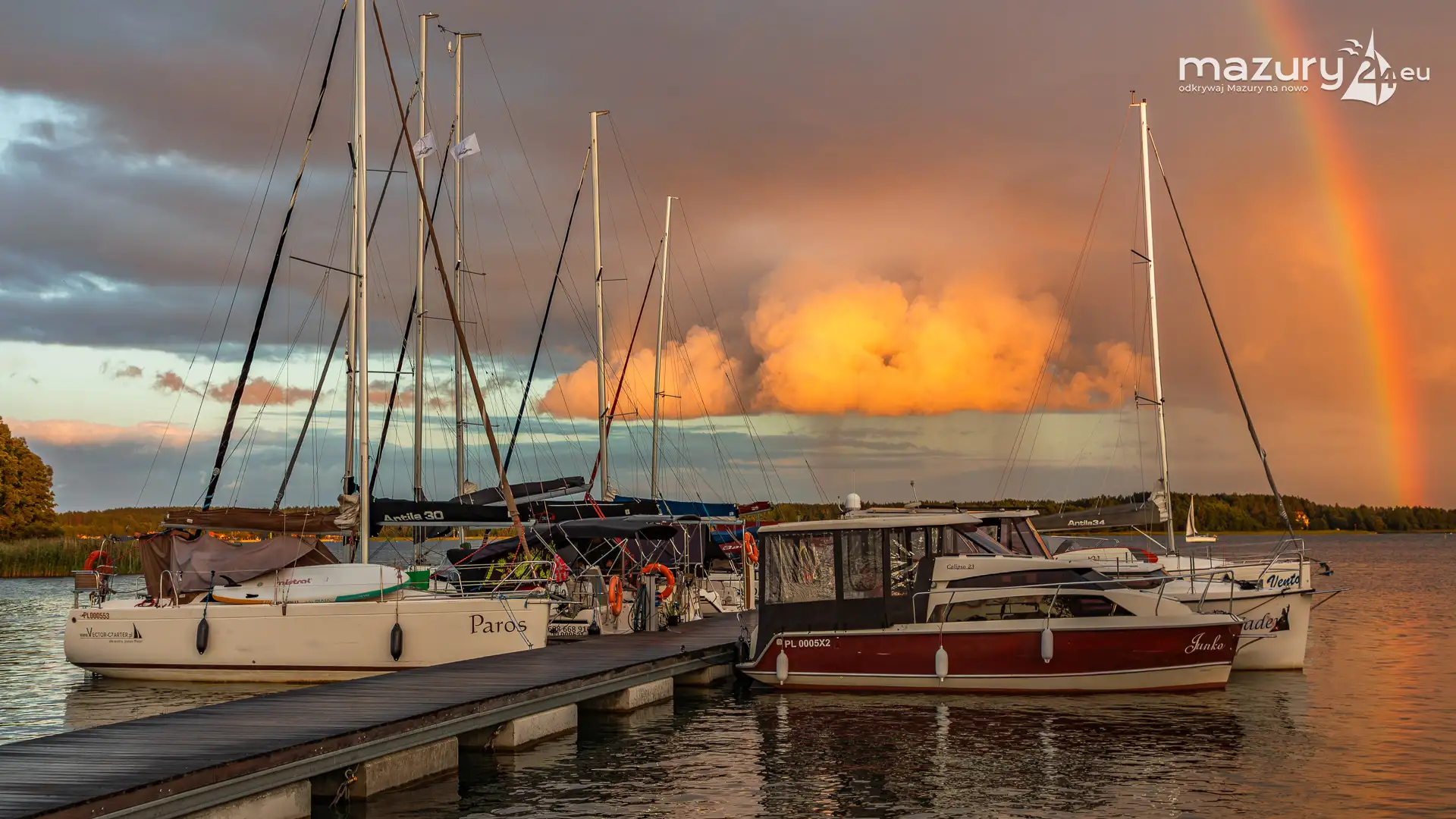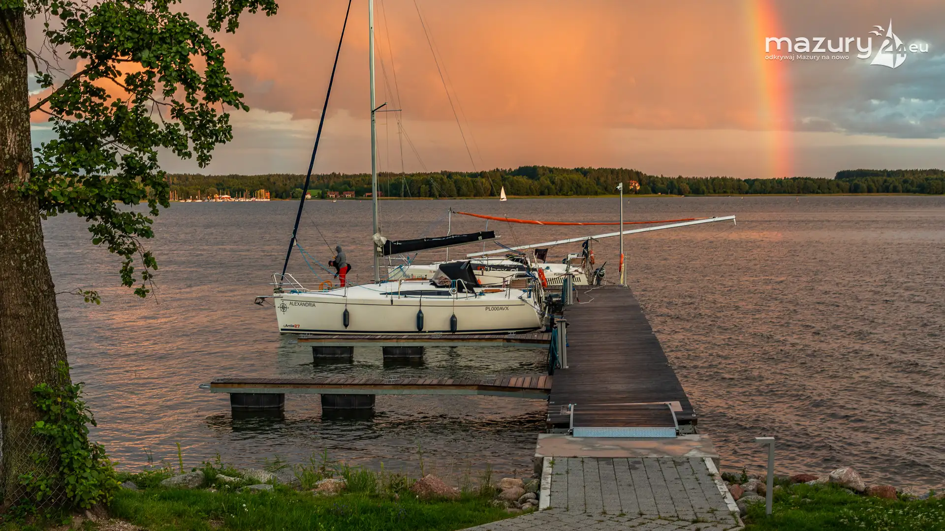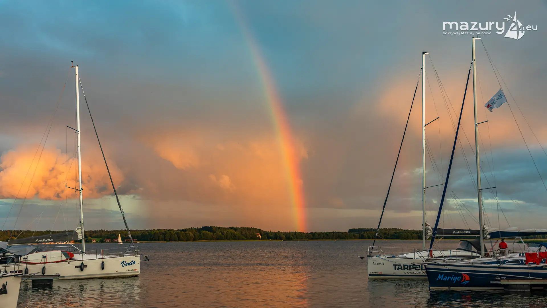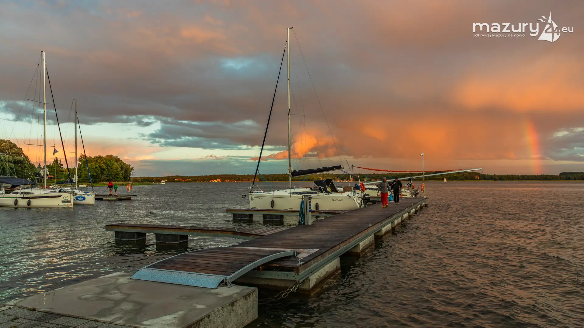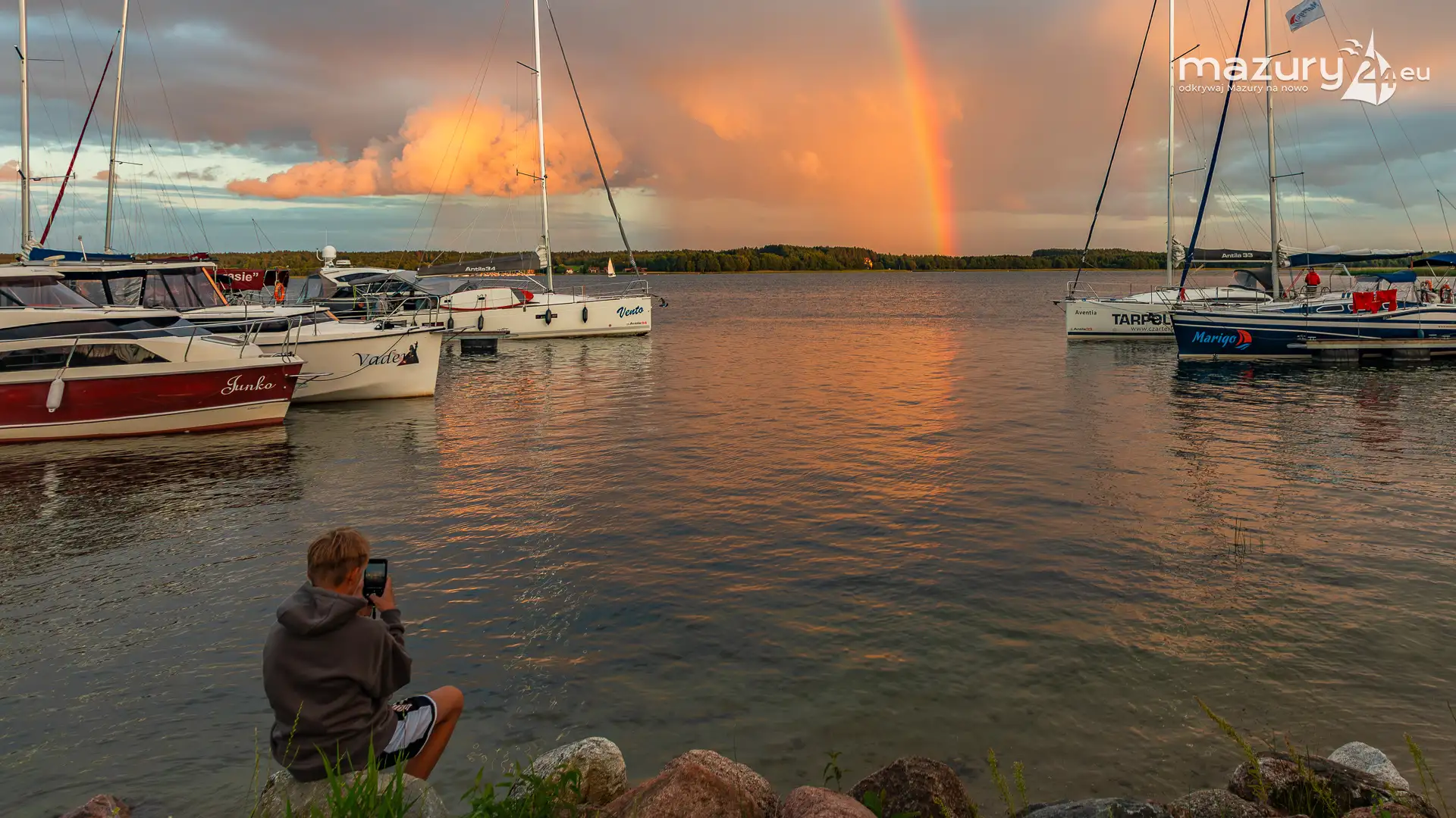 Przygotowując materiał do filmu o przystani Nautica w Kolonii Rybackiej, trafiliśmy na zachód słońca z bonusem. Z jednej strony kolory końca dnia, a z drugiej - spektakularna tęcza. Zachód widoczny był tylko z drona (zdjęcia wkrótce), więc z aparatem skupiliśmy się na tęczy. Nie tylko nas inspirowały kolory i kadry, co druga osoba kierowała telefon właśnie w jej stronę...