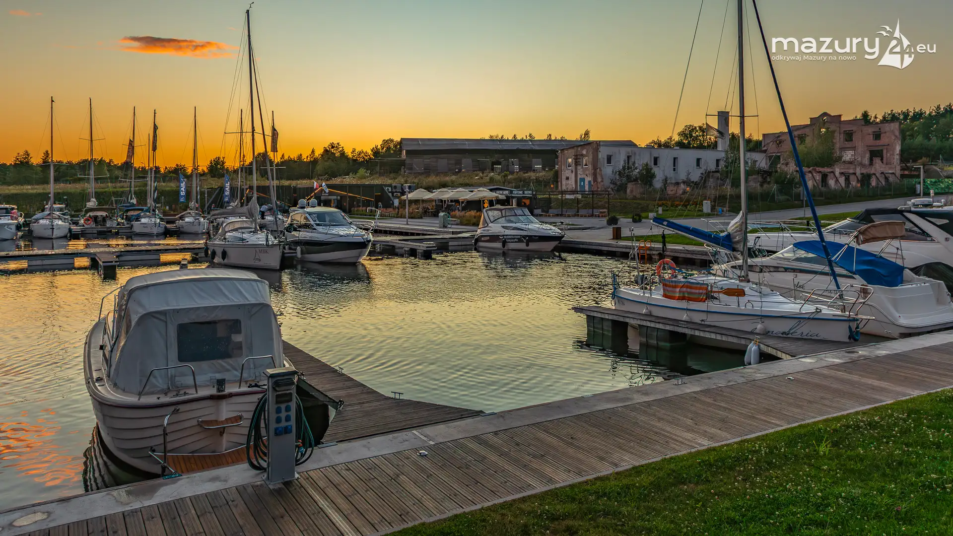Wieczór w Marinie Górkło z drona, koniec lipca 2025 r.
