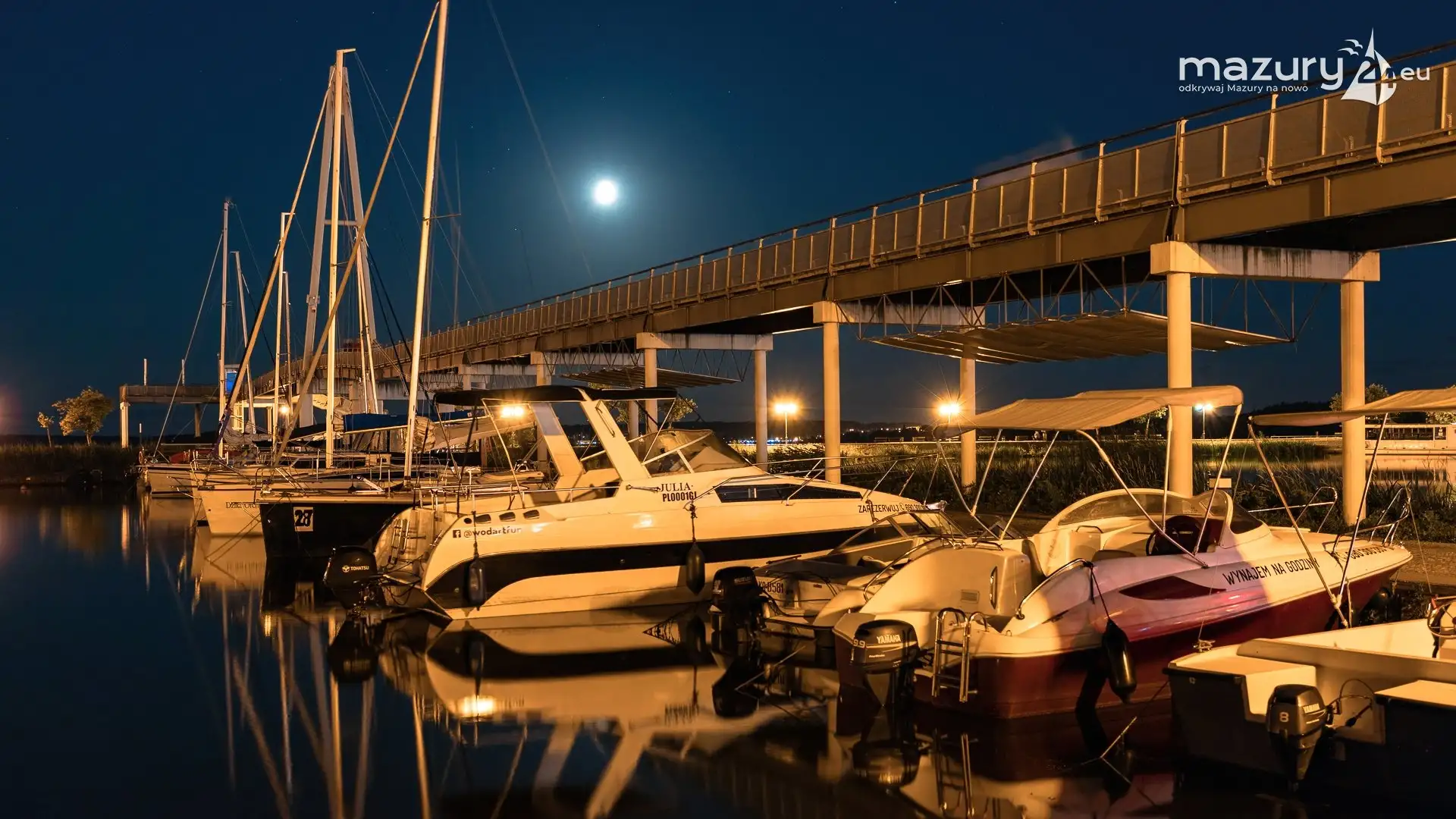 Spodobało nam się nocne odkrywanie Mazur. Mniejsza temperatura, gwiazdy nad głową, spokój w portach i możliwość, niczym nieskrępowanego poruszania się po chodniku - robią swoje. Większość bywalców portów w tym czasie, oddaje się długim opowieściom o Mazurach w zaciszu kokpitu. My zamiast podsłuchiwać :) skupiamy się jednak na kadrach i zachwycamy kolorami i odbiciem księżyca w spokojnej tafli jeziora...