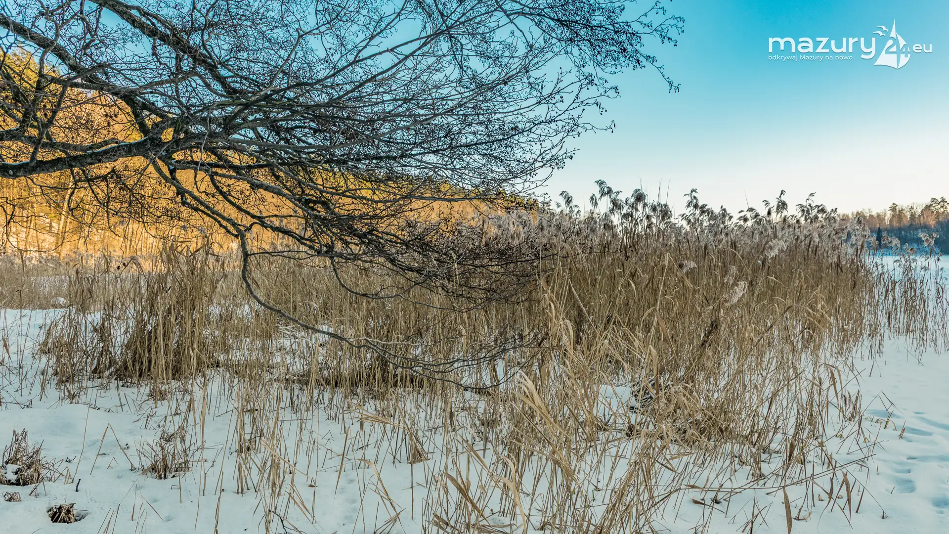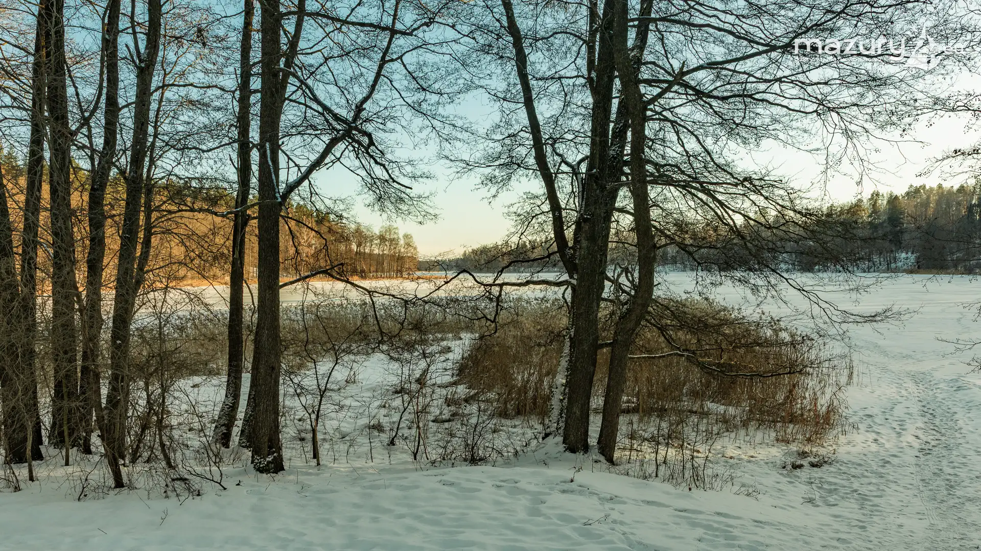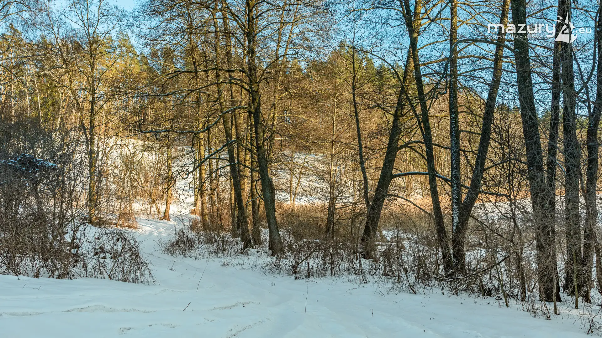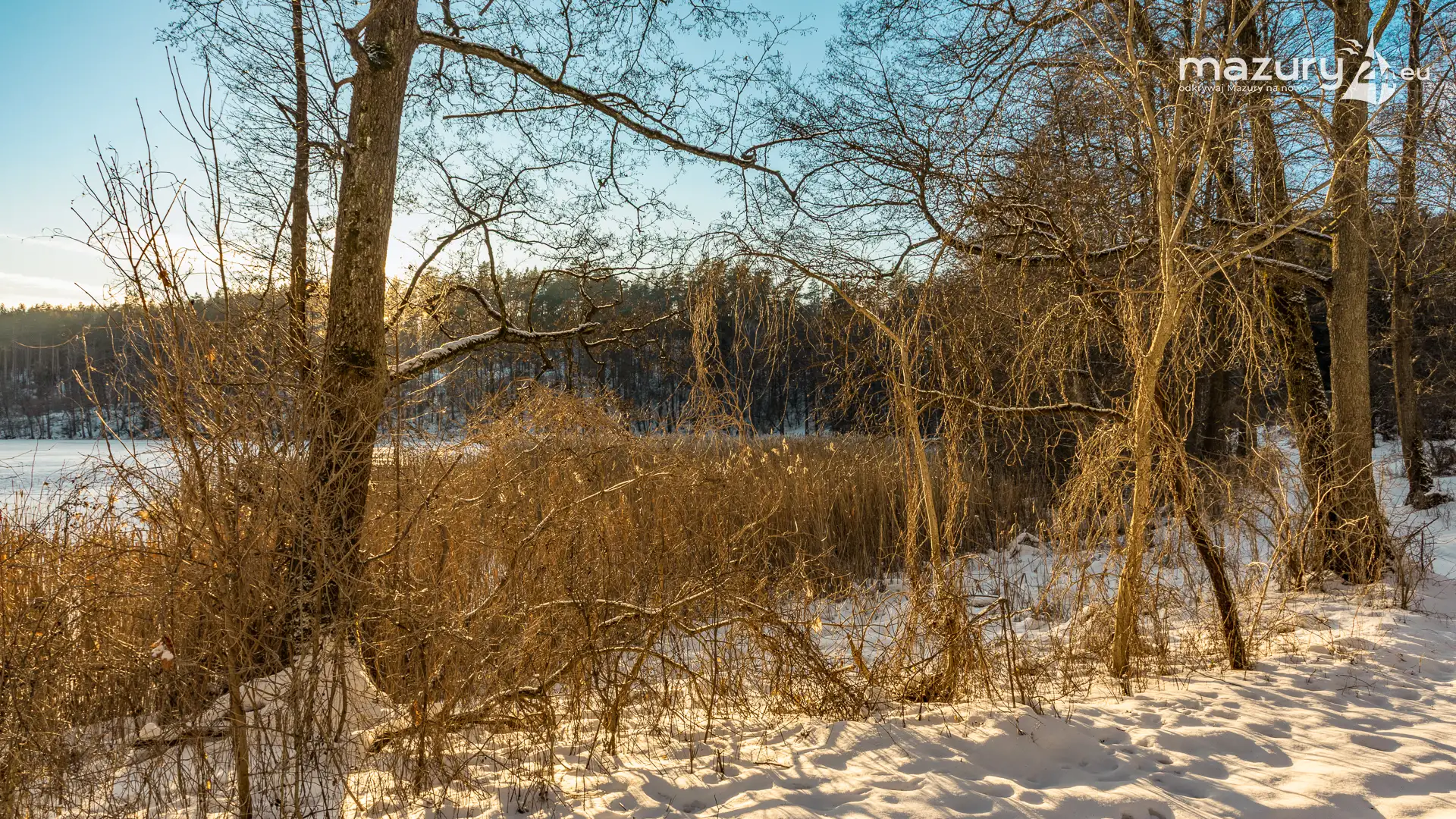 Zima ma już z górki, chociaż trzyma się wyjątkowo dobrze. Wczoraj przed zachodem słońca dotarliśmy do polany Wydra, na północnym brzegu jeziora Tyrkło, przy Cierzpiętach. Lubimy to miejsce o każdej porze roku - tutaj zawsze mazurska przyroda pręży "muskuły". Piękne miejsce na spacer, pobyt, ognisko i można tu dopłynąć ze szlaków WJM.