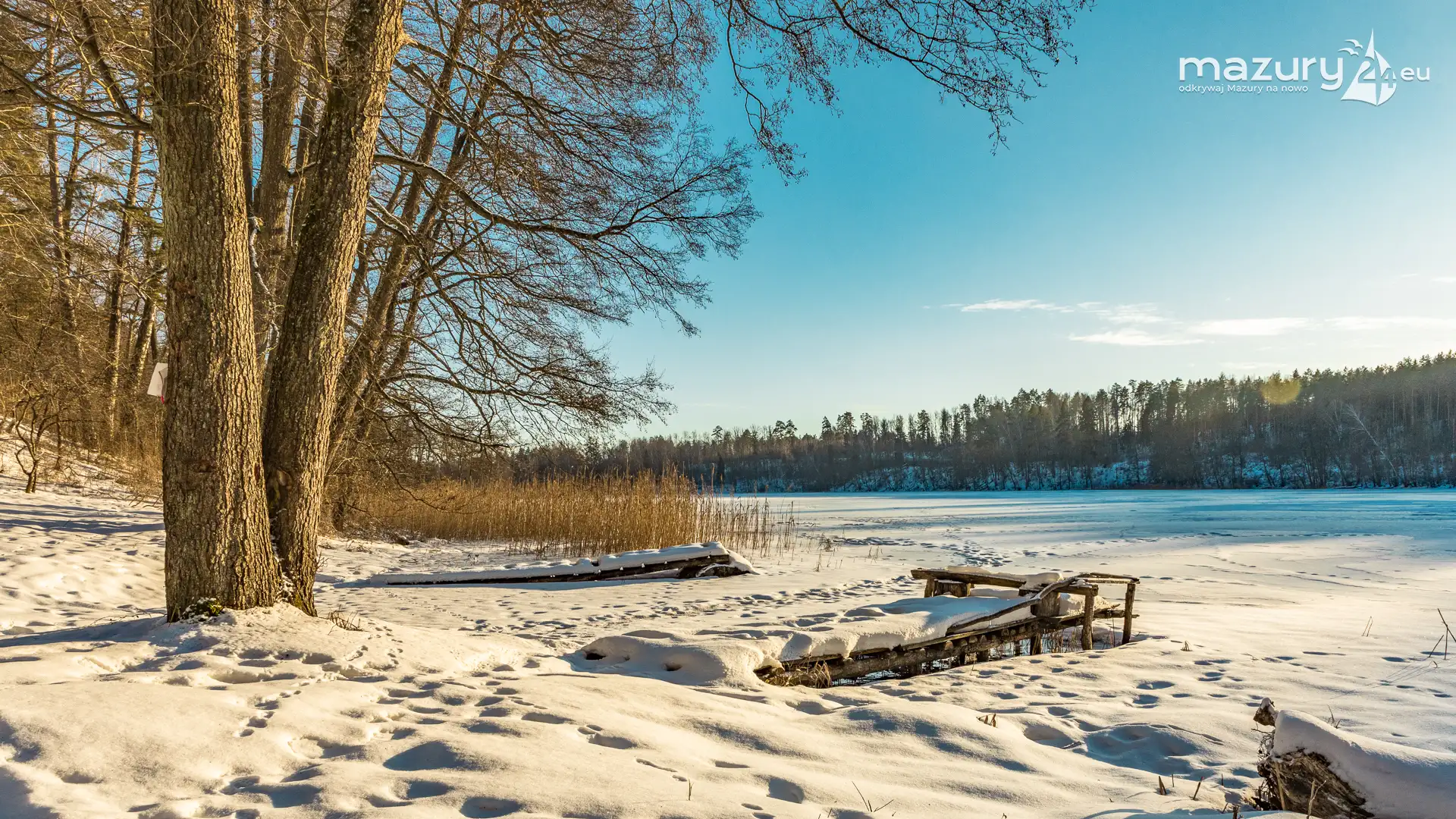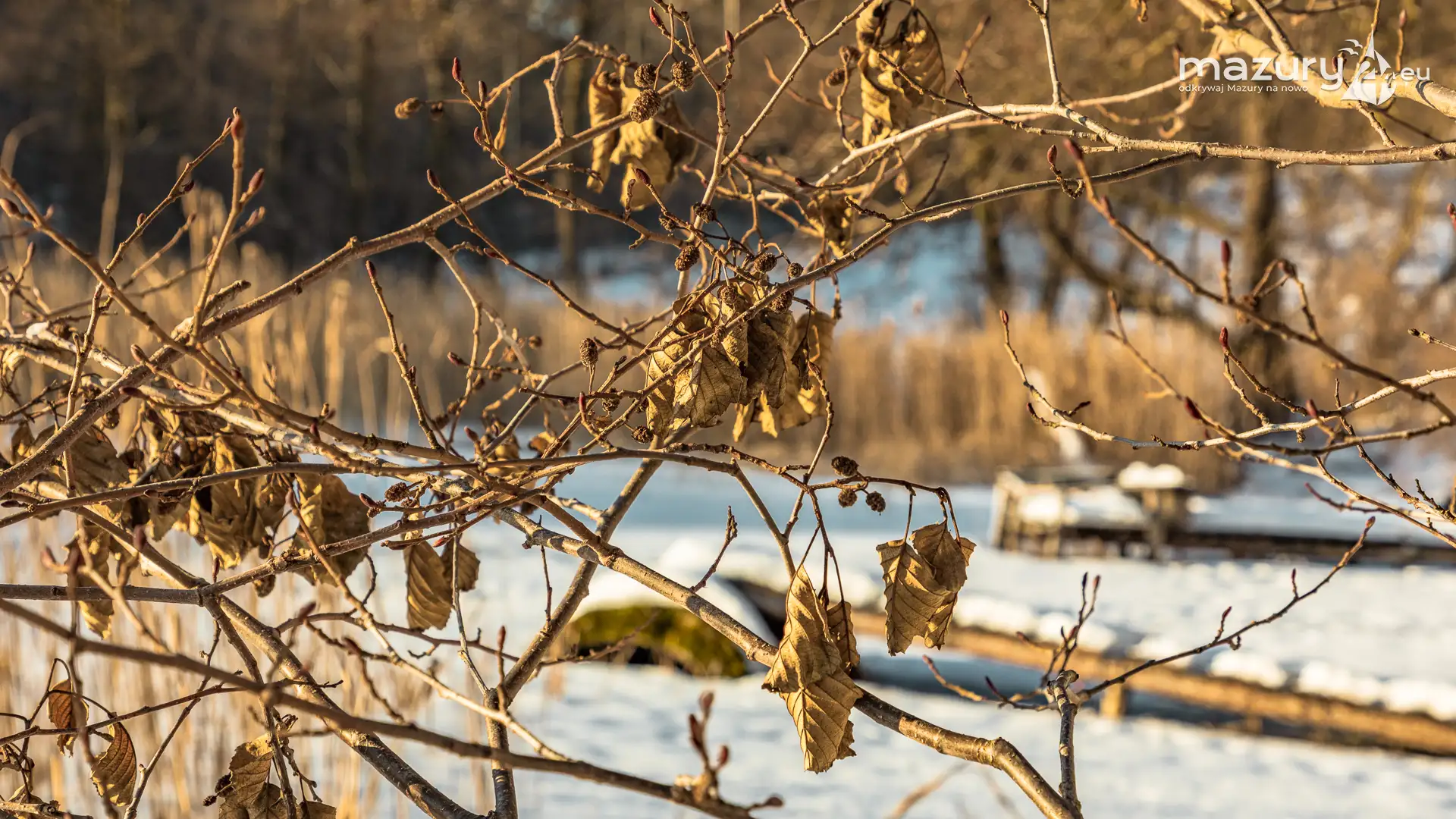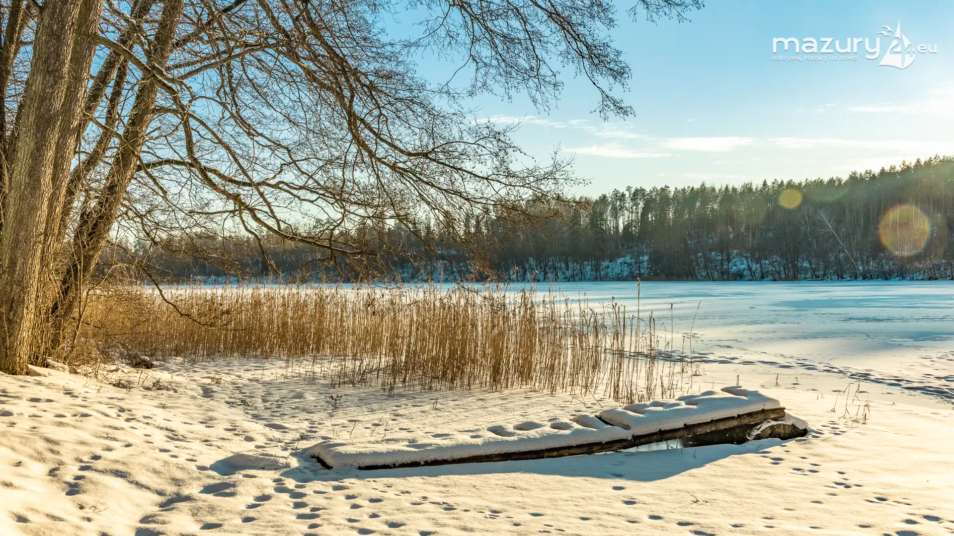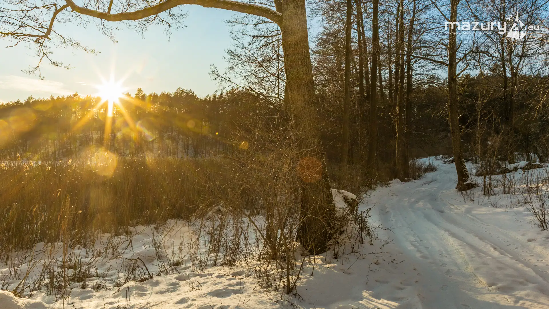 Zima ma już z górki, chociaż trzyma się wyjątkowo dobrze. Wczoraj przed zachodem słońca dotarliśmy do polany Wydra, na północnym brzegu jeziora Tyrkło, przy Cierzpiętach. Lubimy to miejsce o każdej porze roku - tutaj zawsze mazurska przyroda pręży "muskuły". Piękne miejsce na spacer, pobyt, ognisko i można tu dopłynąć ze szlaków WJM.