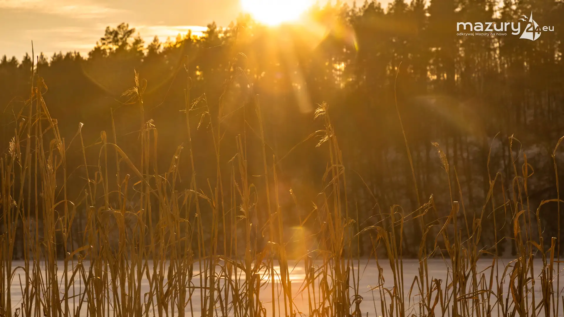 Zimowy zachód słońca nad mazurskimi polami, Cierzpięty, luty 2026 r.