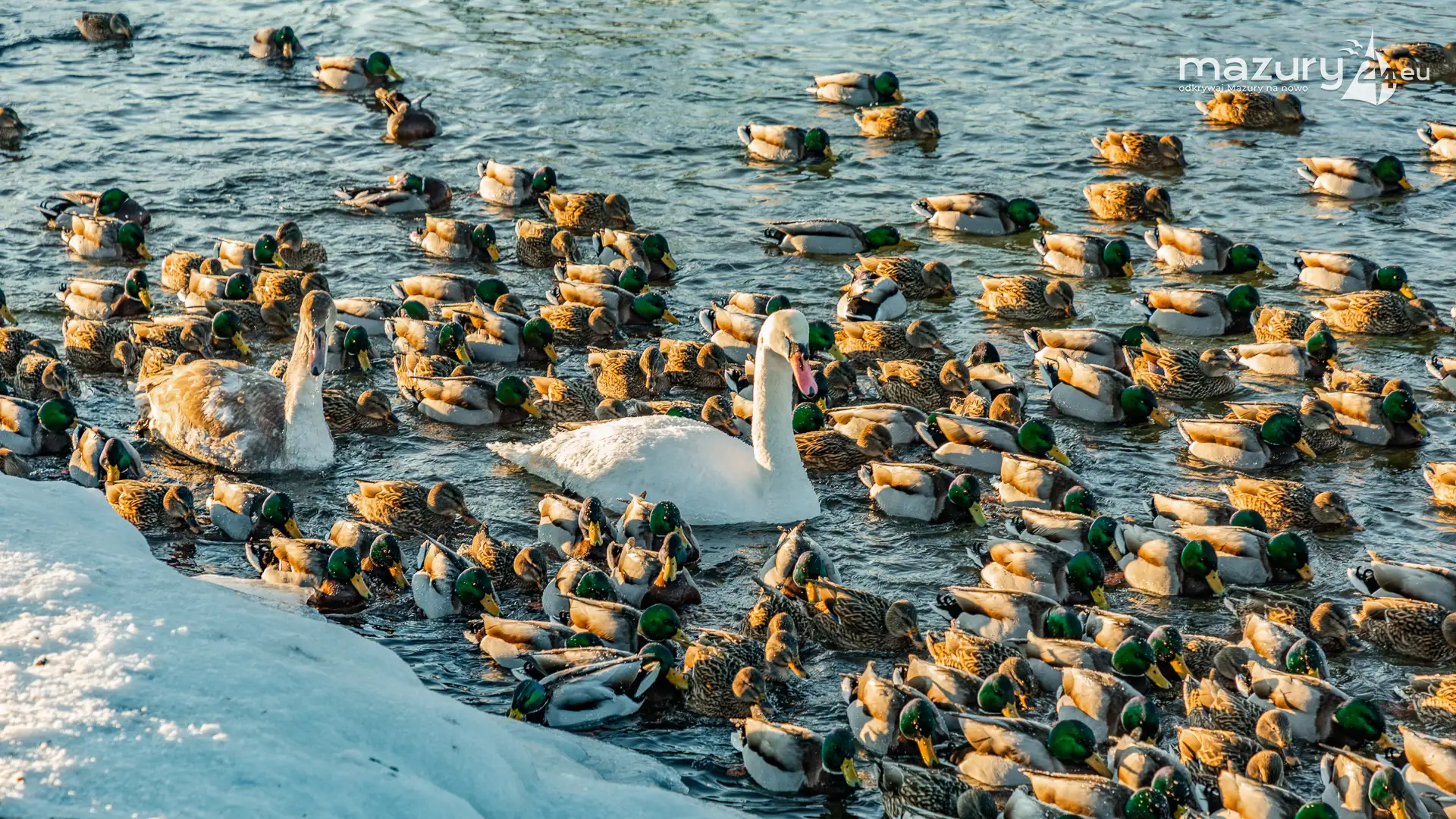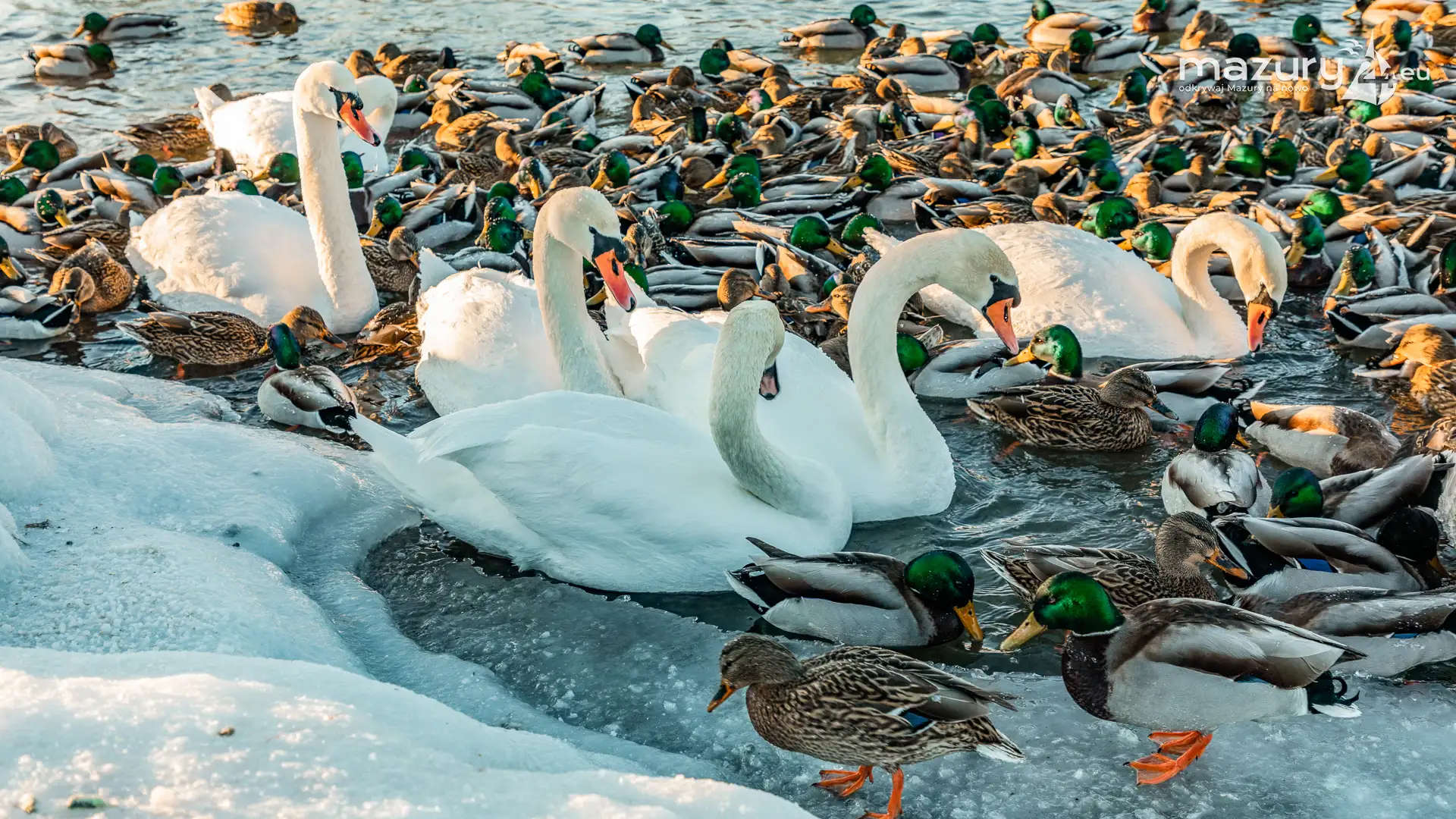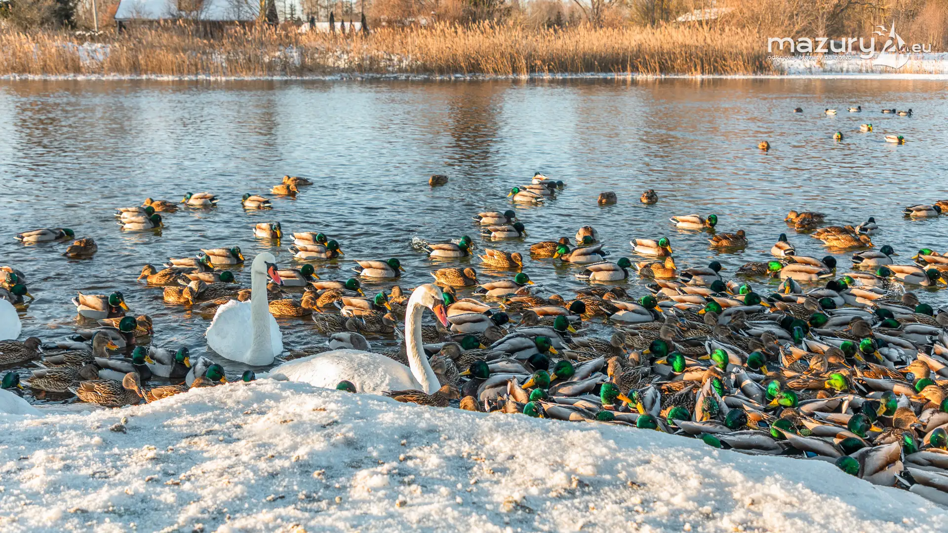 Kaczki i łabędzie w mroźne popołudnie na Pisie, luty 2026 r. - zdjęcie 3
