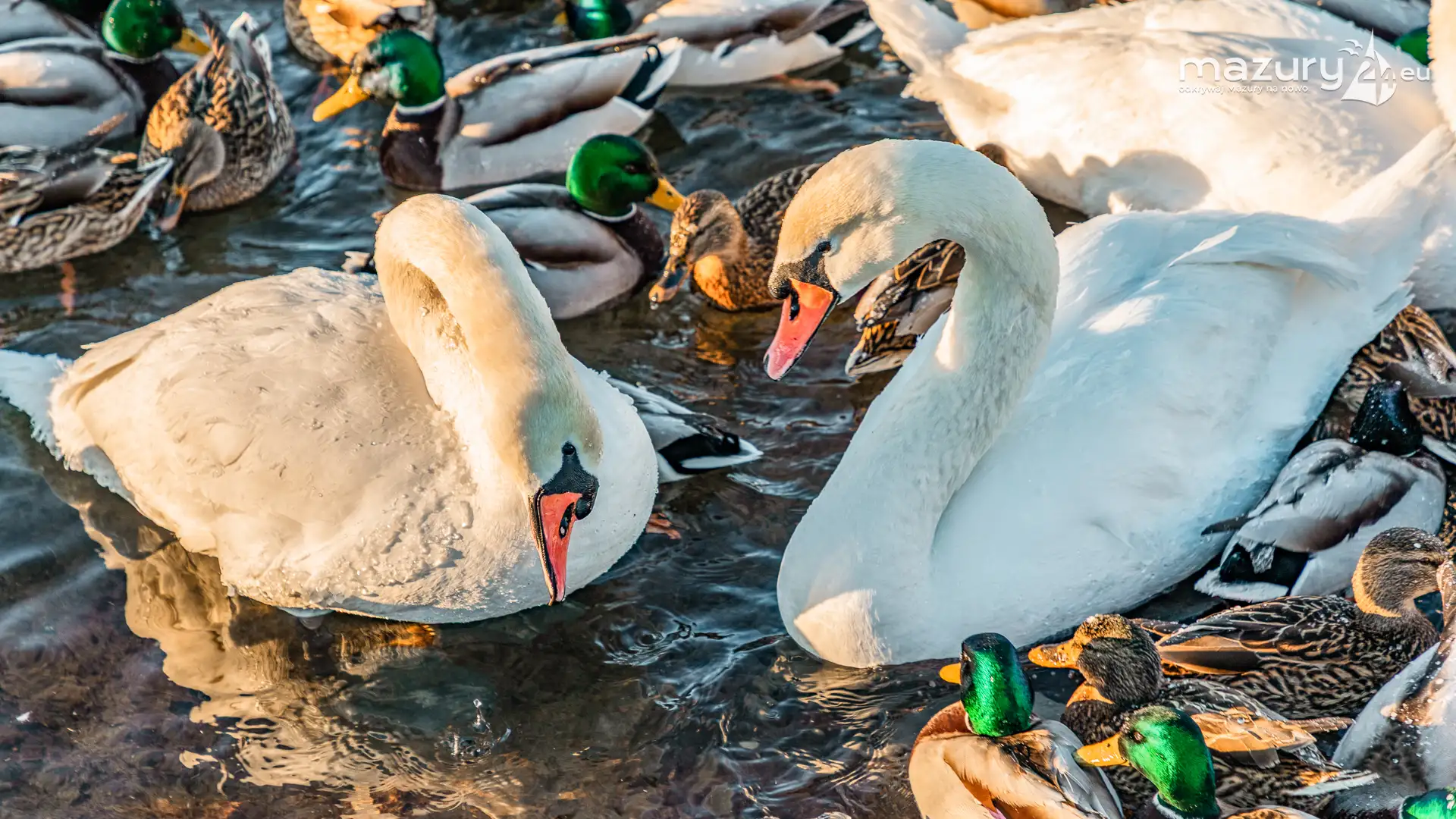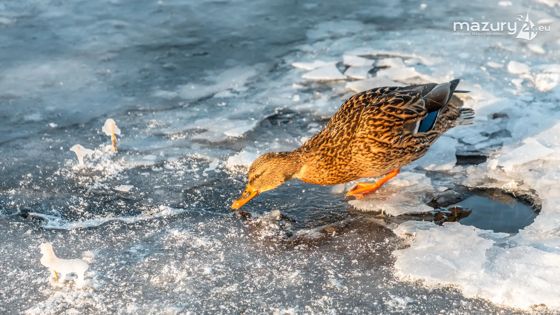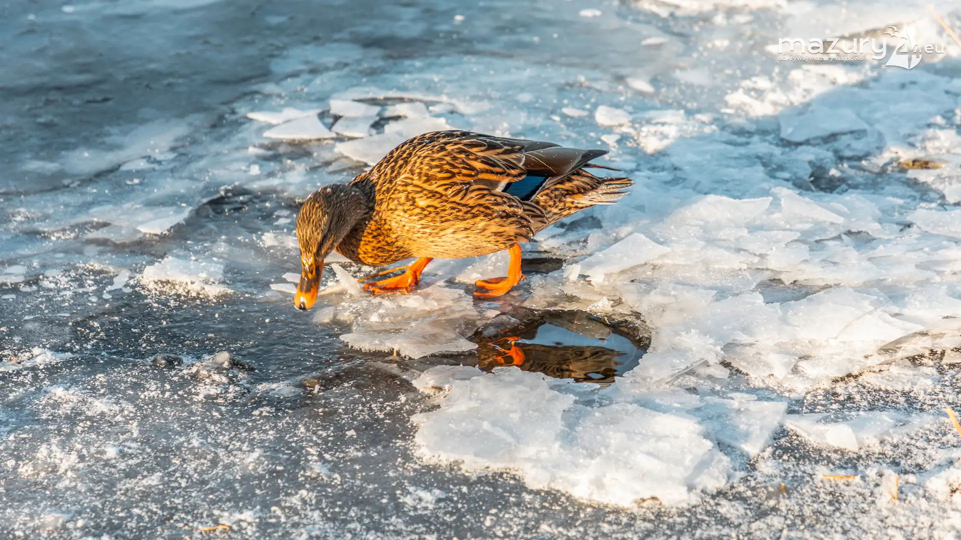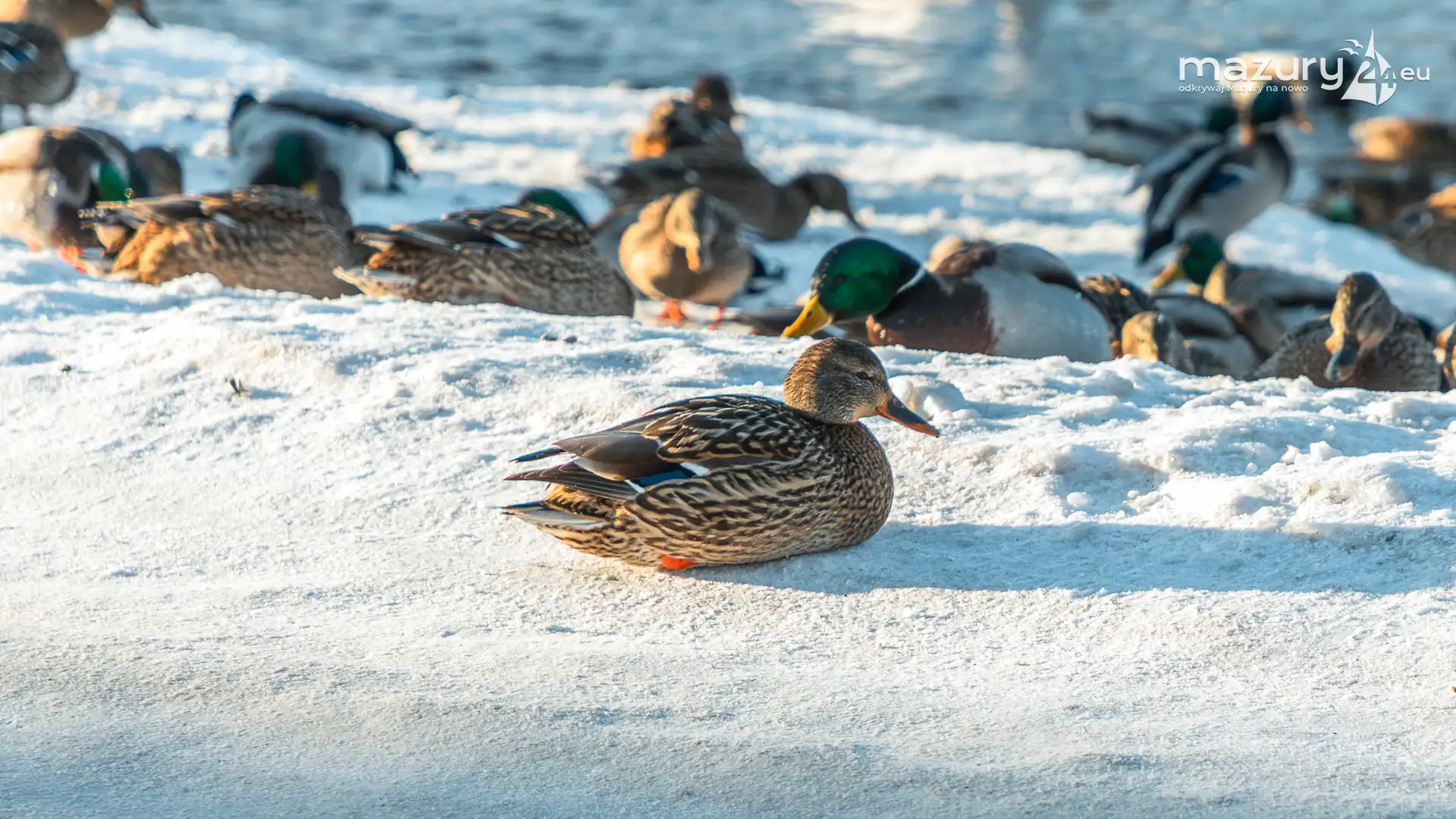 Kaczki i łabędzie w mroźne popołudnie na Pisie, luty 2026 r. - zdjęcie 3