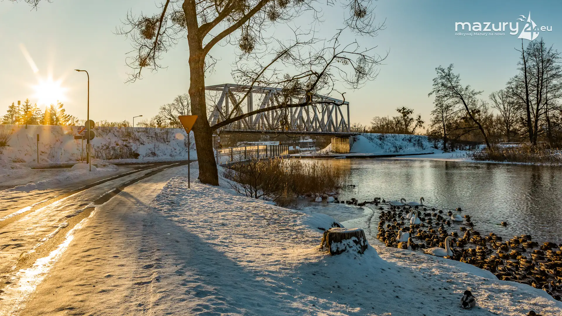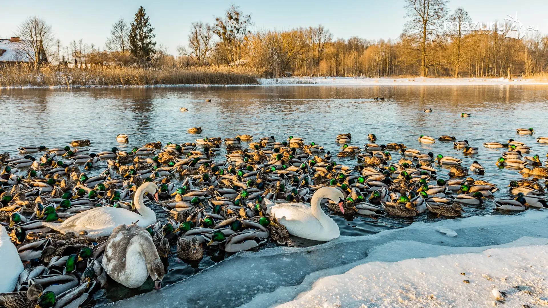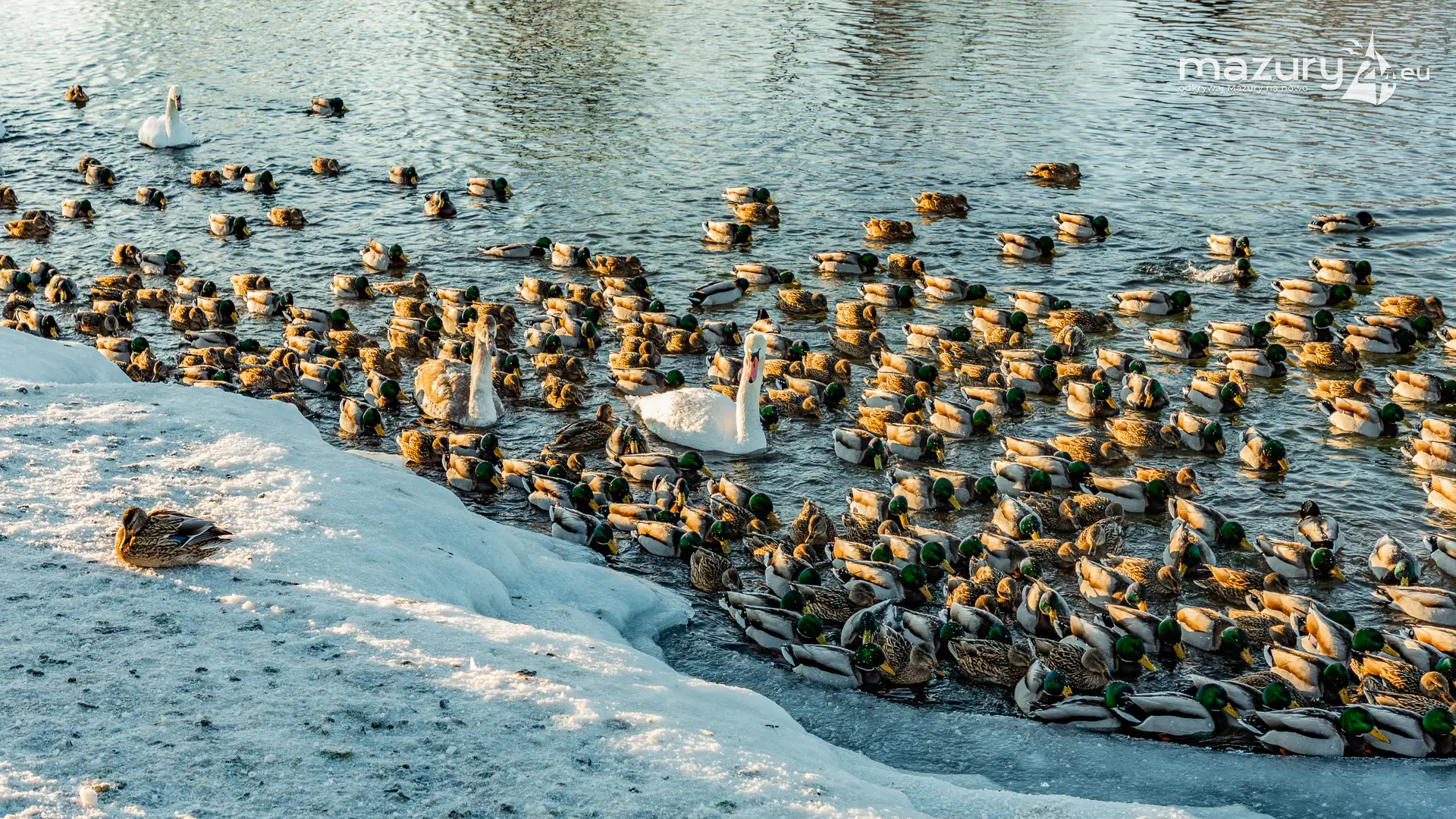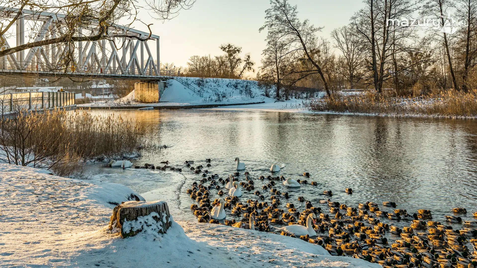 Temperatura wody w rzece Pisie spadła niemal do zera stopni. Jeszcze kilka dni temu była ona cieplejsza od temperatury powietrza aż o 18 stopni, co sprzyjało utrzymywaniu się ptactwa wodnego na otwartej wodzie. Nic więc dziwnego, że w rejonie mostu kolejowego w Piszu zgromadziło się wyjątkowo dużo kaczek i łabędzi – ptaki szukają tu niezamarzniętych fragmentów rzeki oraz łatwiejszego dostępu do pożywienia.