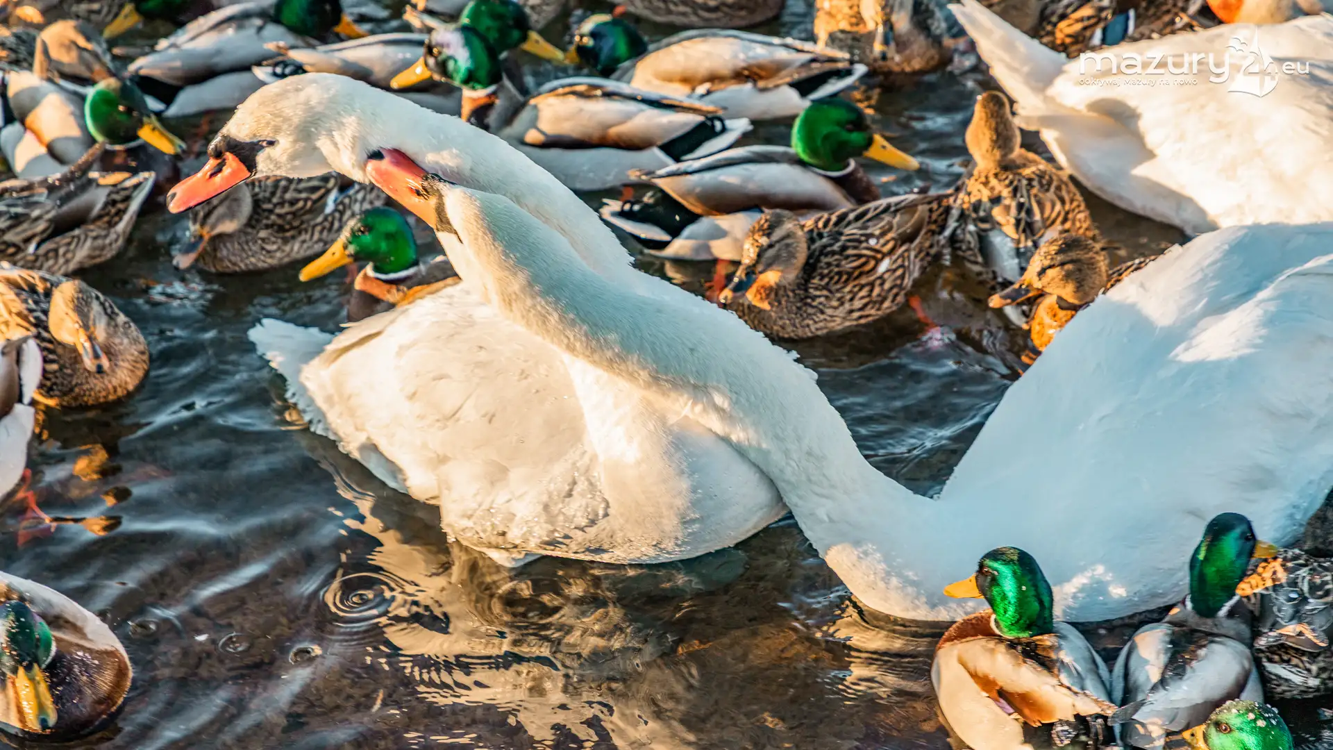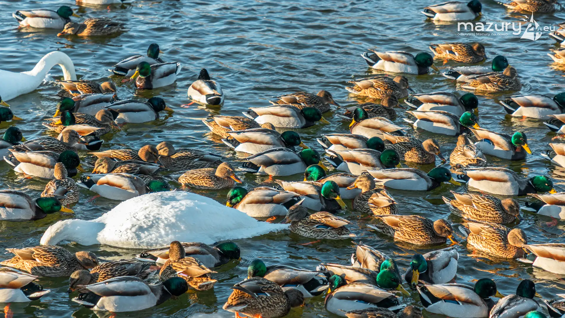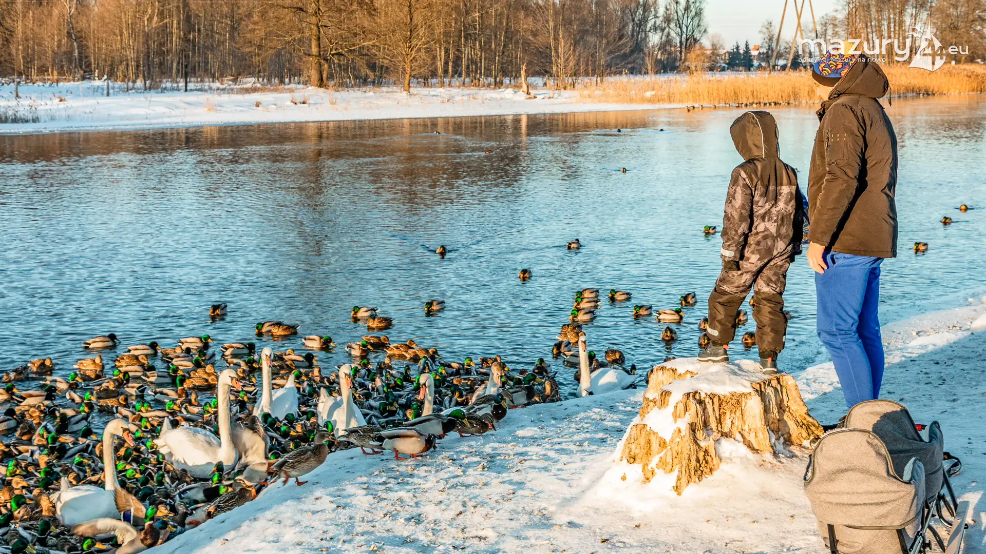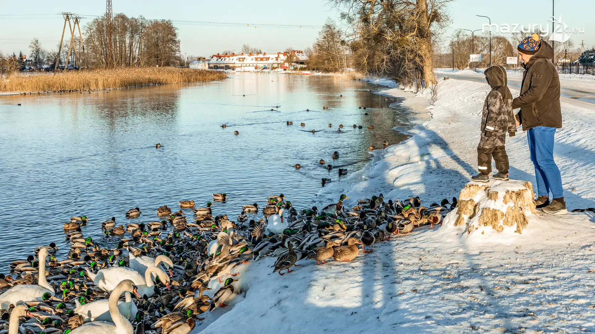 Temperatura wody w rzece Pisie spadła niemal do zera stopni. Jeszcze kilka dni temu była ona cieplejsza od temperatury powietrza aż o 18 stopni, co sprzyjało utrzymywaniu się ptactwa wodnego na otwartej wodzie. Nic więc dziwnego, że w rejonie mostu kolejowego w Piszu zgromadziło się wyjątkowo dużo kaczek i łabędzi – ptaki szukają tu niezamarzniętych fragmentów rzeki oraz łatwiejszego dostępu do pożywienia.