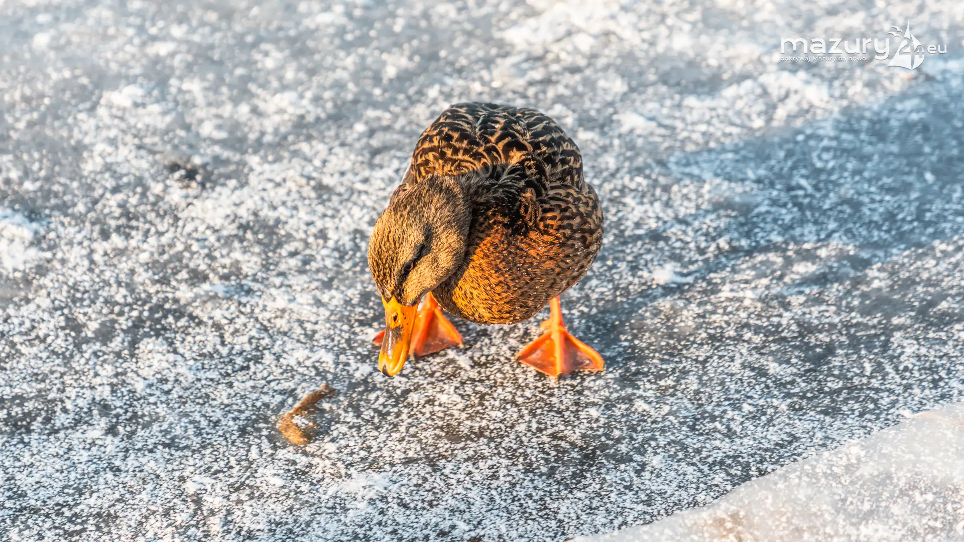 Kaczki i łabędzie w mroźne popołudnie na Pisie, luty 2026 r. - zdjęcie 12