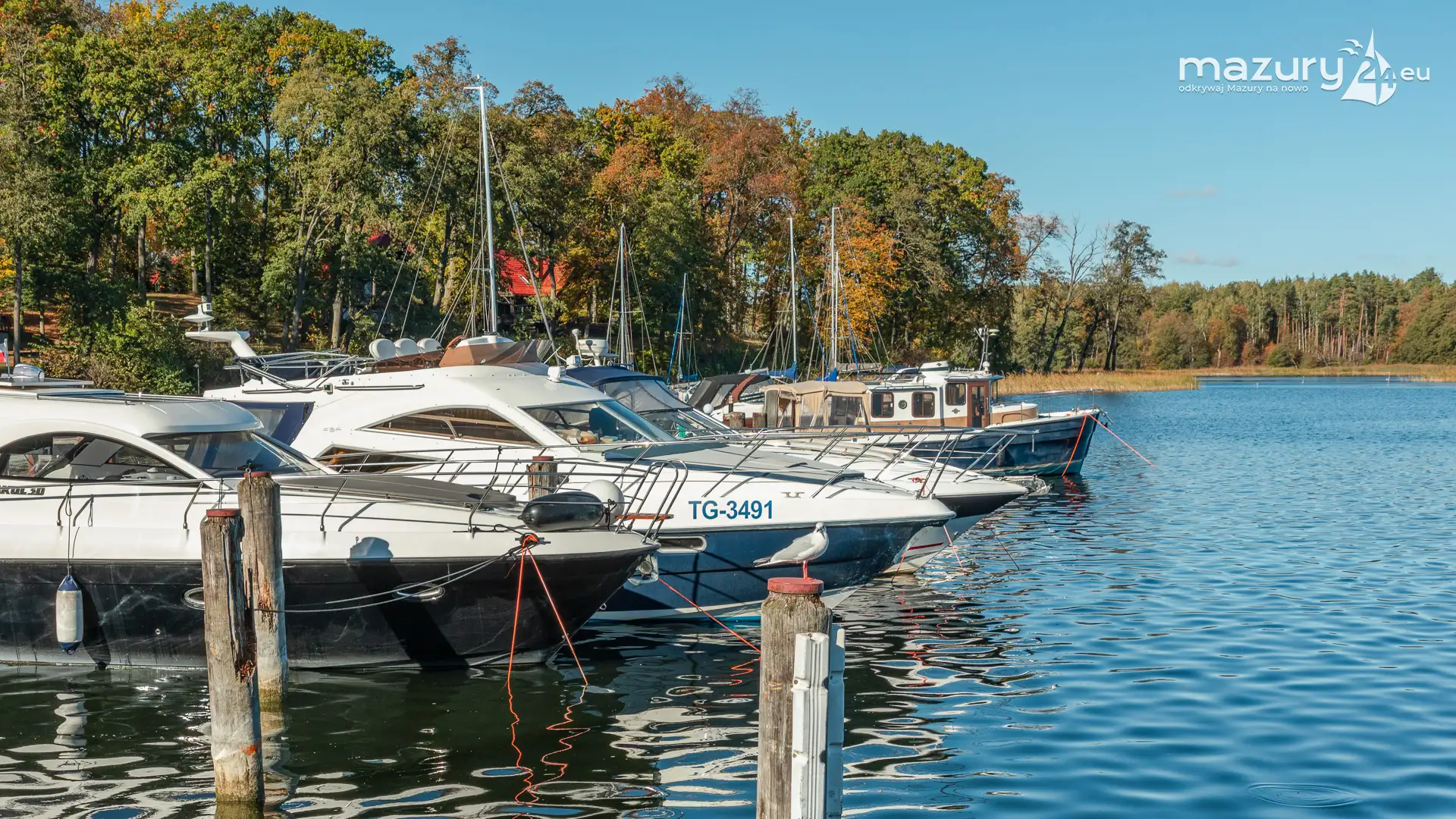 Na Mazurach nie brakuje miejsc, w których przyroda harmonijnie łączy się z działalnością człowieka. Jednym z nich jest port i ośrodek Łabędzi Ostrów w Pięknej Górze nad jeziorem Kisajno. Zobaczcie jesienną odsłonę tego miejsca – ostatnie jachty kołyszące się na wodzie, a wokół potężne dęby i buki ubrane w złociste barwy.