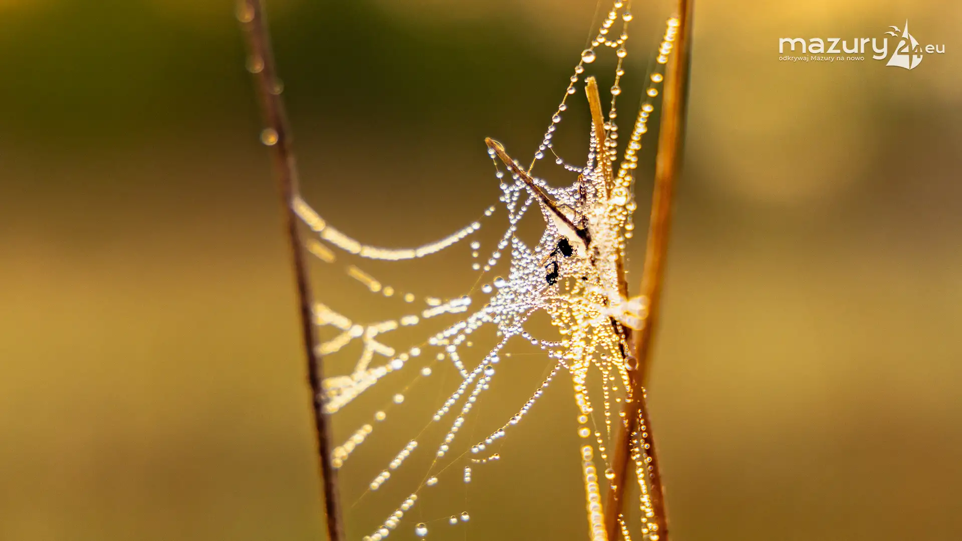 Mazury to taki fotograficzny sklep z 1001 drobiazgami. Można tu fotografować wszystko co się rusza i błyszczy pięknem na stałe. W tym przypadku Arka zafascynowały pajęczyny i wiosenna rosa w okolicach jeziora Dobskiego przy wsi Doba. Wschód słońca dodał właściwych, złotych kolorów... Miłej fascynacji mazurską przyrodą...