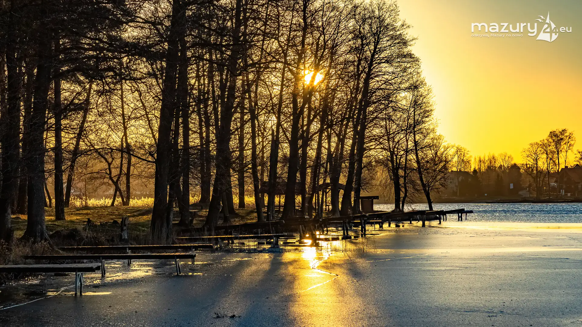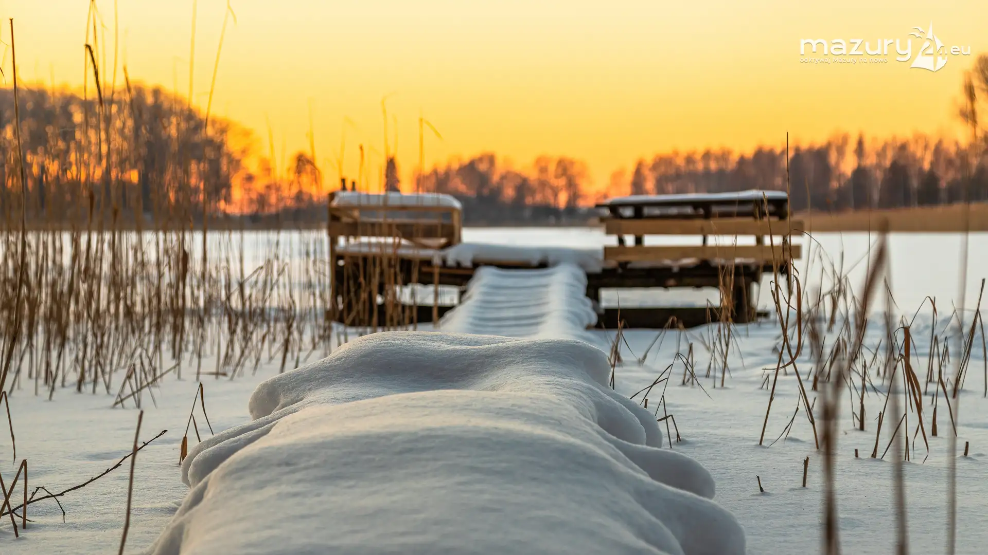 Zimowy zachód słońca nad jeziorem Kisajno, styczeń 2025 r.